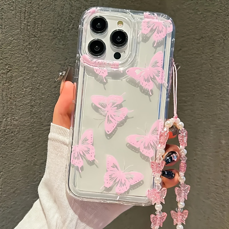 Fashion Butterfly Simple Style Mobile Phone Case, Made of TPU Material, with High-Quality Lanyard, Suitable for iPhone 11, 11 Pro Max, 12, 12 Pro Max, 13, 13 Pro, 13 Pro Max, 14, 14 Plus, 14 Pro, 14 Pro Max, 15, 15 Pro, 15 Plus, 15 Pro Max, 16, 16 Pro, 16 Plus, 16 Pro