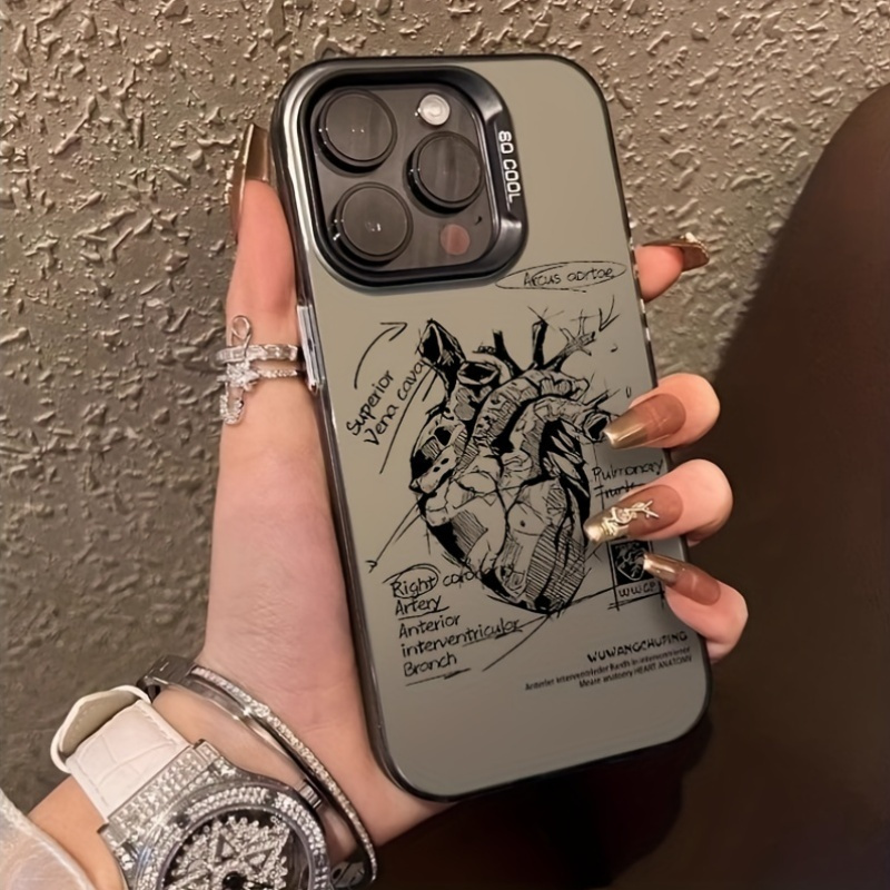 A Mobile Phone Cover in a Light Brown Beige Color with a Simple Design And Soft Heart-Shaped Embellishments, Compatible with Iphone Models 16, 15, 14, 13, 12, 11 Pro Max, XS, And