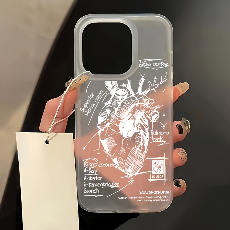 White Heart Graphic Large Hole Frosted Simple Design, Shockproof Protection, Perfect Choice for Autumn and Winter, High-looking Fashion, Perfect Gift for Relatives and Friends, Suitable for 16/16Plus/16Pro/16ProMax/15/15Plus/15ProMax/14/14Plus/14Pro/14ProMax, 13/13Pro/13ProMax, 12/12Pro/12ProMax, 11/11Pro Max