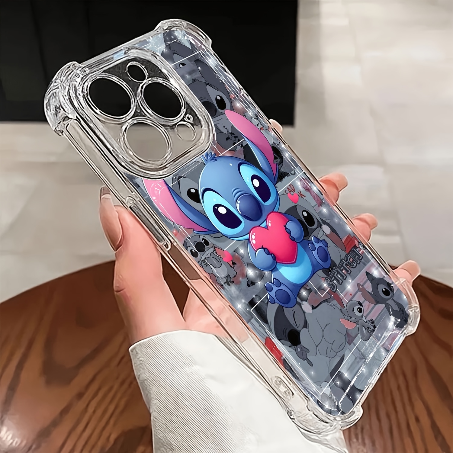 Disney Officially Licensed, The Adorable Moments of Stitch Cute Four-Corner Anti-Drop Full Protection Transparent Phone Case, for iPhone 16/15/14/13/12/11/X/XS/XS Max/Pro/Pro Max/Plus, Birthday Gift, Holiday Gift, Valentine’s Day Gift, Perfect Gift