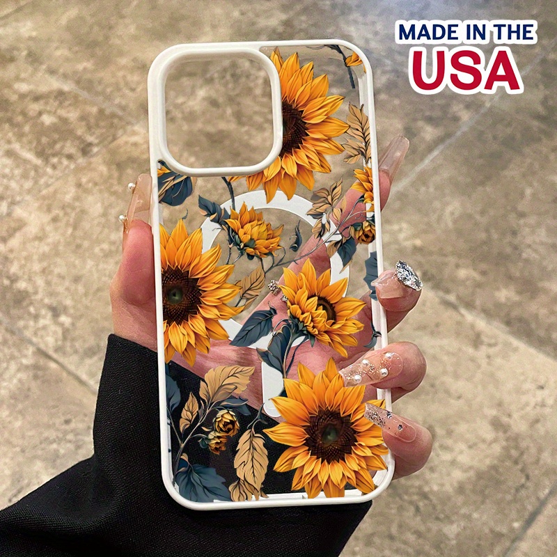 Case for iPhone 16 Pro Max 15 Plus 14 13 12 11 XS Max XR X Wild Sunflowers Pattern Anti-Scratch MagSafe Enabled Hard PC Back Protective Drop Protection Slim Cellphone Cover Gift