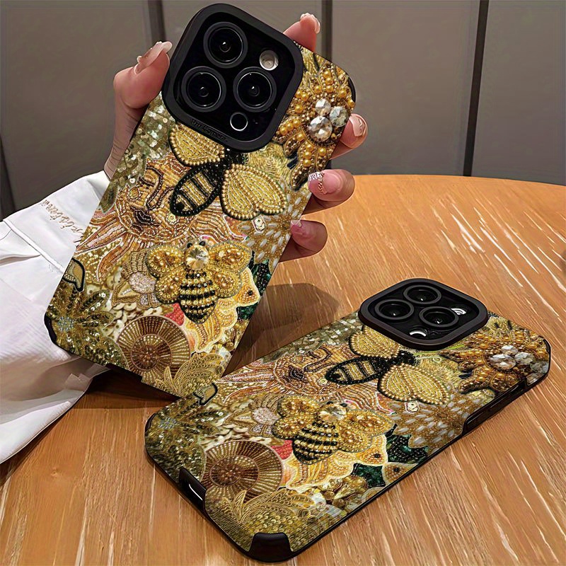 Golden Bee Floral Pattern Personalized Phone Case for Iphone 16/Iphone 16 Pro/Iphone 16 Plus/Iphone 16 Pro Max/Iphone 15/15 Plus/15 Pro/15 Pro Max, Iphone 14/14 Plus/14 Pro/14 Pro Max, Iphone 13/13 Pro/13 Pro Max, Iphone 12/12 Pro/12 Pro Max, Iphone 11/11 Pro/11 Pro Max, Dirt-Resistant, Shockproof, And