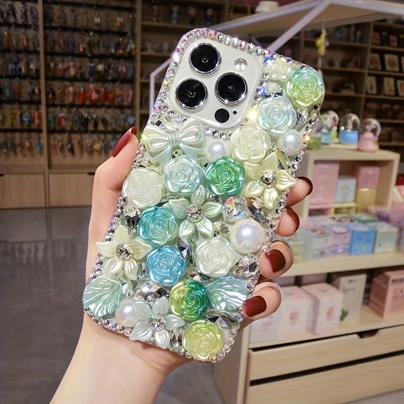 Fashionable And Luxurious Colored Resin Flower Rhinestone Pearl Phone Case Suitable for iPhone 15 Promax Anti Drop Phone Case