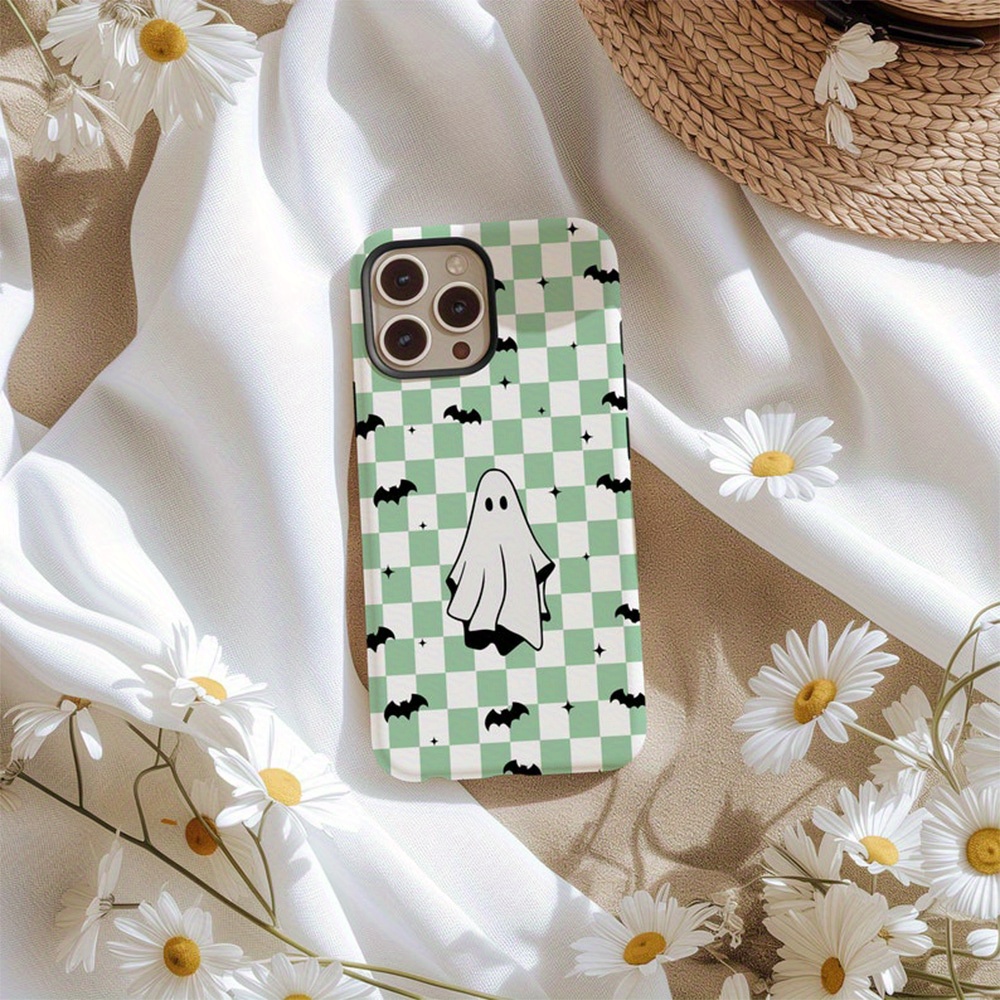 Magnetic Spooky Ghost with Bats Checkered Phone case – For iPhone 16, for iPhone 15, For iPhone 14 – Horror Ghost for iphone Cases – Spooky Season Phone Case