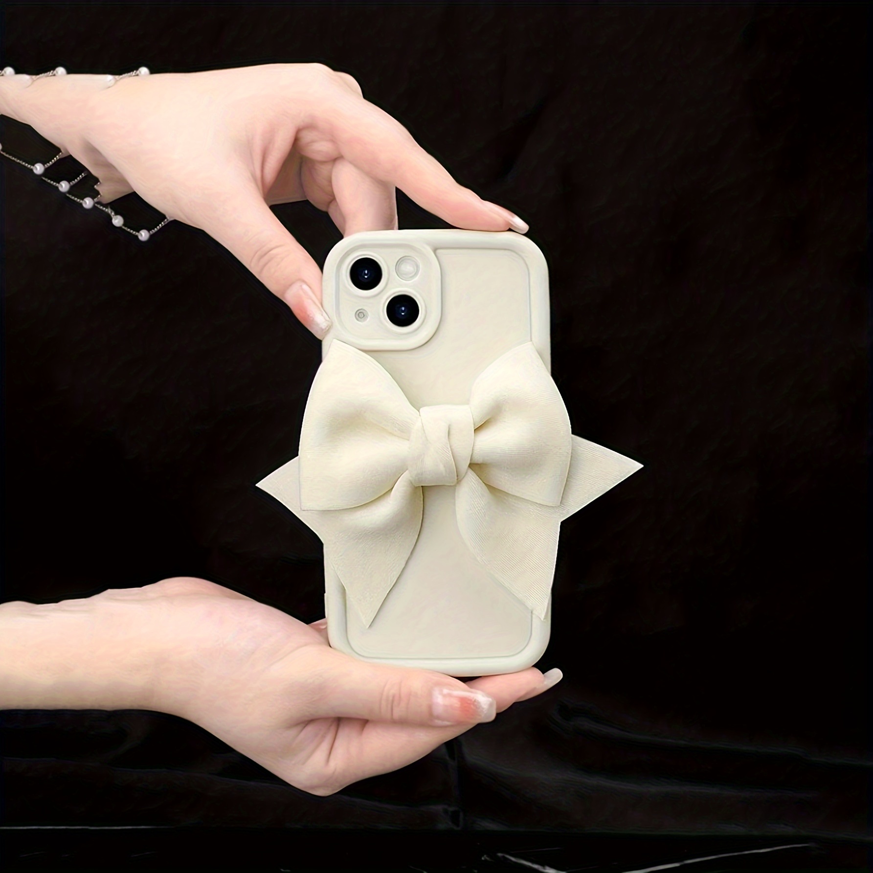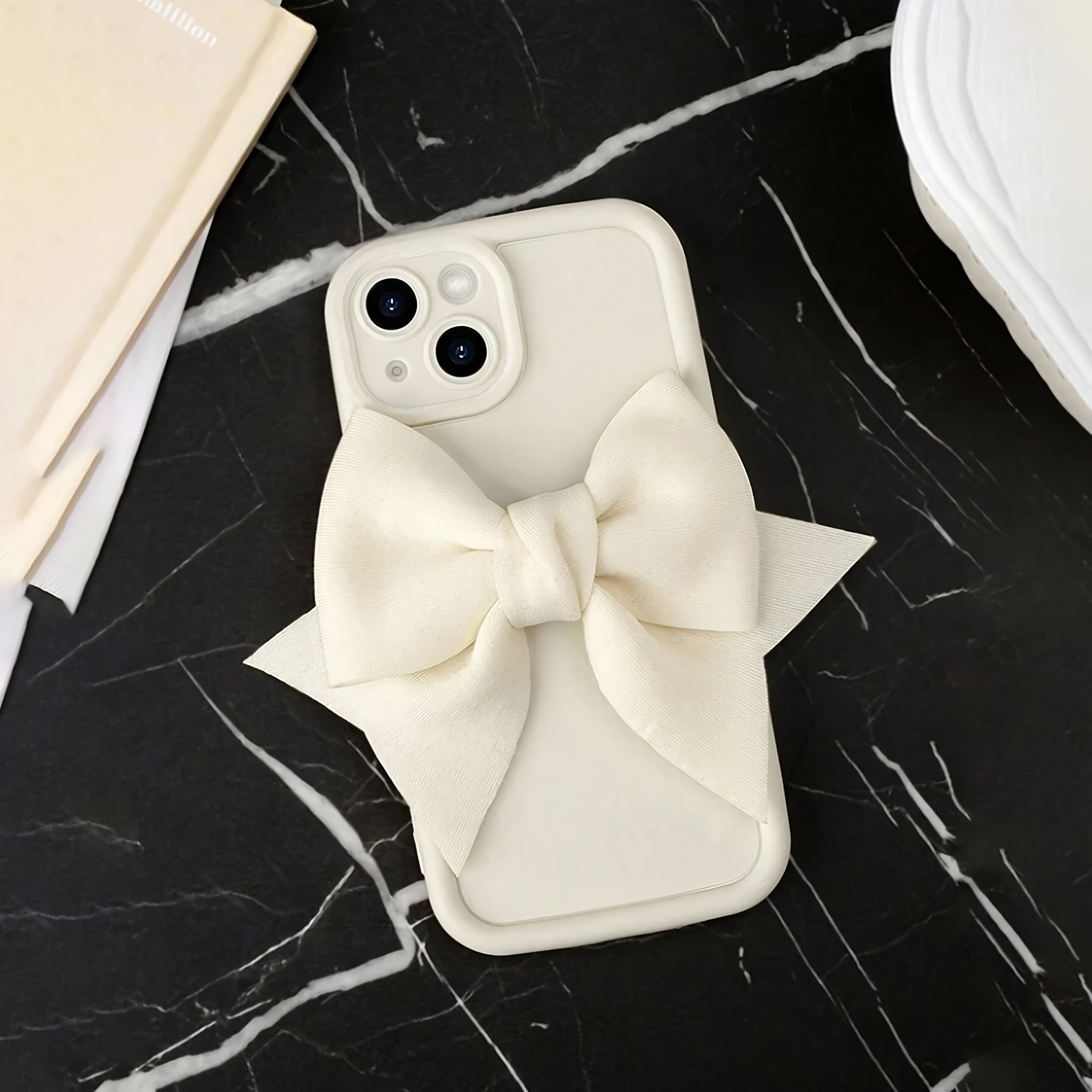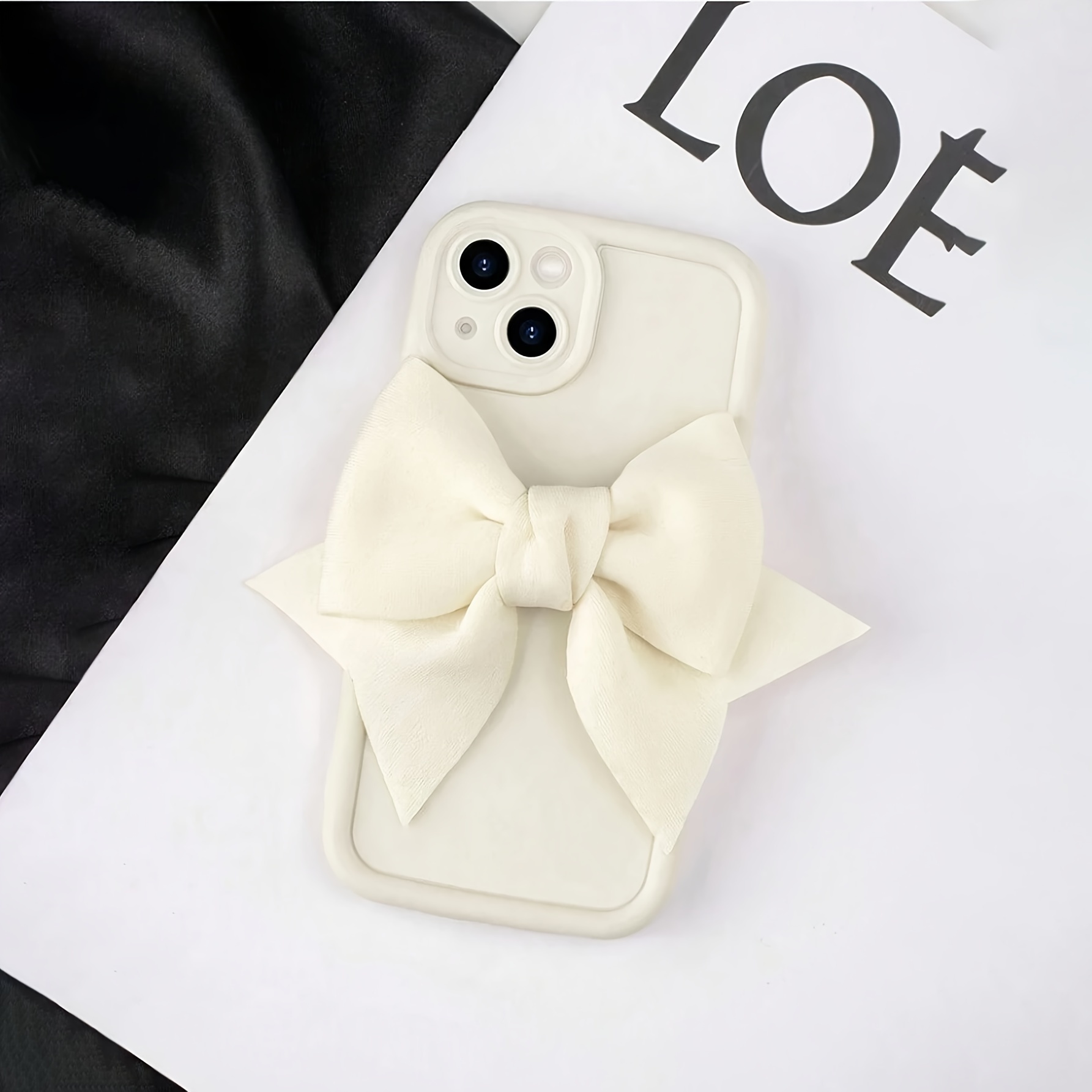 3D Velvet Bow Shockproof White Frosted Full Cover Anti-Fall Mobile Phone Case Suitable for Apple 16PROMAX/16PLUS/16PRO/16/15PROMAX/15PLUS/15PRO/15/14PROMAX/14PLUS/14PRO/14/13PROMAX/13PRO/13 /12PROMAX/12PRO/12 11PROMAX/11PRO/11/XSMAX/XR/XS/7#8PLUS/7#8 Protective Case Transparent Shock Absorption