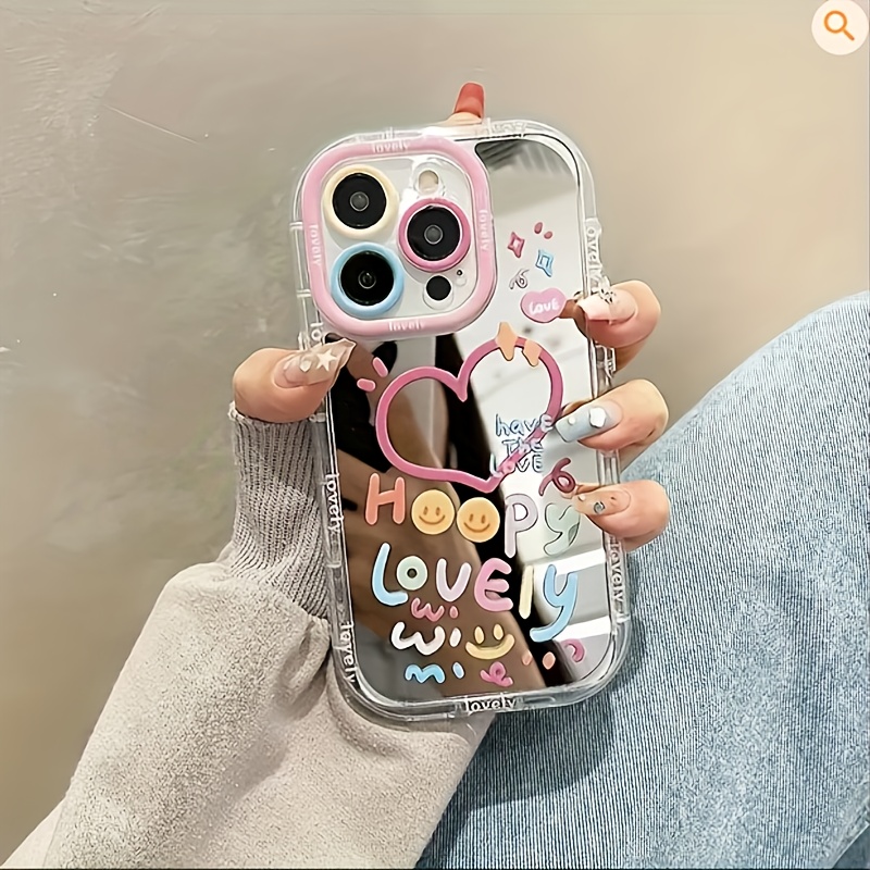 Adorable Girl Heart-Shaped Mirror Shockproof Back Cover Case Suitable for Apple iPhone 11/12/13/14/15, iPhone16/15/14/13/12/11 Pro Max XS/XR/X/7/8/Plus – Mirror Cream-Heart Transparent White-012DM