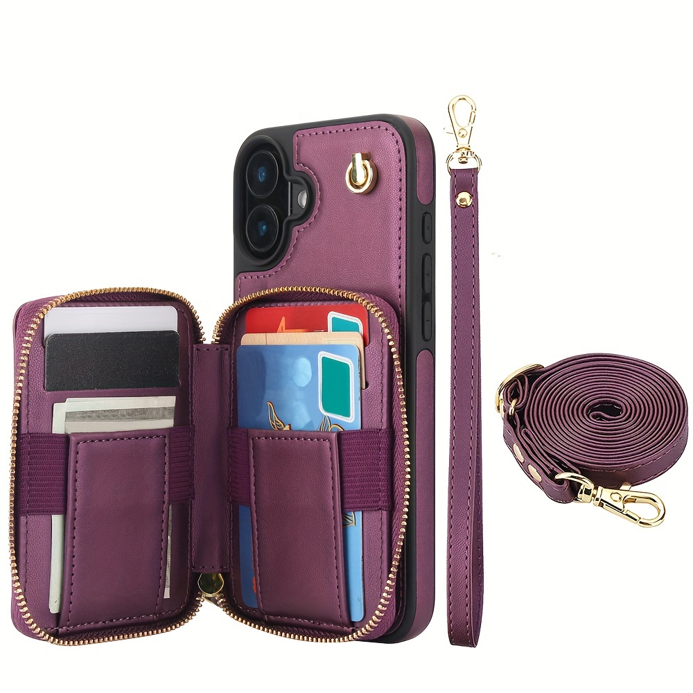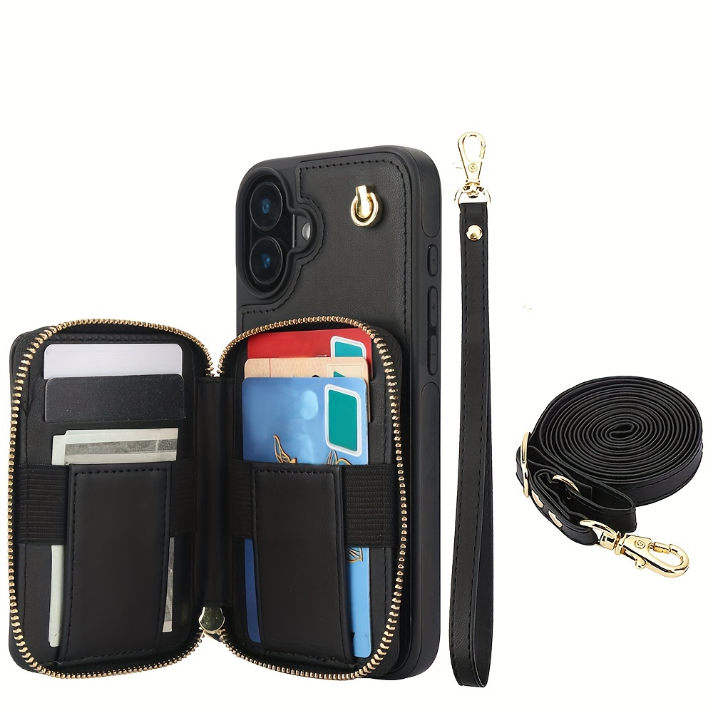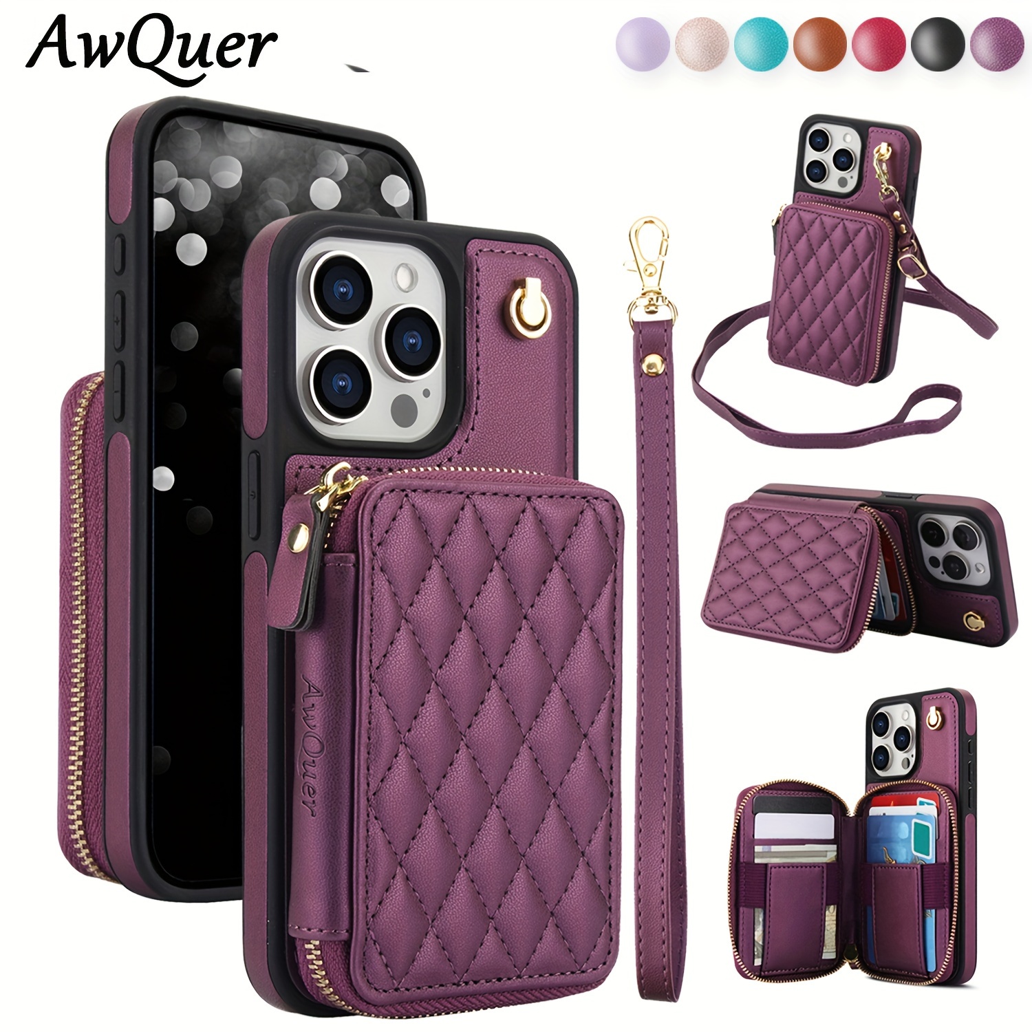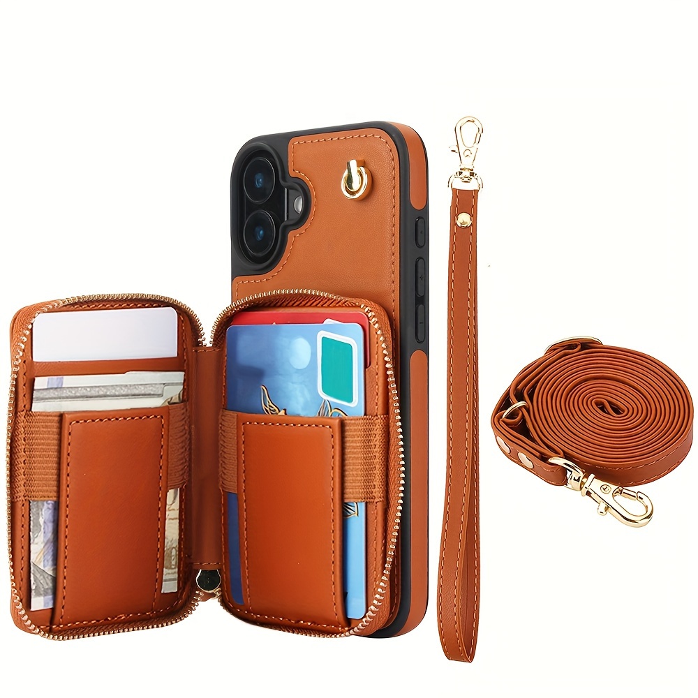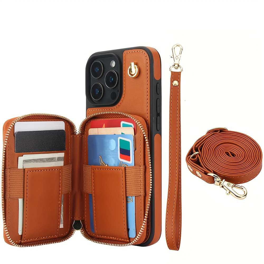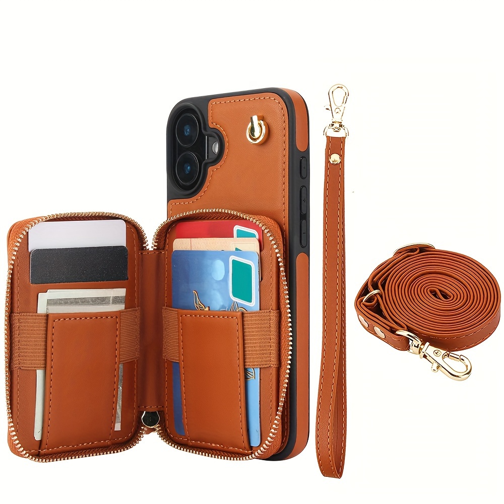 AWQUER Crossbody Faux Leather Case for iPhone Models 16E, 16, 15, 14, 13, 12, 11 Pro, X, XS Max, XR, 8, 7 Plus, SE 5G from 2024, 2022, And 2020, Featuring a Wrist Strap, Zipper Wallet, And Card Slot for Both Men And Women.
