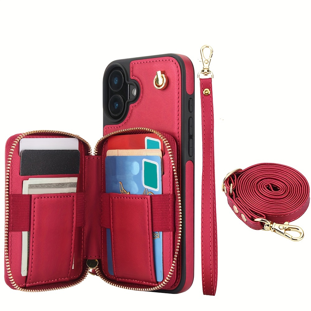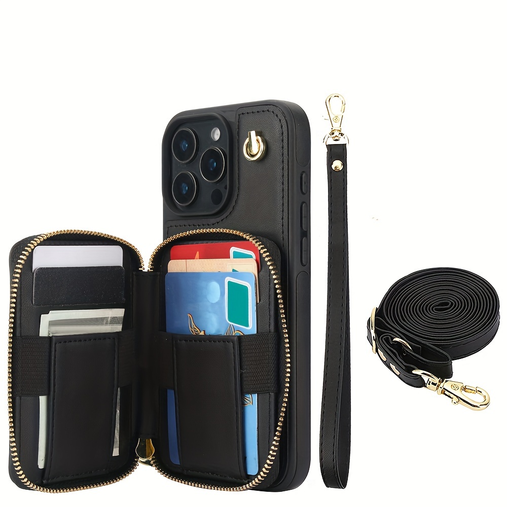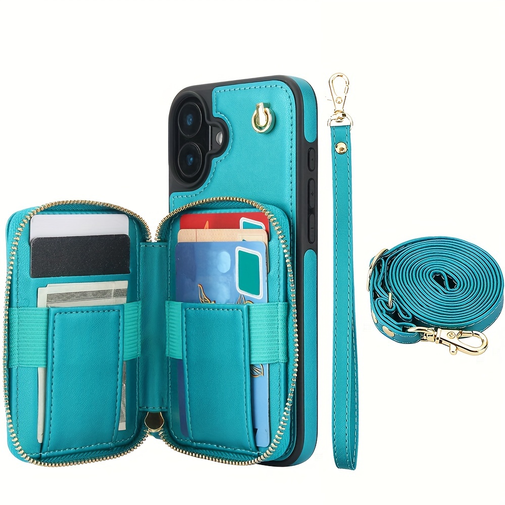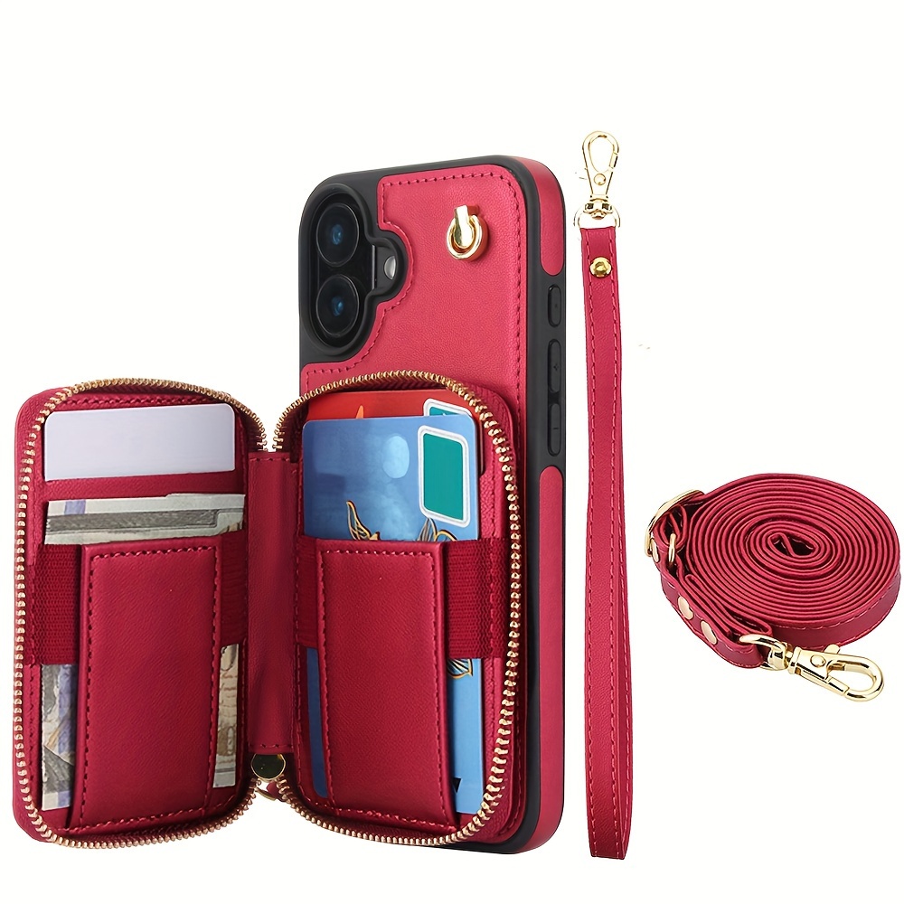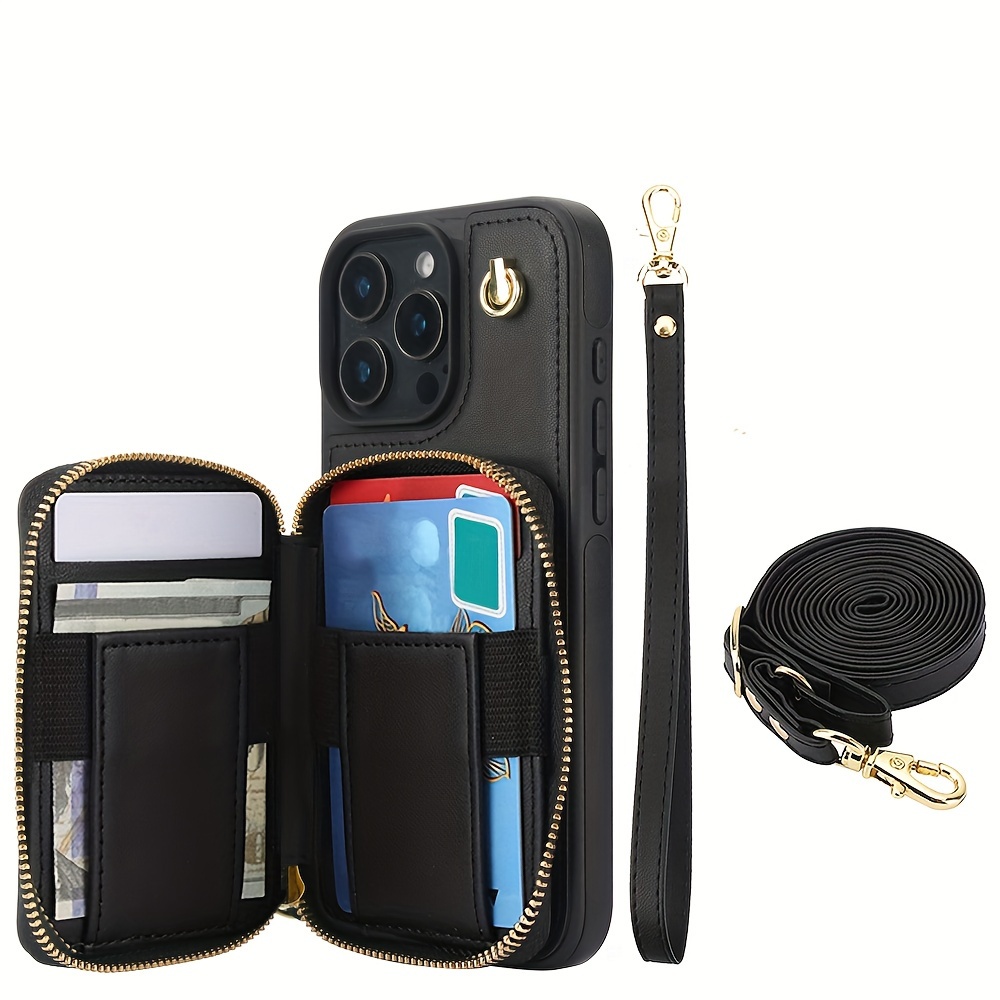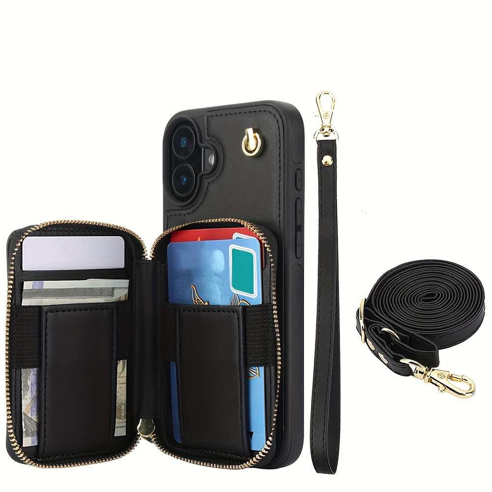 AWQUER Crossbody Faux Leather Case for iPhone Models 16E, 16, 15, 14, 13, 12, 11 Pro, X, XS Max, XR, 8, 7 Plus, SE 5G from 2024, 2022, And 2020, Featuring a Wrist Strap, Zipper Wallet, And Card Slot for Both Men And Women.