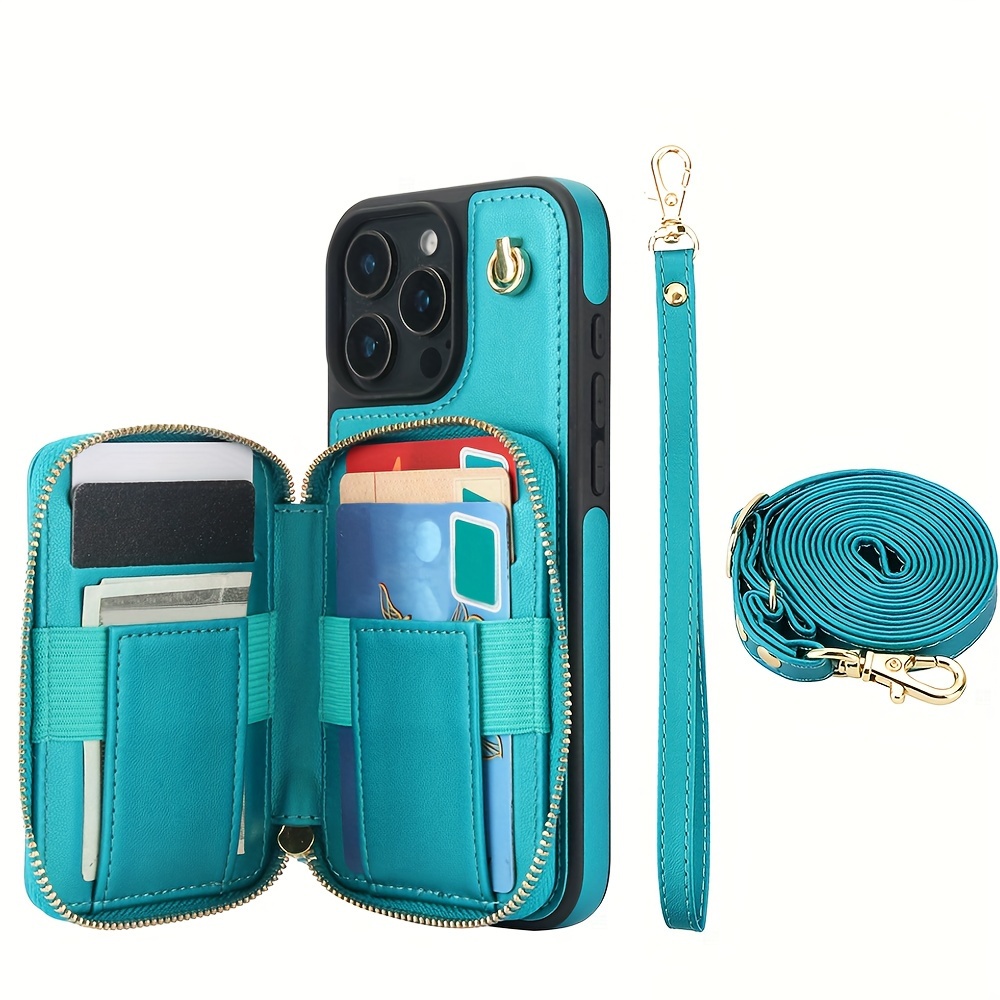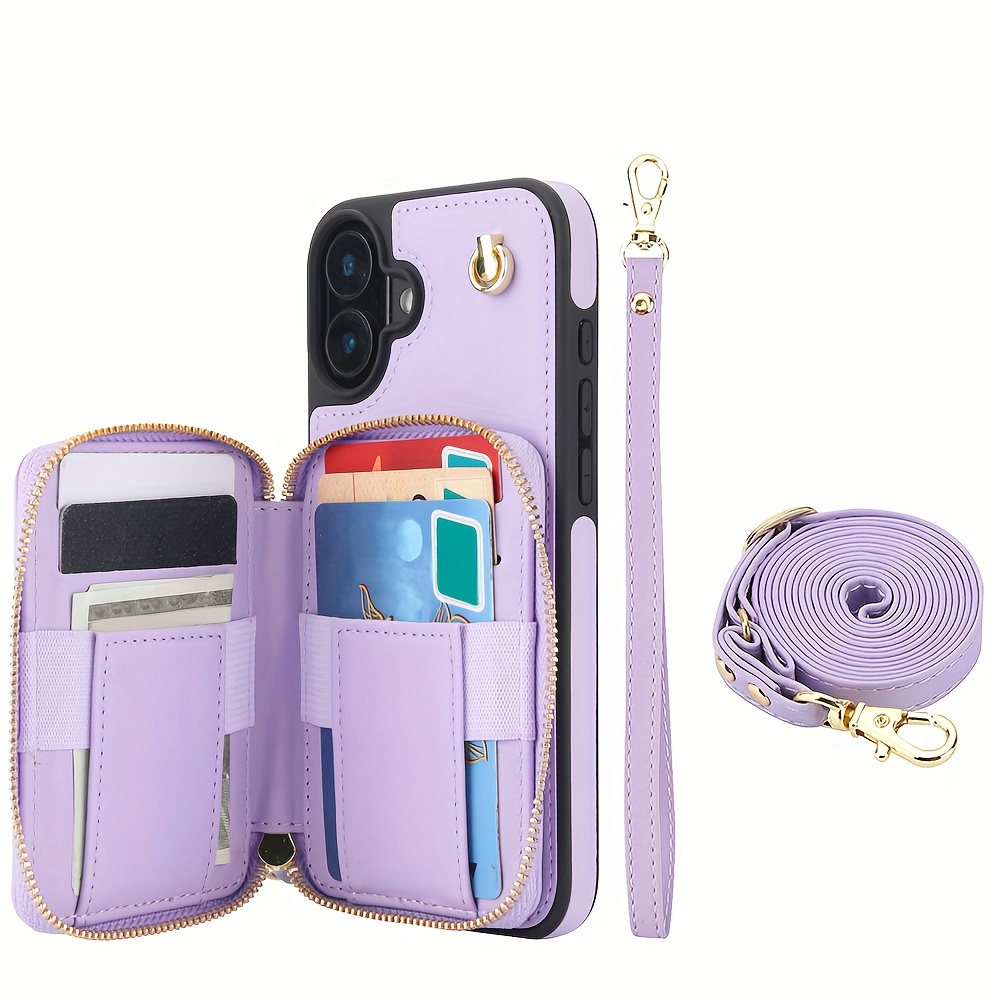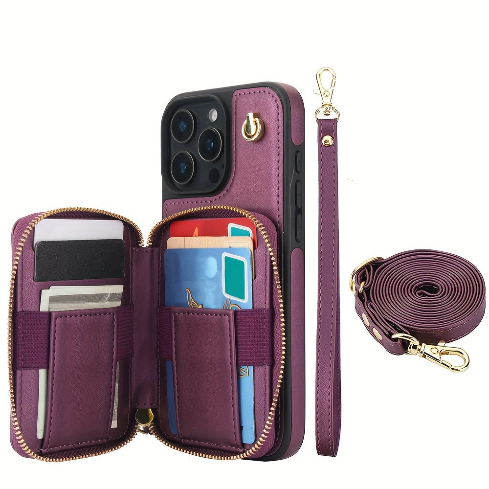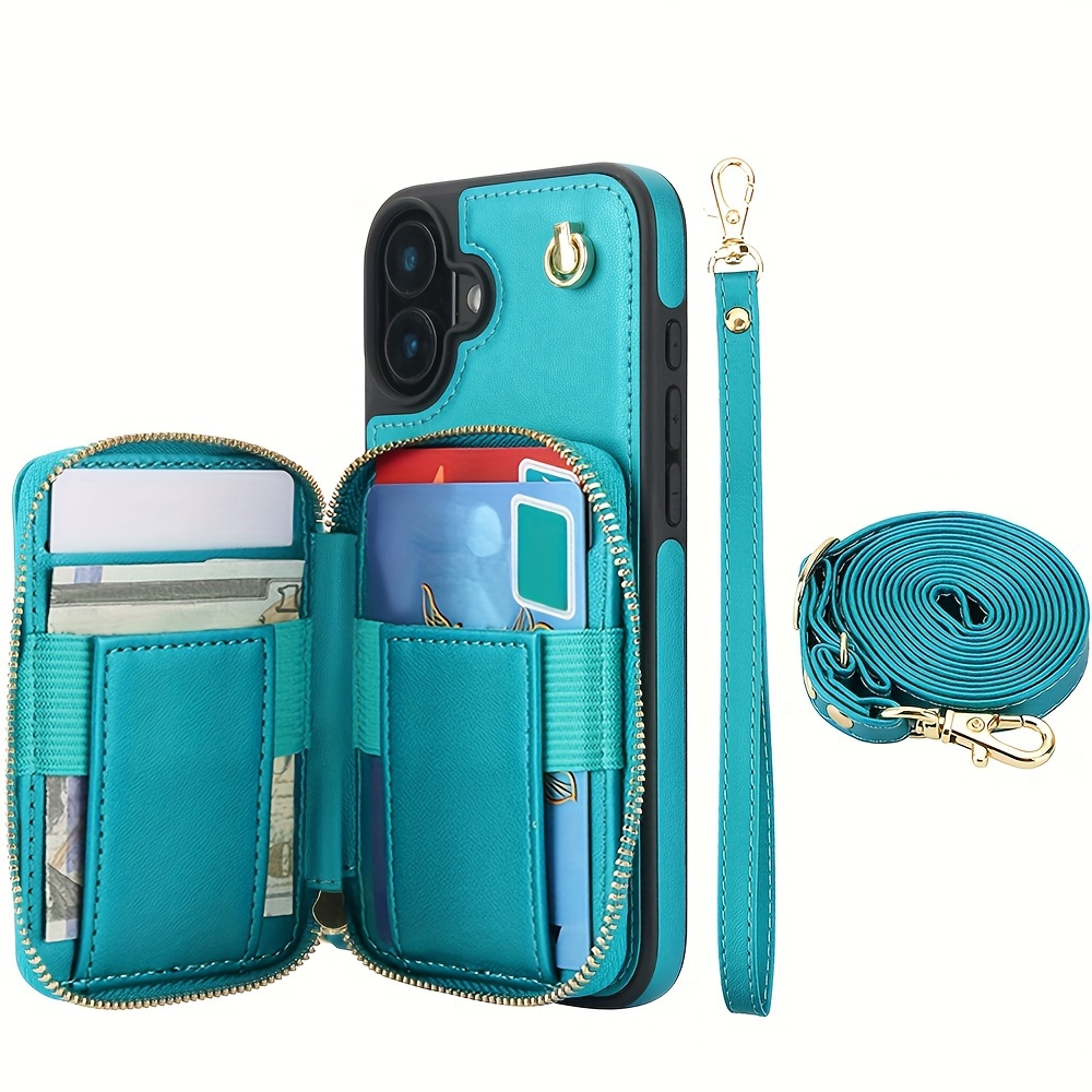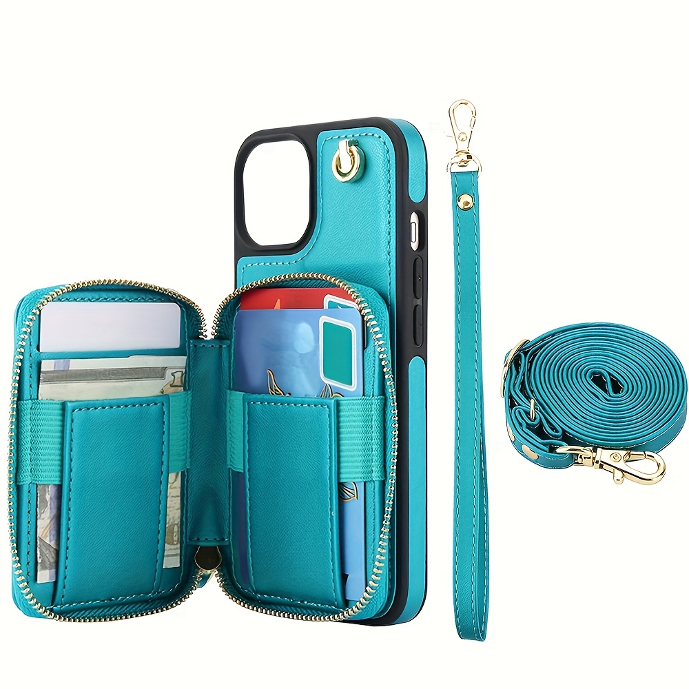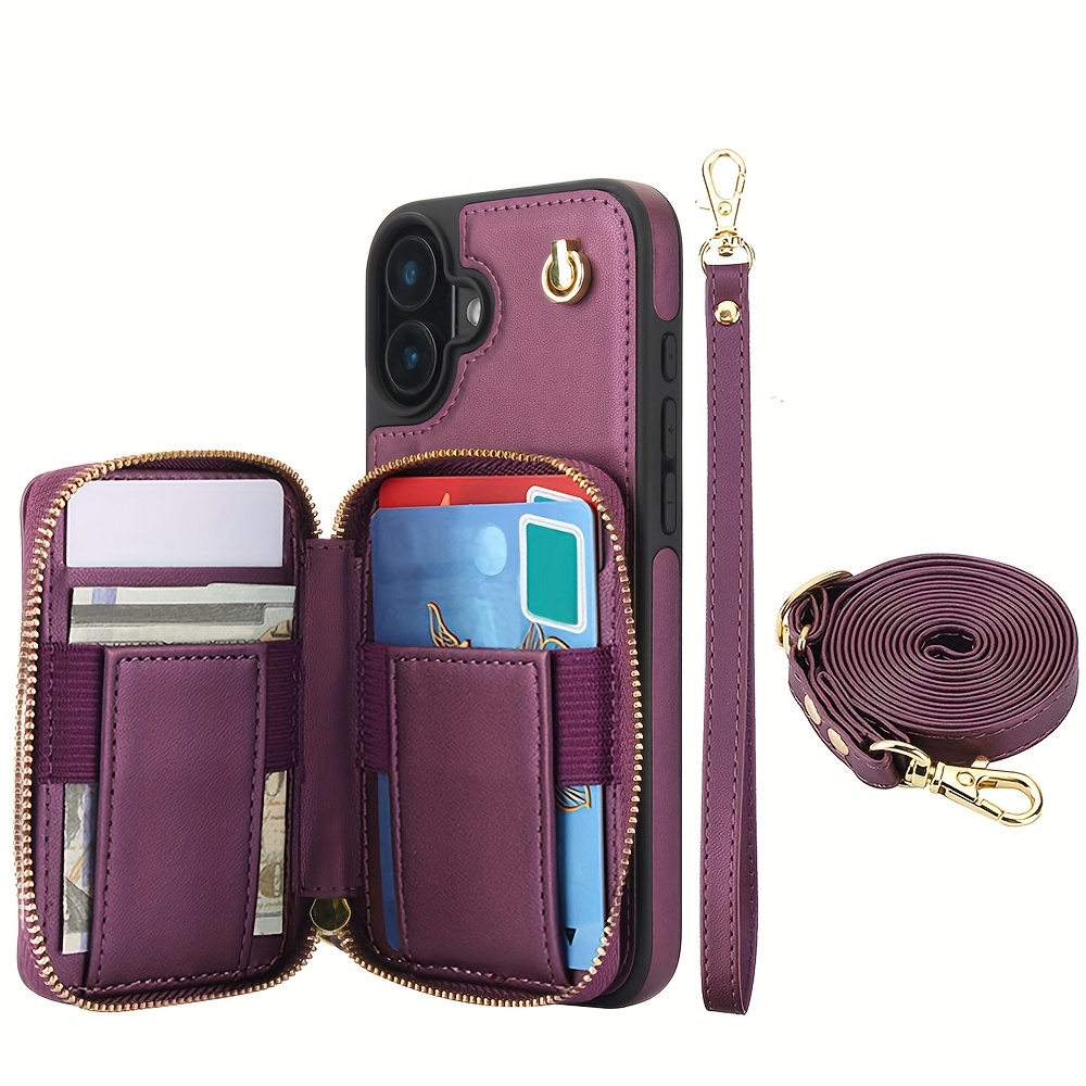 AWQUER Crossbody Faux Leather Case for iPhone Models 16E, 16, 15, 14, 13, 12, 11 Pro, X, XS Max, XR, 8, 7 Plus, SE 5G from 2024, 2022, And 2020, Featuring a Wrist Strap, Zipper Wallet, And Card Slot for Both Men And Women.