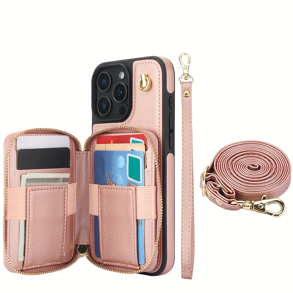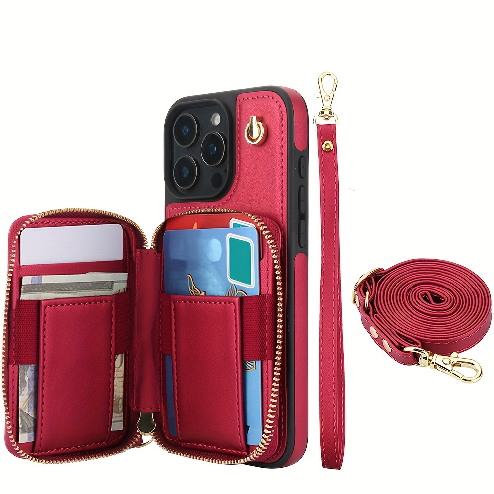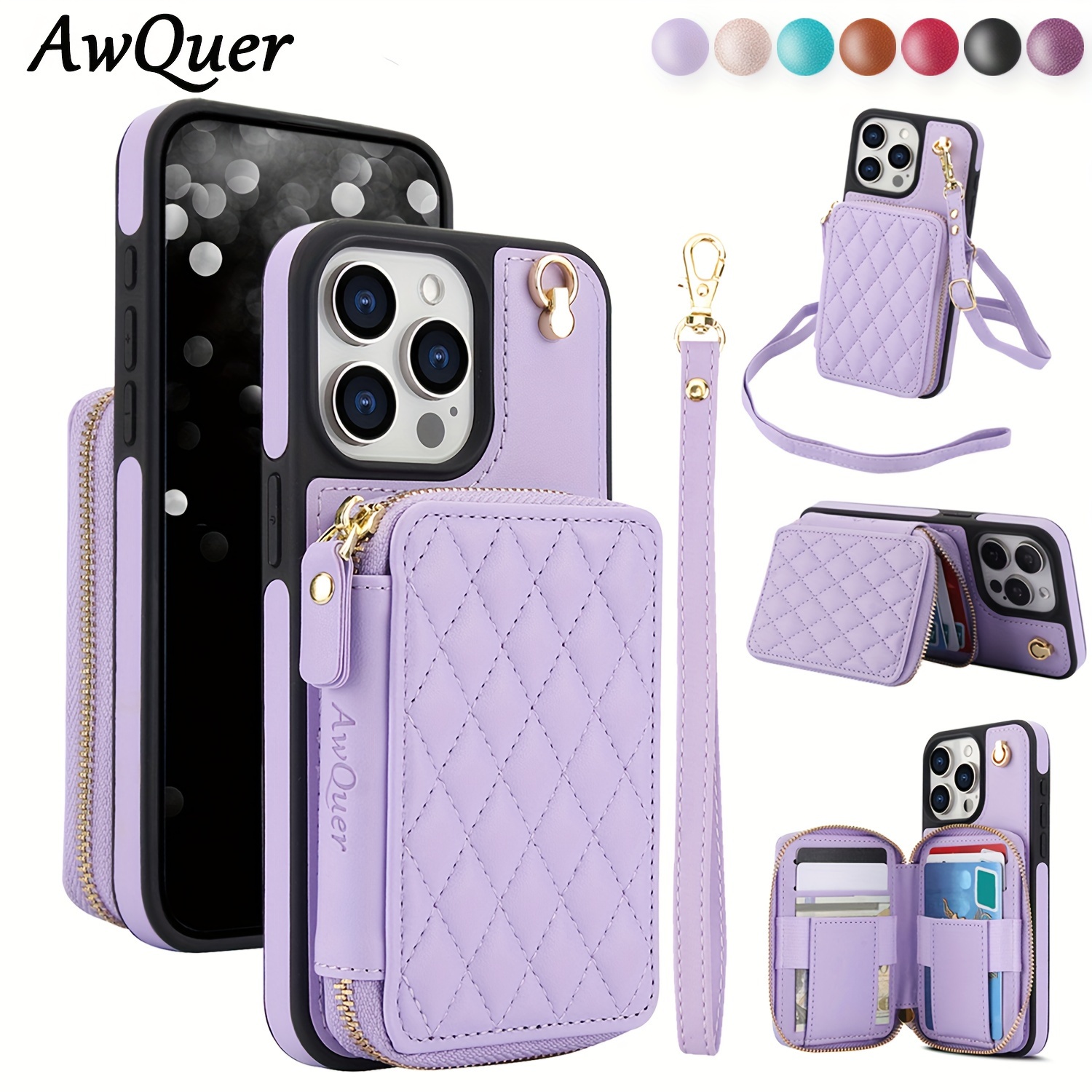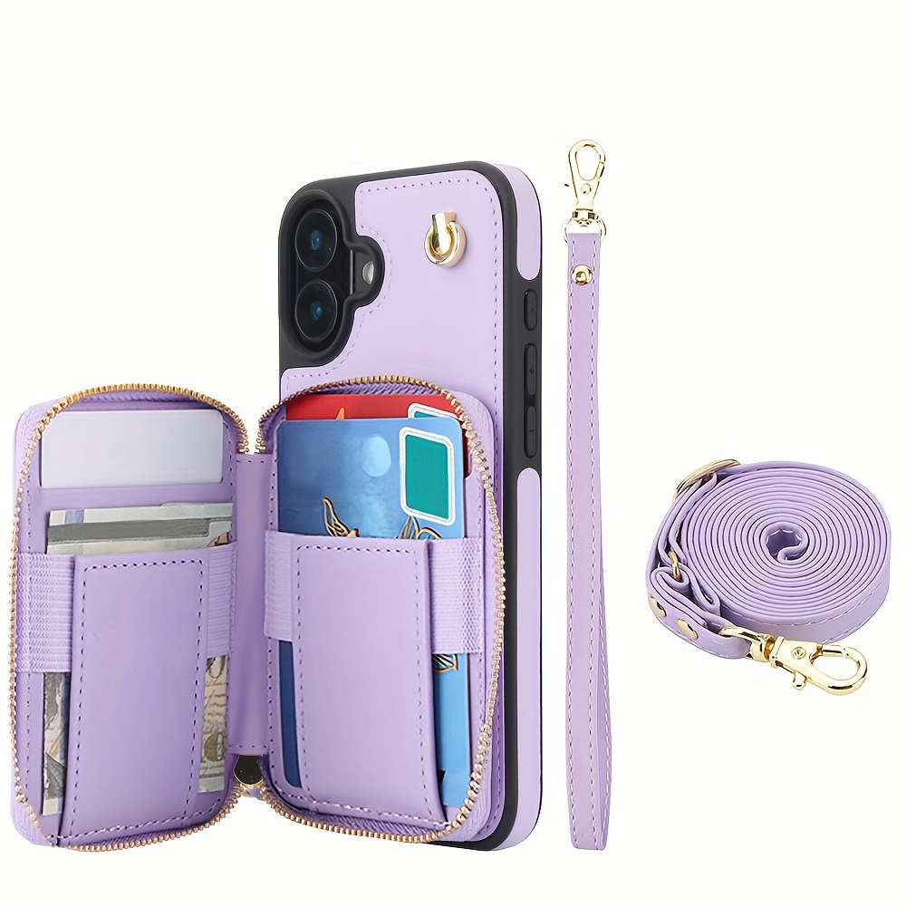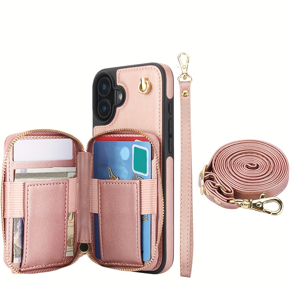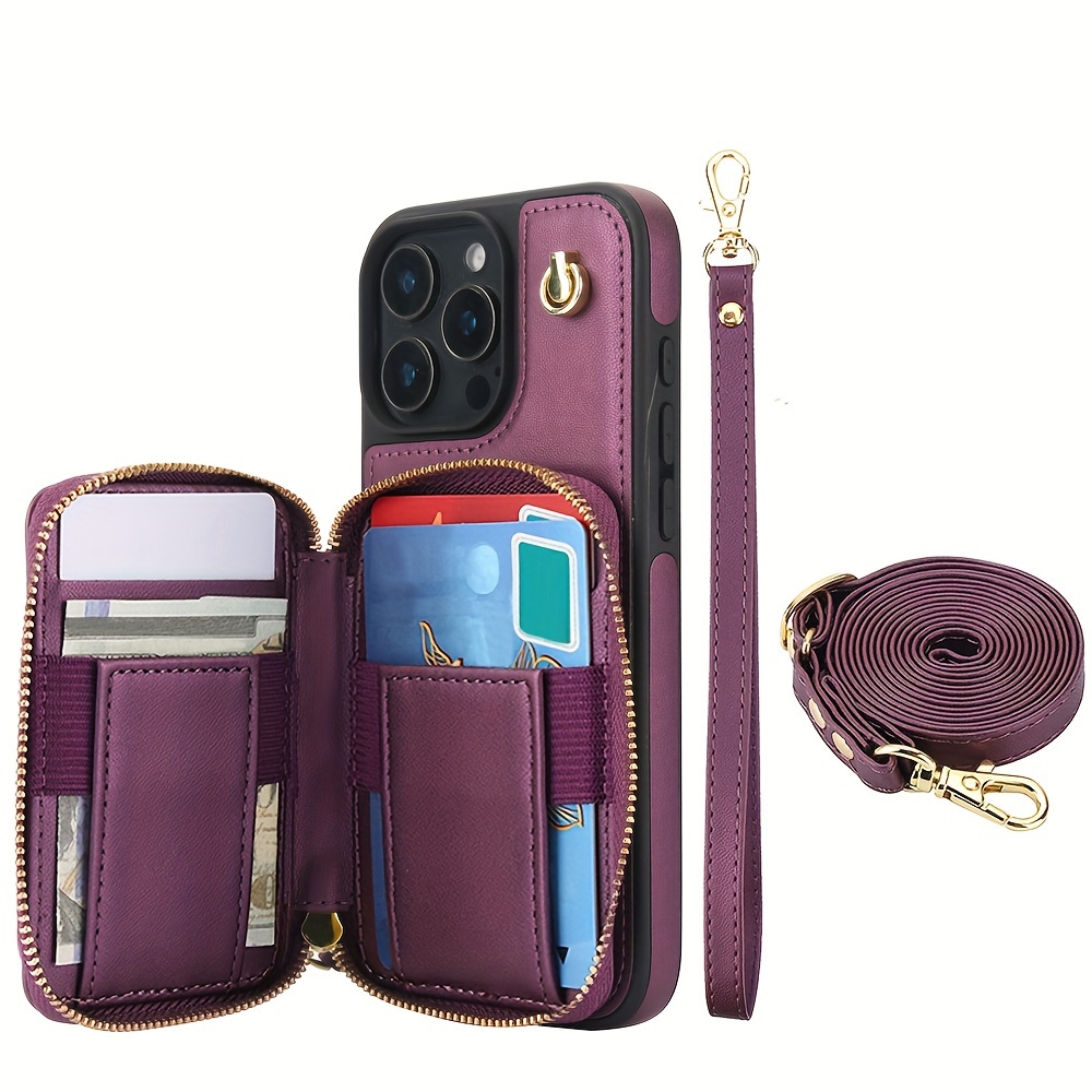 AWQUER Crossbody Faux Leather Case for iPhone Models 16E, 16, 15, 14, 13, 12, 11 Pro, X, XS Max, XR, 8, 7 Plus, SE 5G from 2024, 2022, And 2020, Featuring a Wrist Strap, Zipper Wallet, And Card Slot for Both Men And Women.
