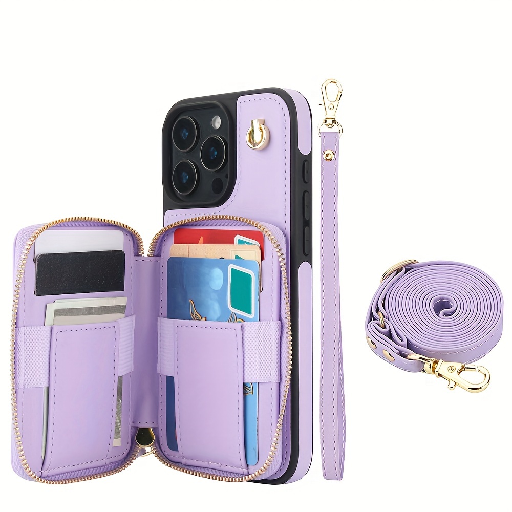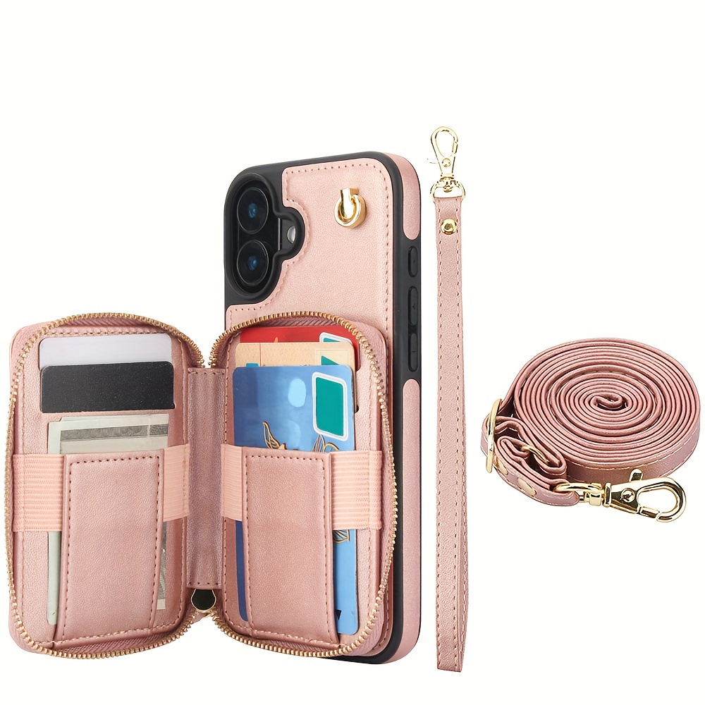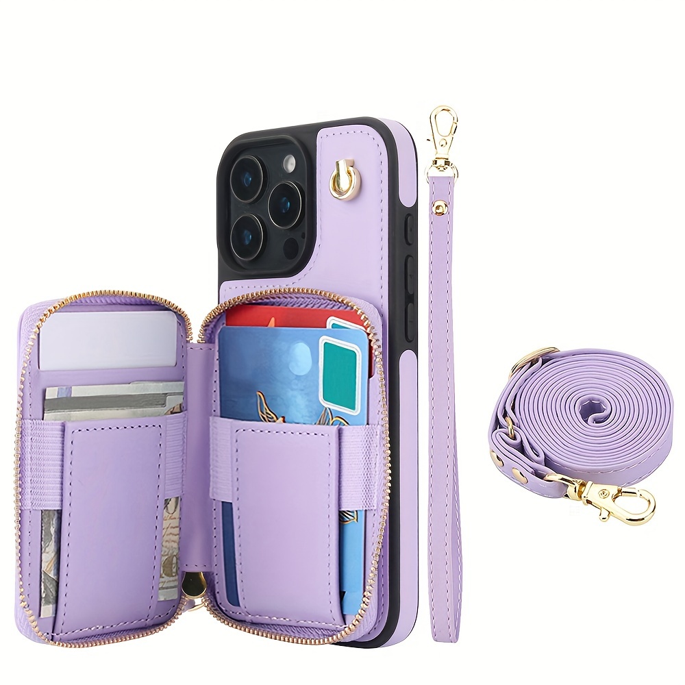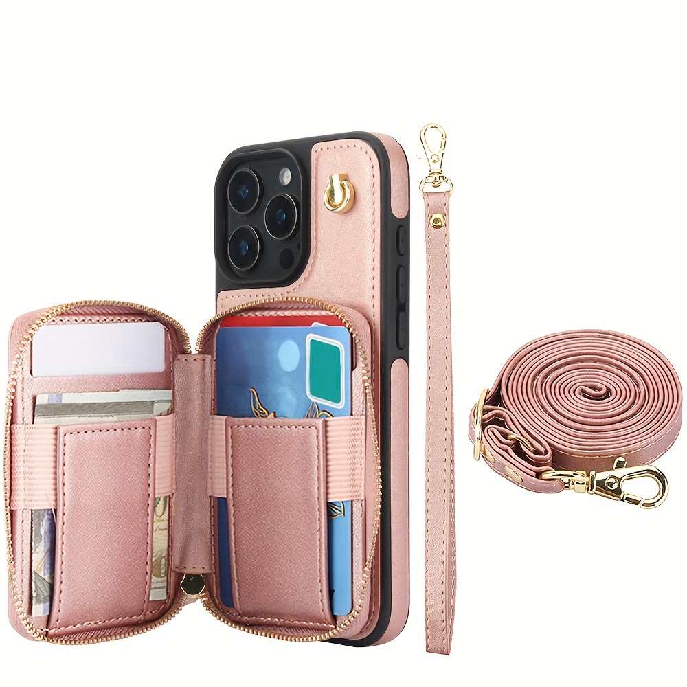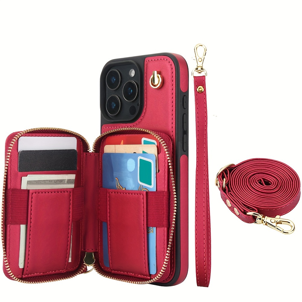 AWQUER Crossbody Faux Leather Case for iPhone Models 16E, 16, 15, 14, 13, 12, 11 Pro, X, XS Max, XR, 8, 7 Plus, SE 5G from 2024, 2022, And 2020, Featuring a Wrist Strap, Zipper Wallet, And Card Slot for Both Men And Women.