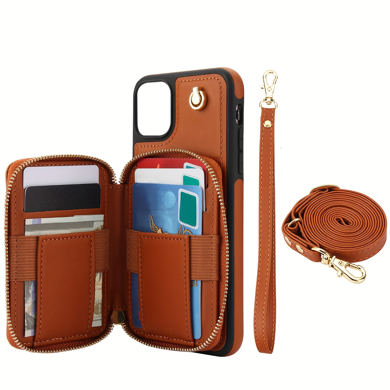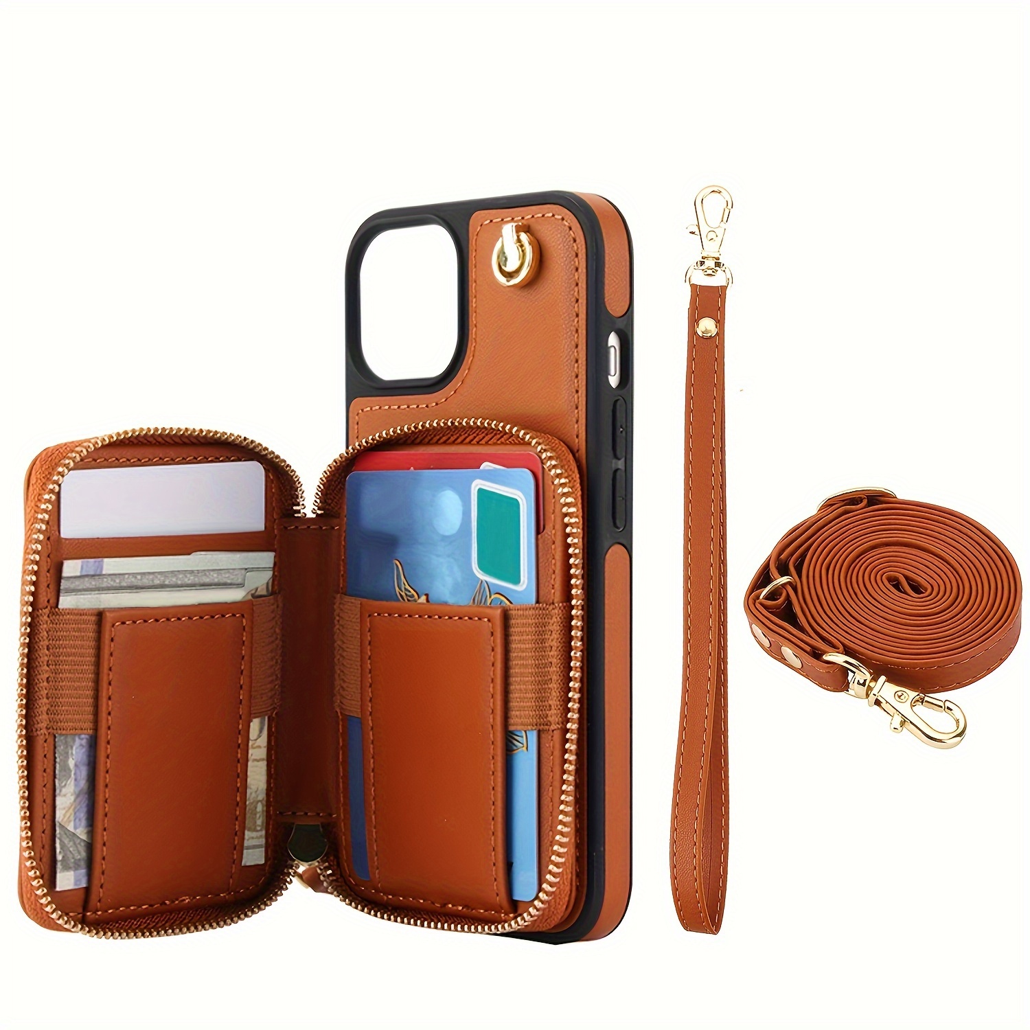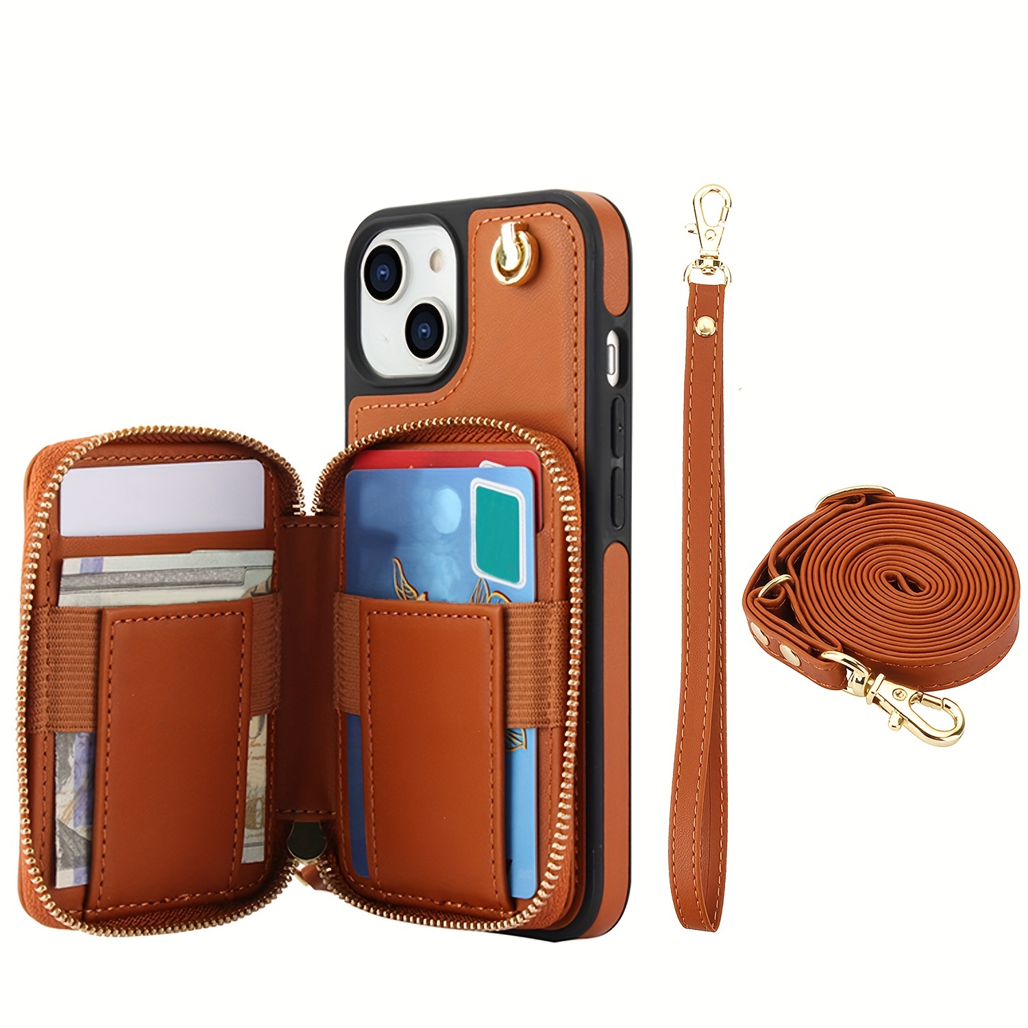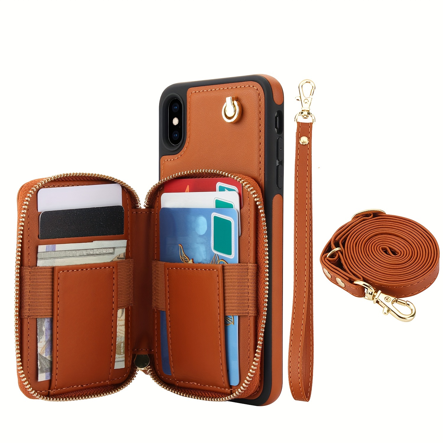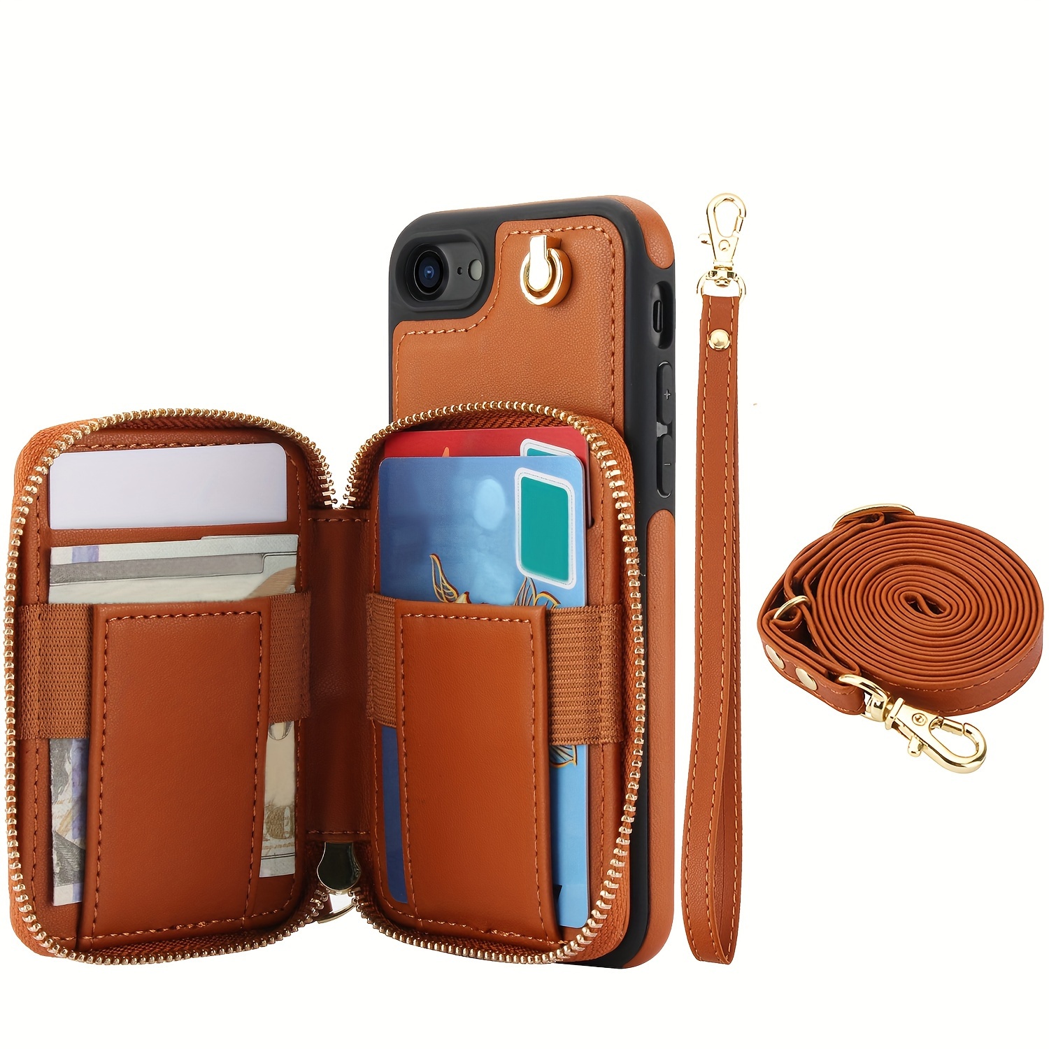 AWQUER Crossbody Faux Leather Case for iPhone Models 16E, 16, 15, 14, 13, 12, 11 Pro, X, XS Max, XR, 8, 7 Plus, SE 5G from 2024, 2022, And 2020, Featuring a Wrist Strap, Zipper Wallet, And Card Slot for Both Men And Women.