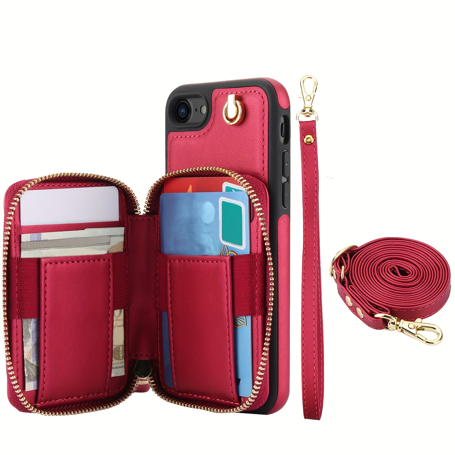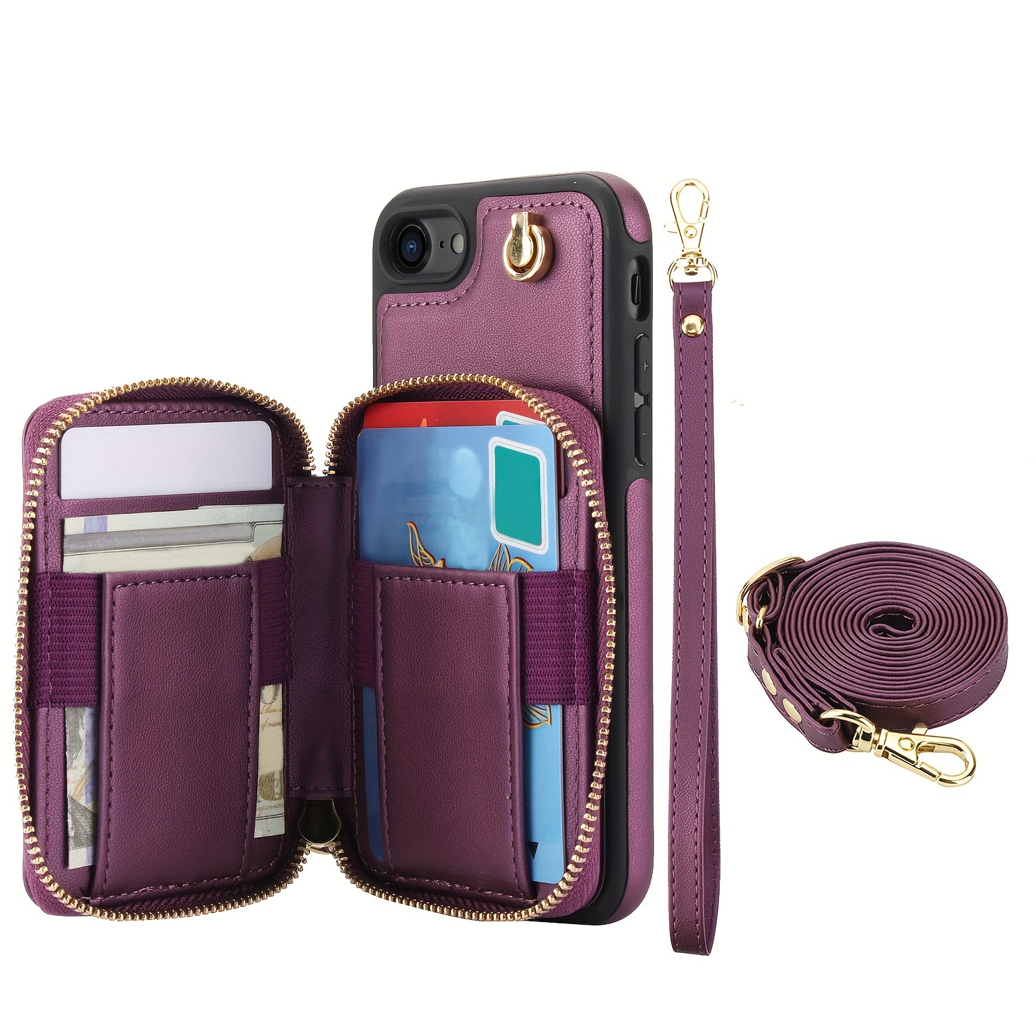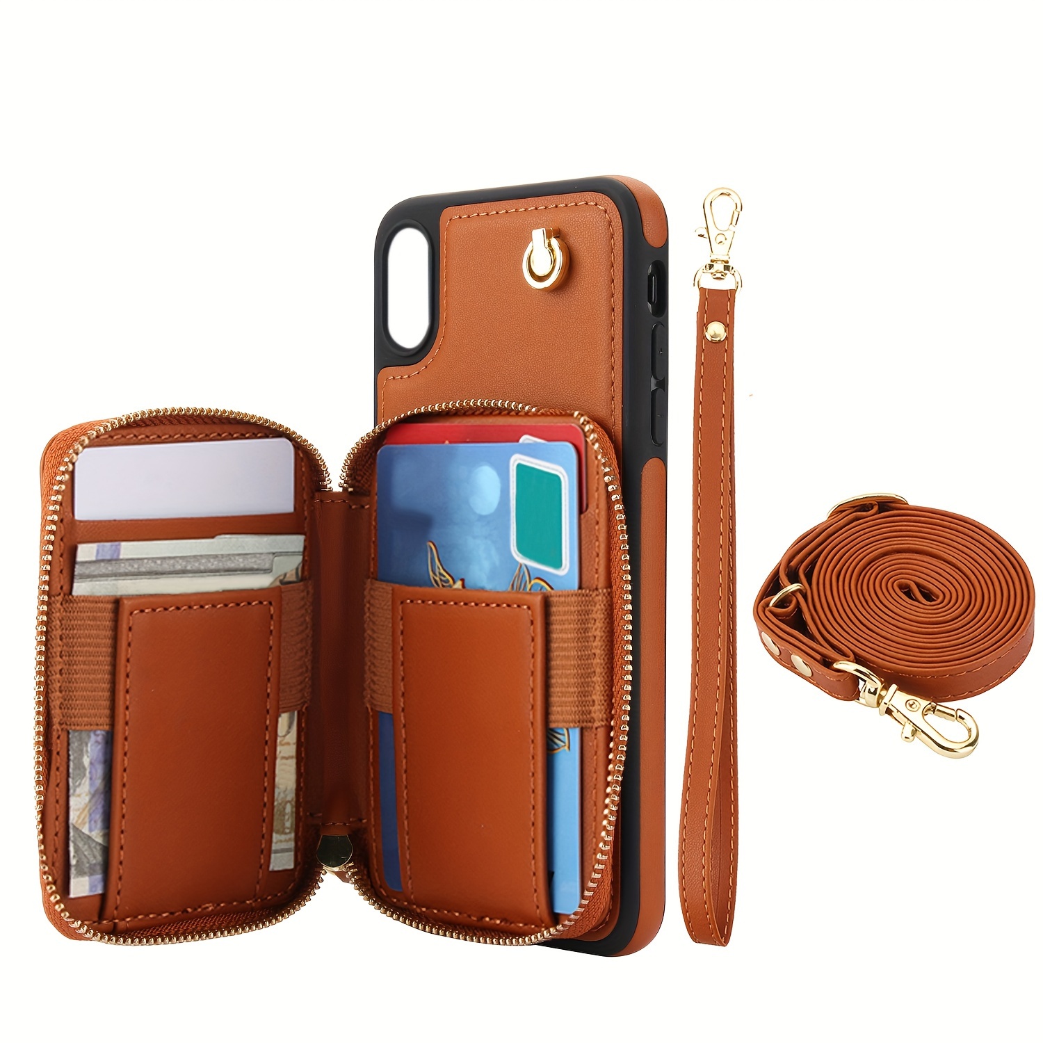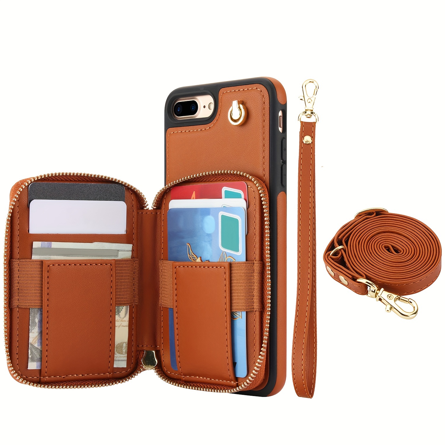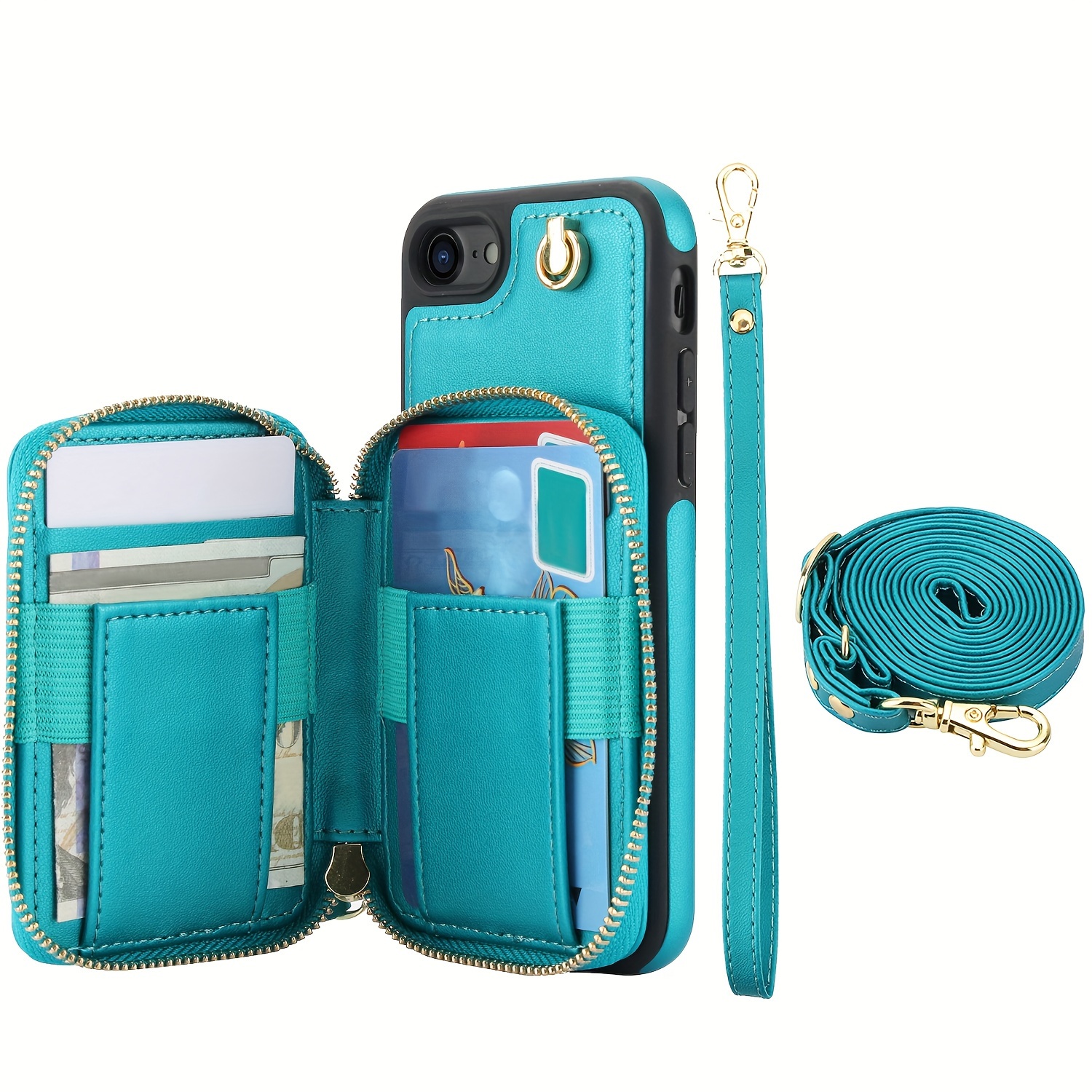 AWQUER Crossbody Faux Leather Case for iPhone Models 16E, 16, 15, 14, 13, 12, 11 Pro, X, XS Max, XR, 8, 7 Plus, SE 5G from 2024, 2022, And 2020, Featuring a Wrist Strap, Zipper Wallet, And Card Slot for Both Men And Women.