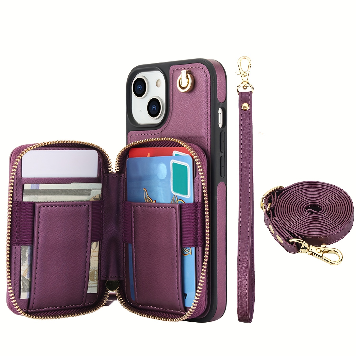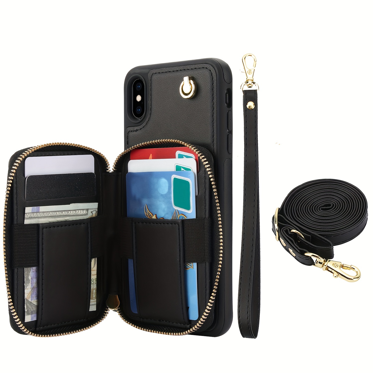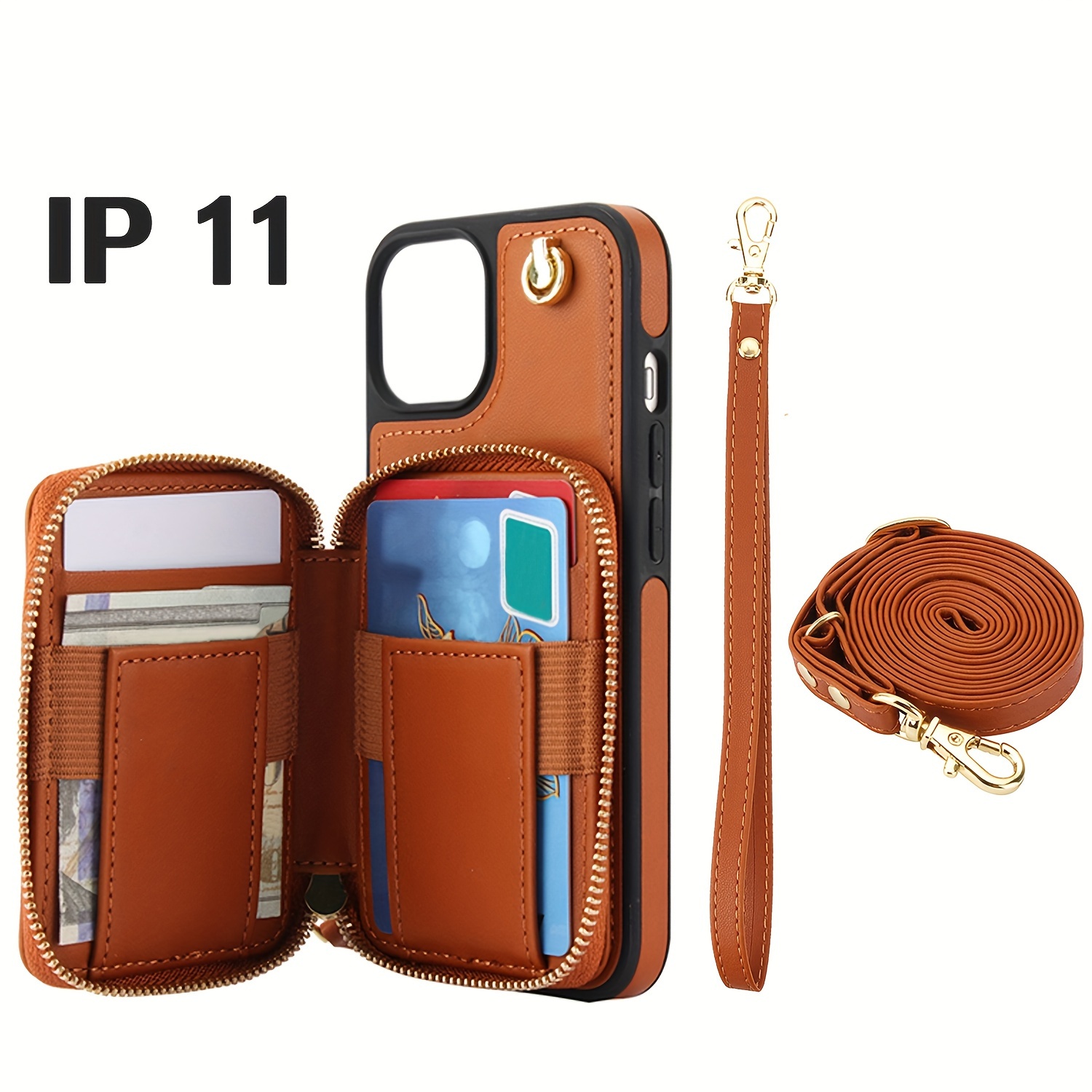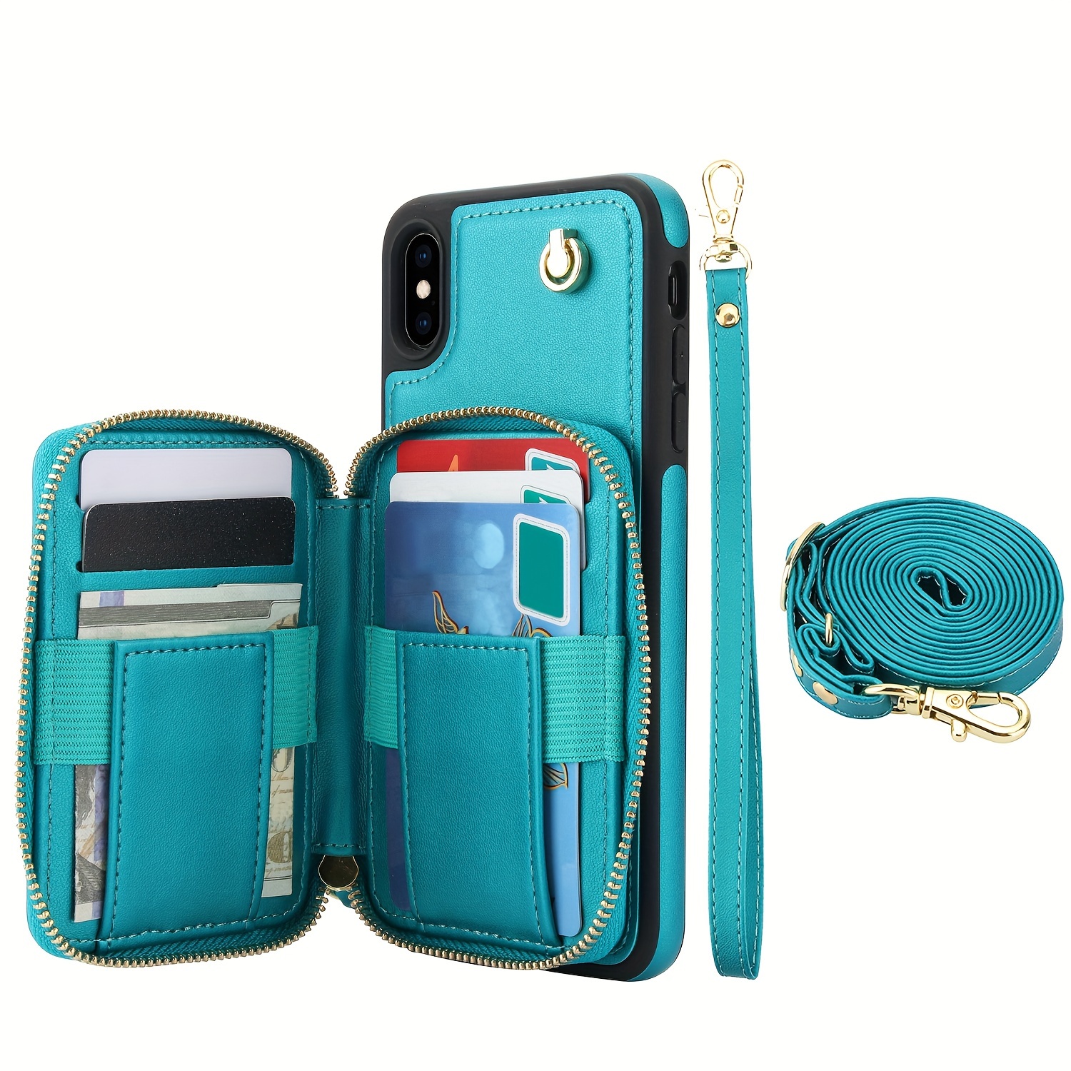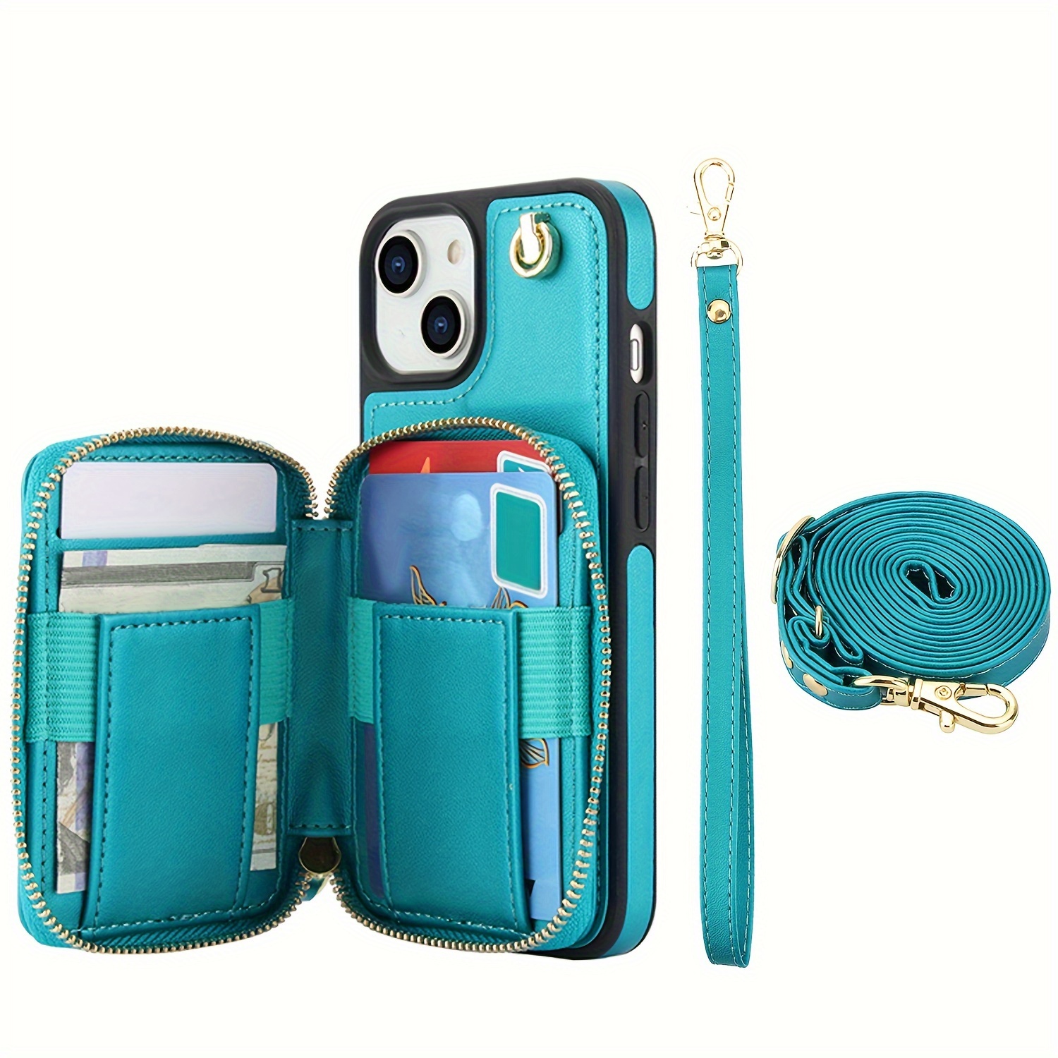 AWQUER Crossbody Faux Leather Case for iPhone Models 16E, 16, 15, 14, 13, 12, 11 Pro, X, XS Max, XR, 8, 7 Plus, SE 5G from 2024, 2022, And 2020, Featuring a Wrist Strap, Zipper Wallet, And Card Slot for Both Men And Women.