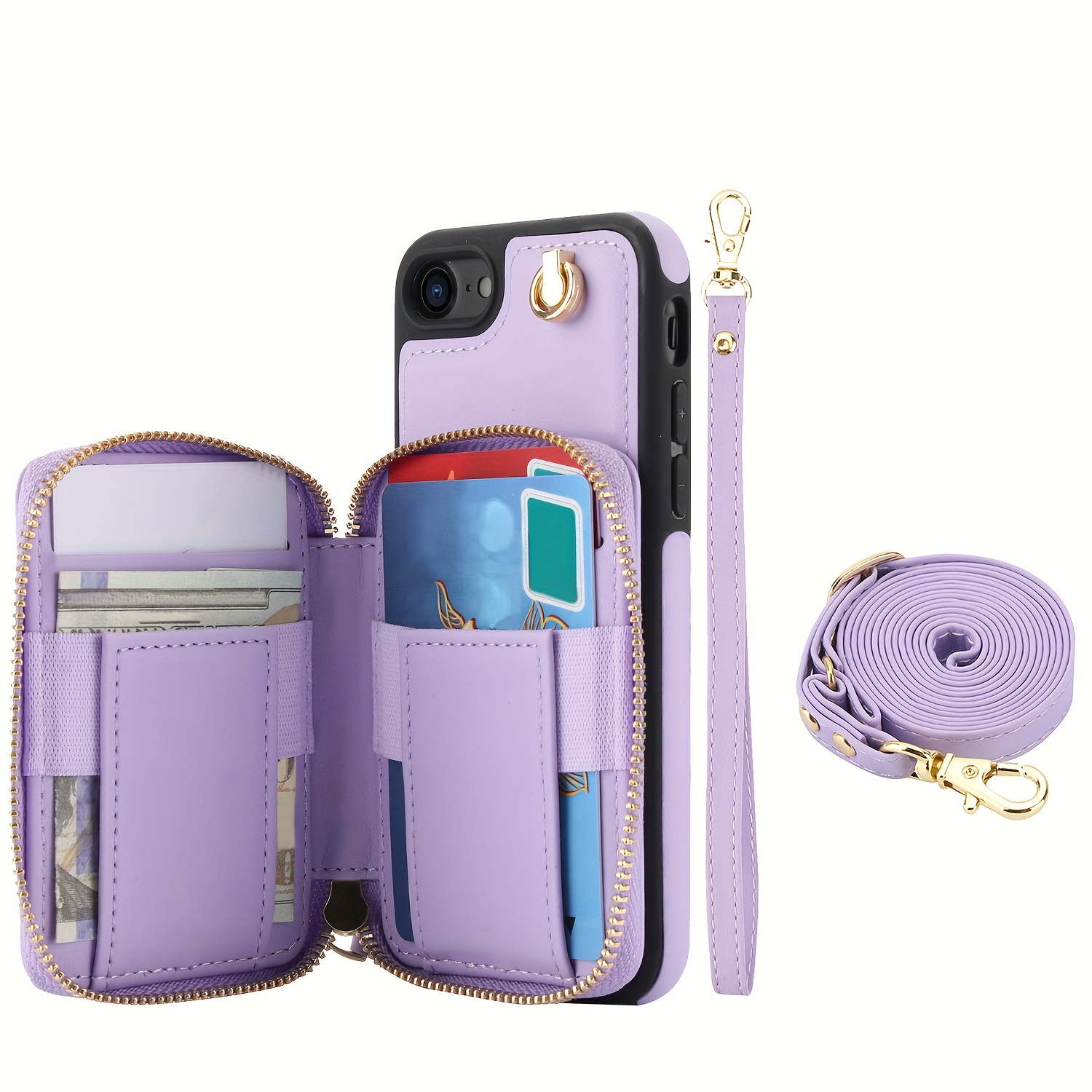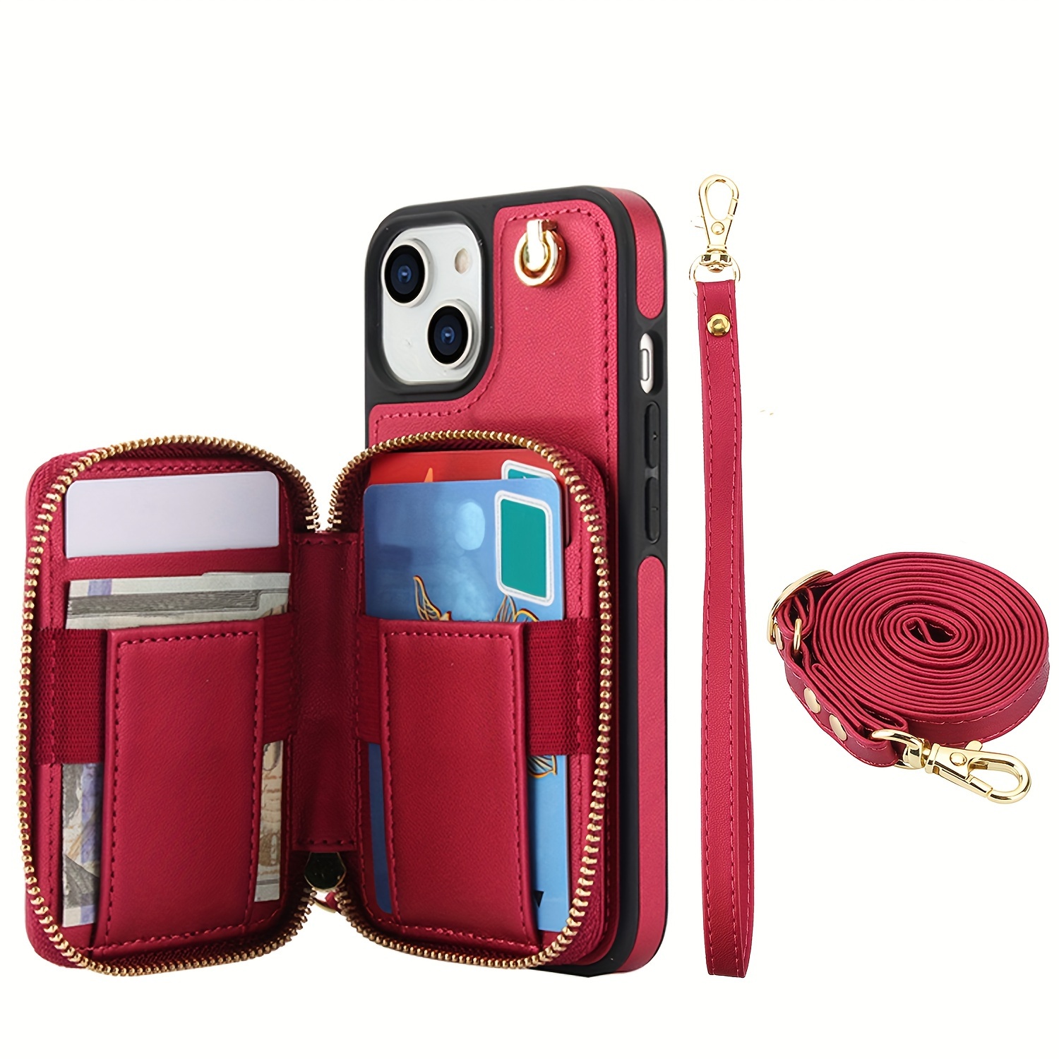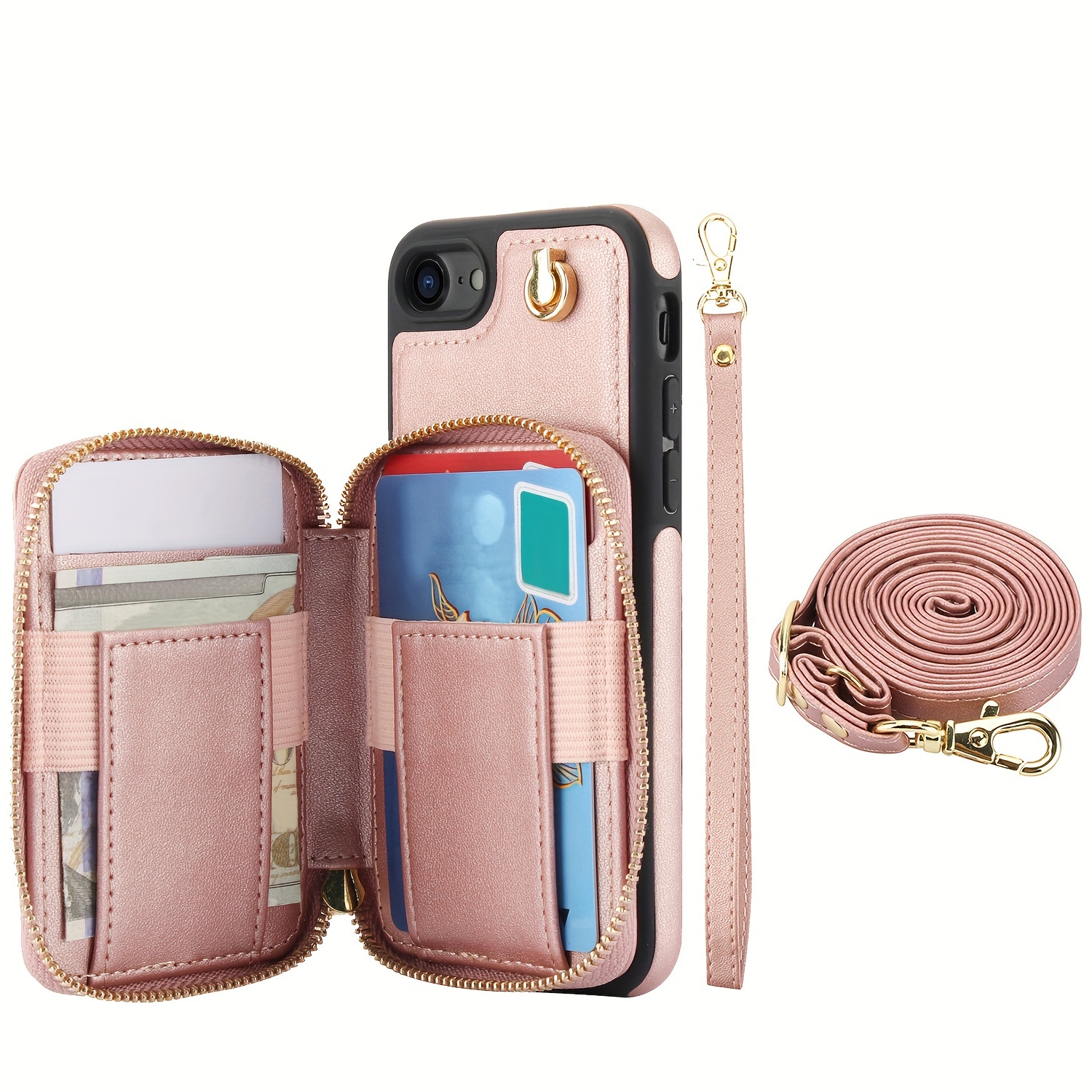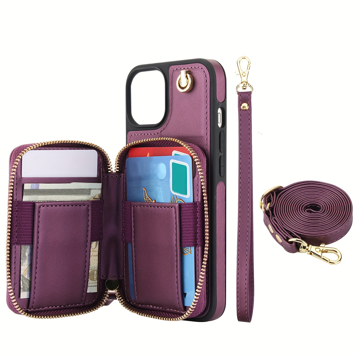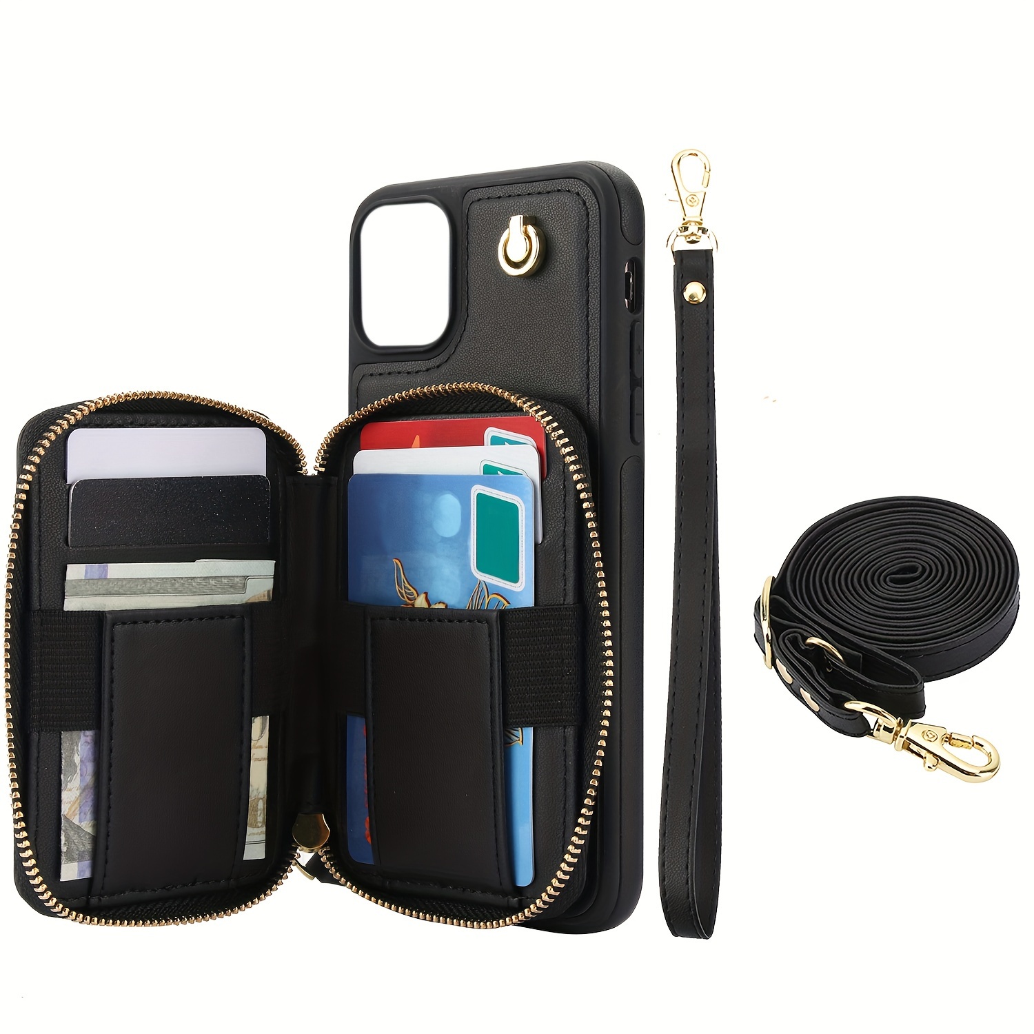 AWQUER Crossbody Faux Leather Case for iPhone Models 16E, 16, 15, 14, 13, 12, 11 Pro, X, XS Max, XR, 8, 7 Plus, SE 5G from 2024, 2022, And 2020, Featuring a Wrist Strap, Zipper Wallet, And Card Slot for Both Men And Women.