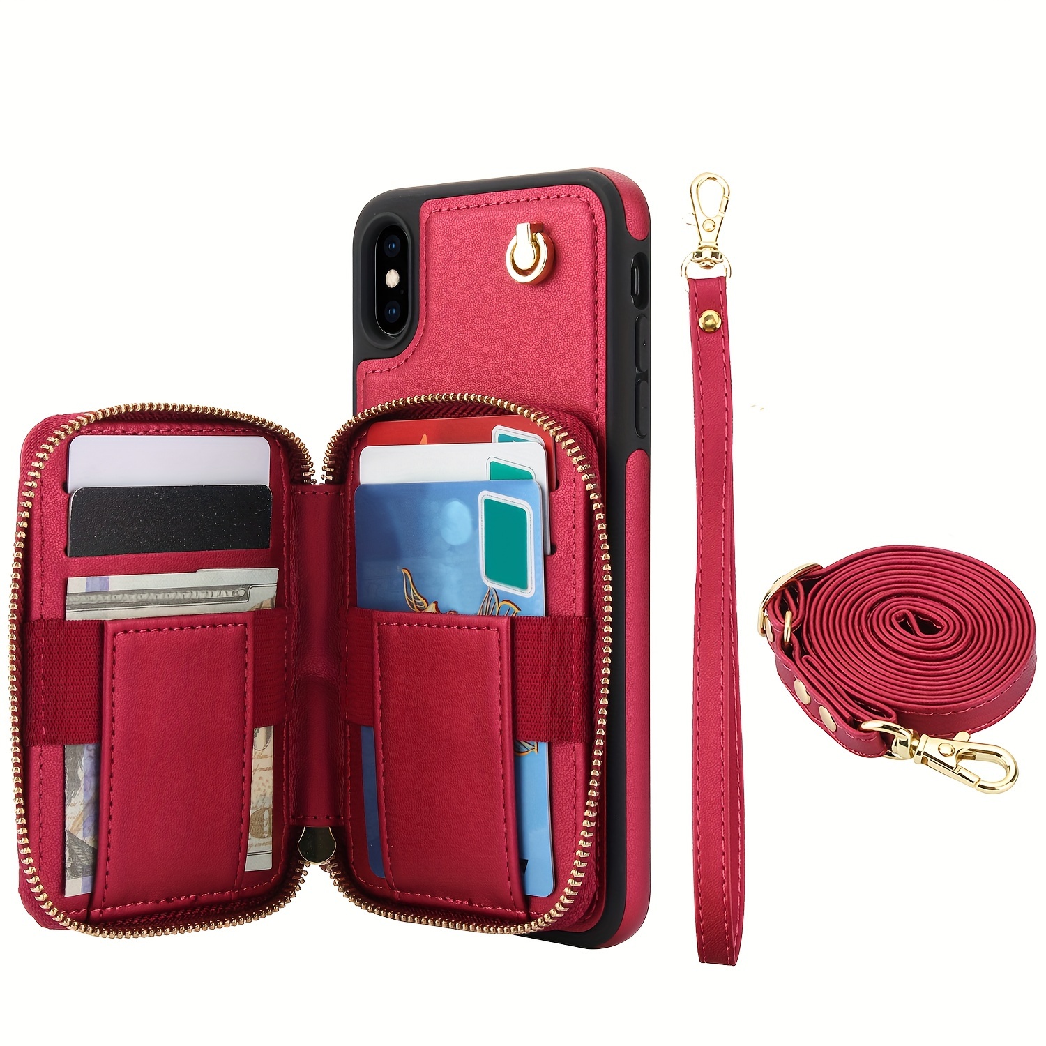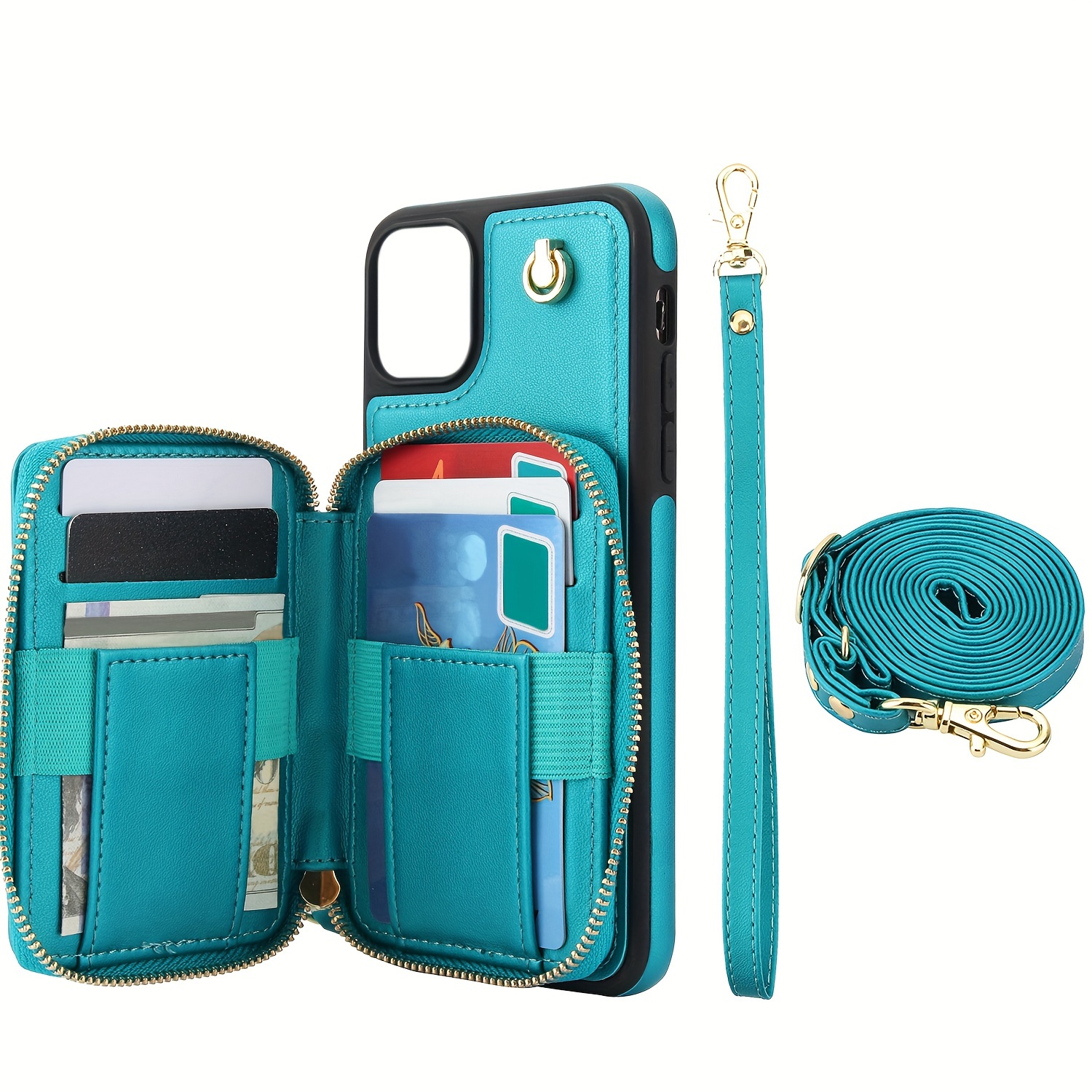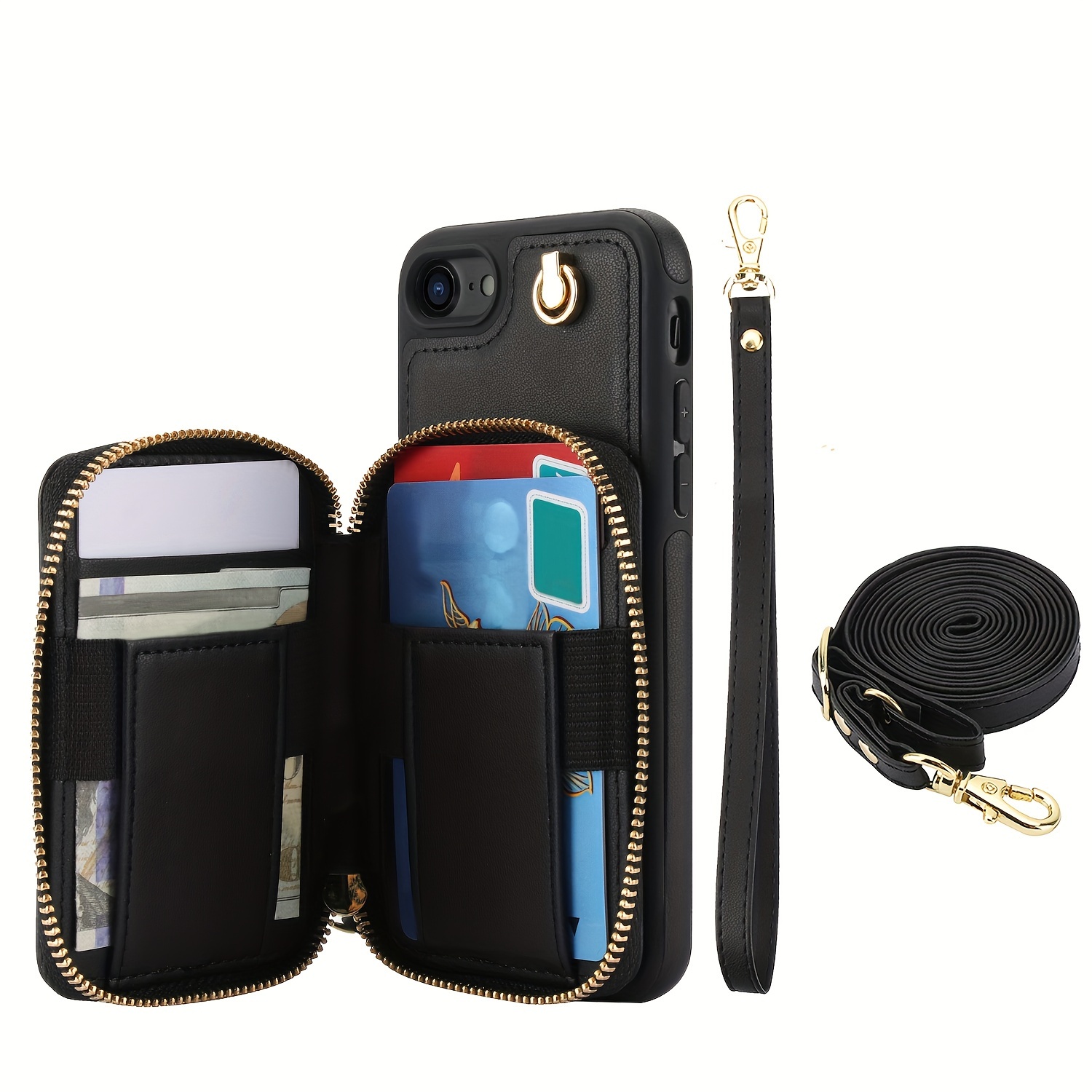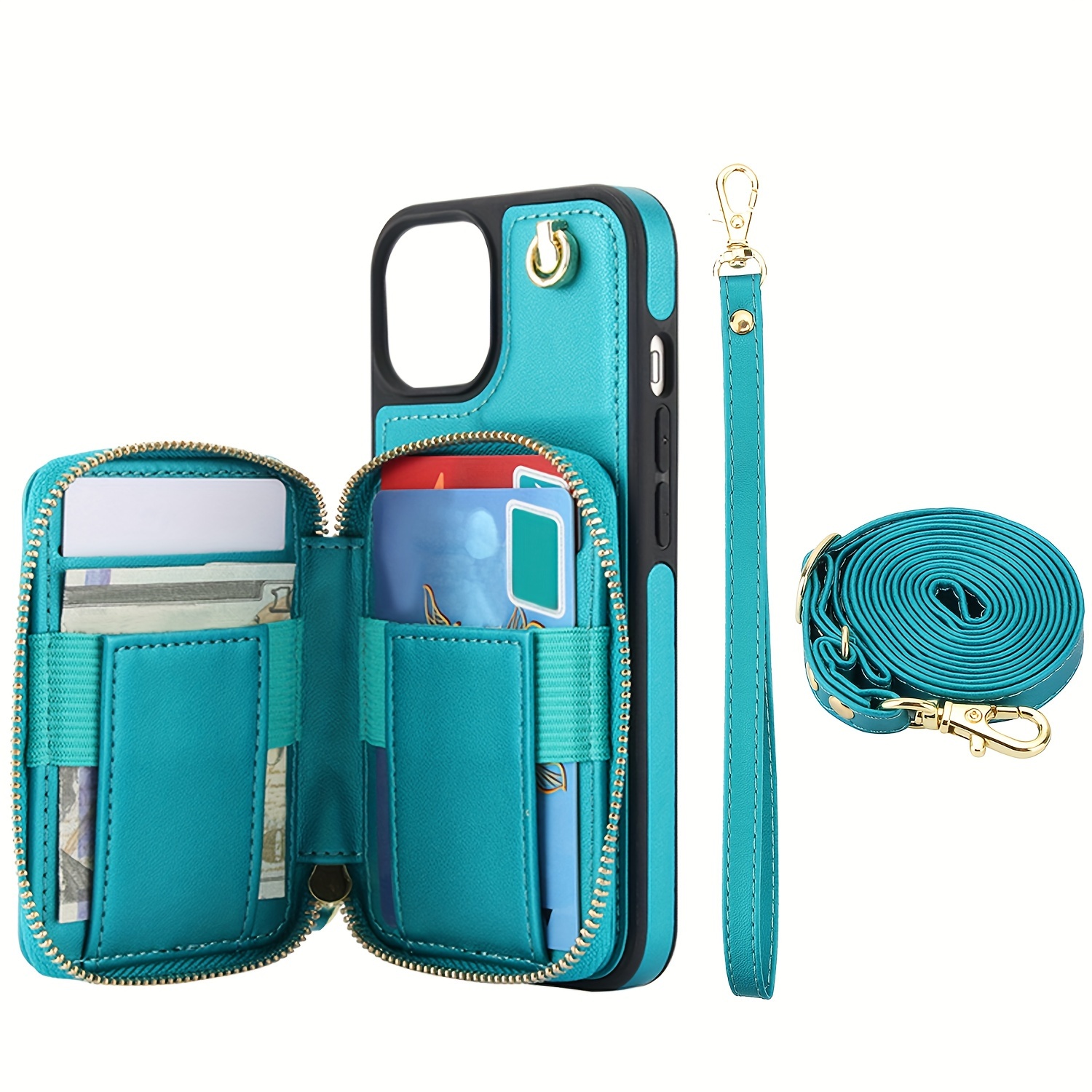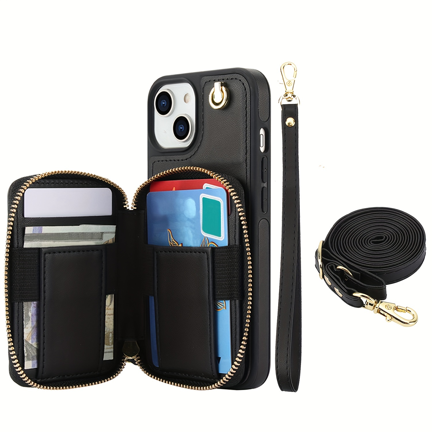 AWQUER Crossbody Faux Leather Case for iPhone Models 16E, 16, 15, 14, 13, 12, 11 Pro, X, XS Max, XR, 8, 7 Plus, SE 5G from 2024, 2022, And 2020, Featuring a Wrist Strap, Zipper Wallet, And Card Slot for Both Men And Women.