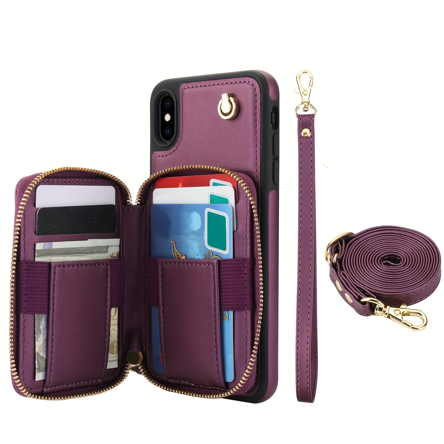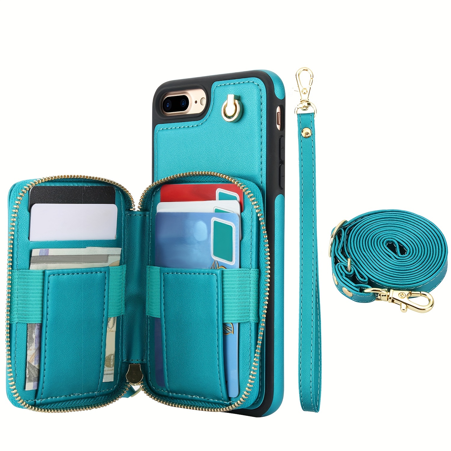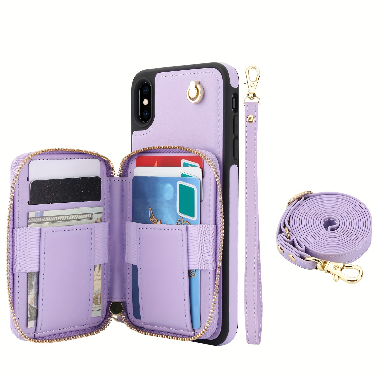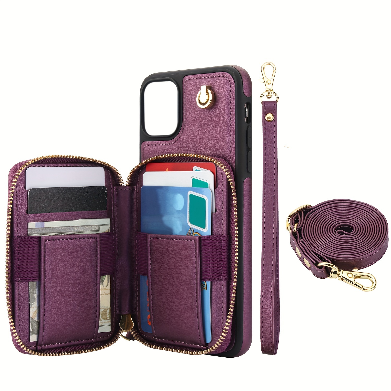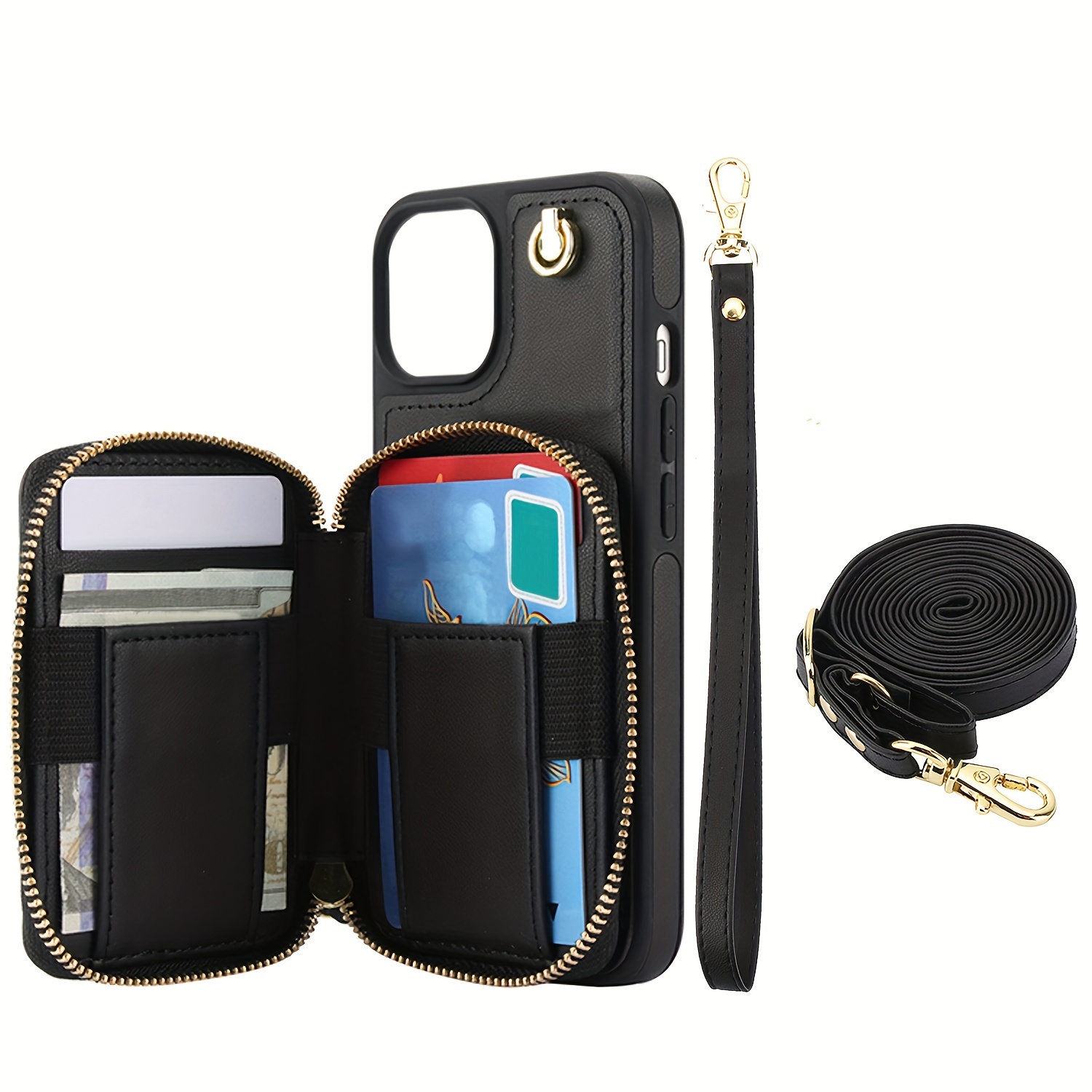 AWQUER Crossbody Faux Leather Case for iPhone Models 16E, 16, 15, 14, 13, 12, 11 Pro, X, XS Max, XR, 8, 7 Plus, SE 5G from 2024, 2022, And 2020, Featuring a Wrist Strap, Zipper Wallet, And Card Slot for Both Men And Women.