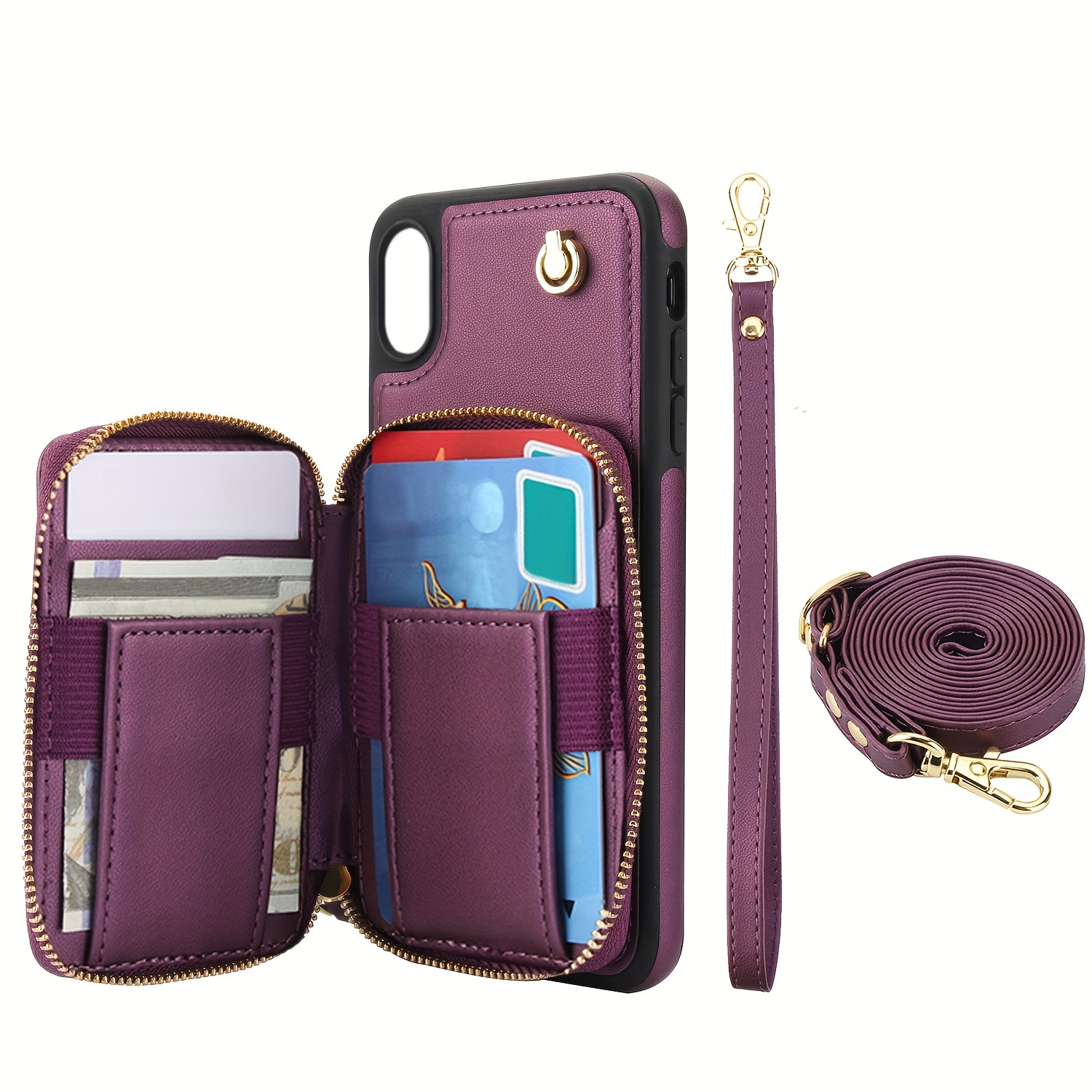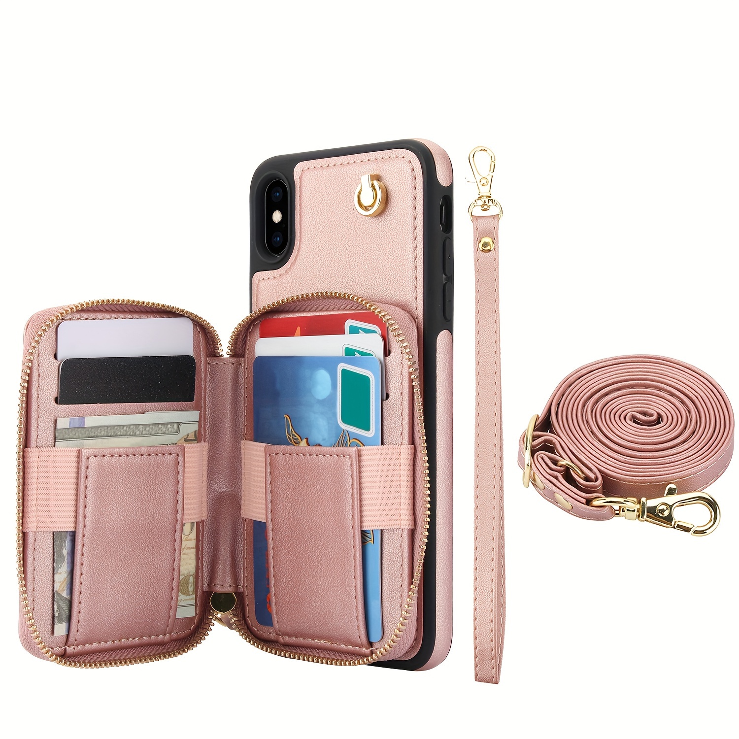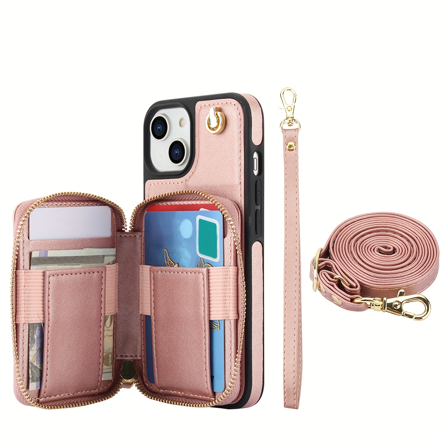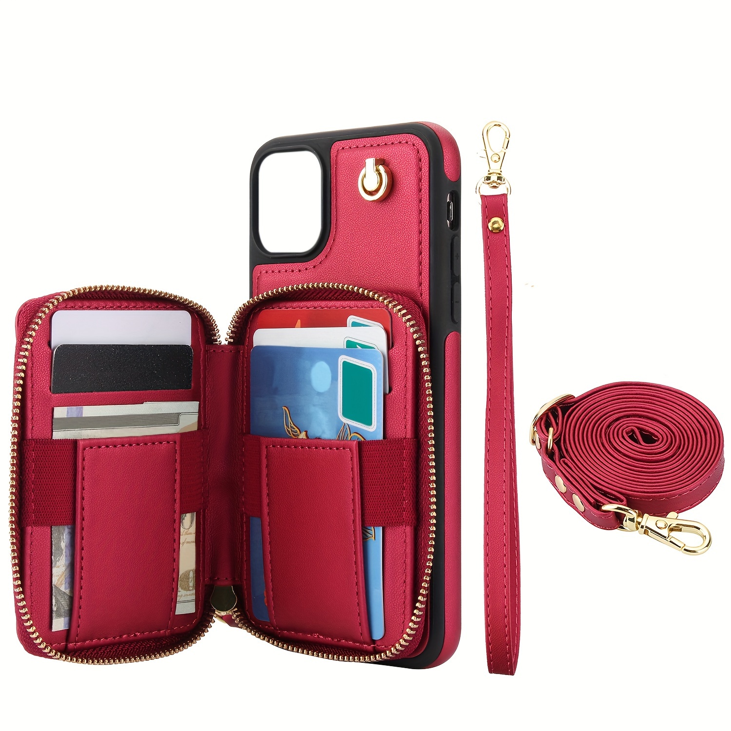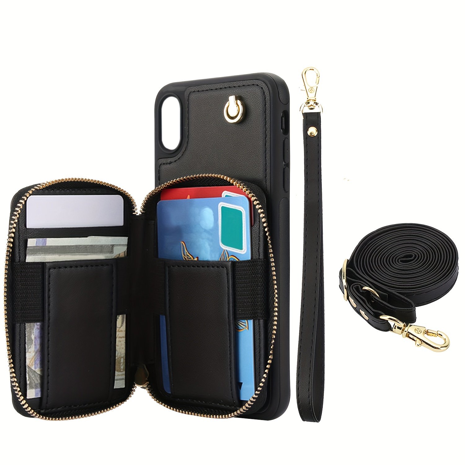 AWQUER Crossbody Faux Leather Case for iPhone Models 16E, 16, 15, 14, 13, 12, 11 Pro, X, XS Max, XR, 8, 7 Plus, SE 5G from 2024, 2022, And 2020, Featuring a Wrist Strap, Zipper Wallet, And Card Slot for Both Men And Women.