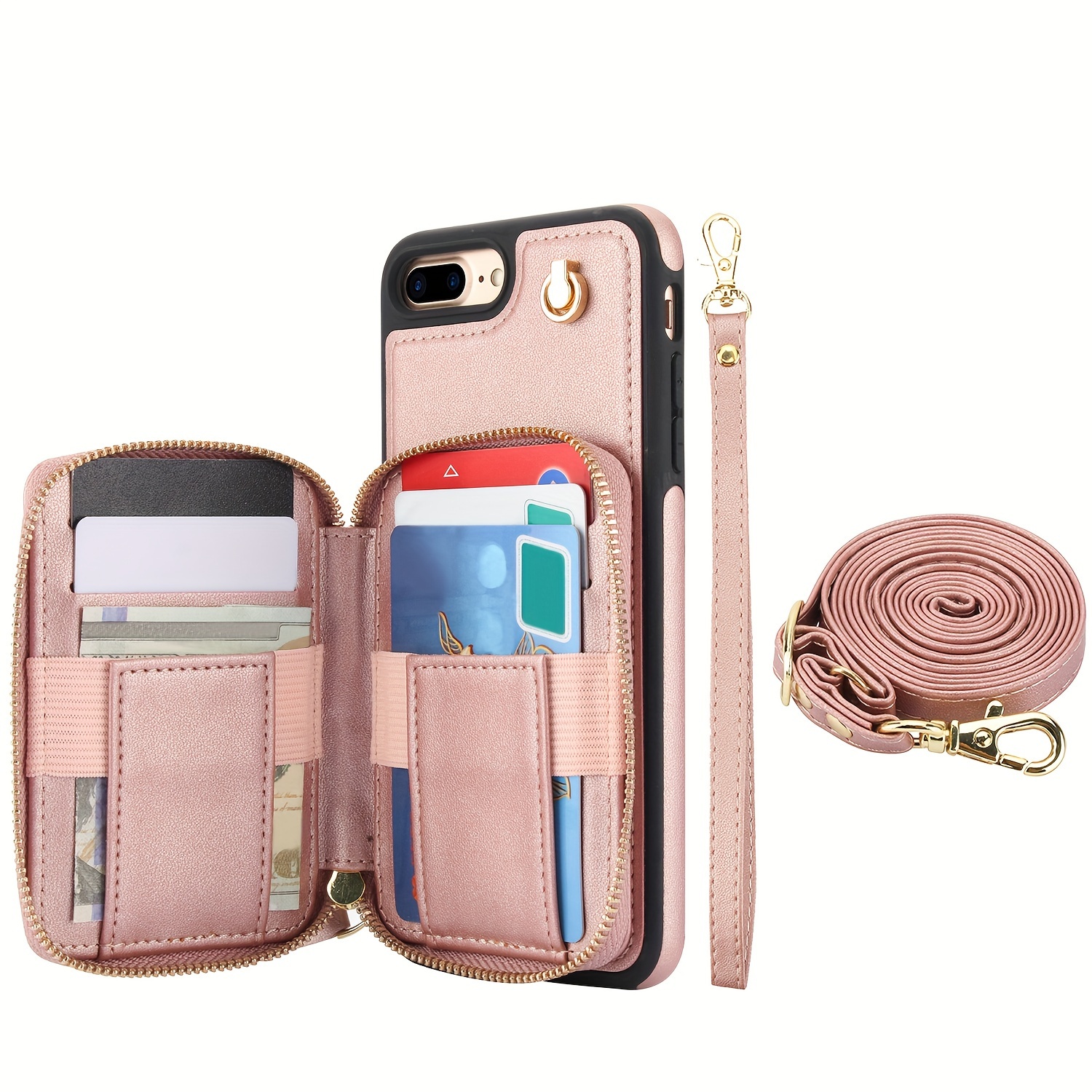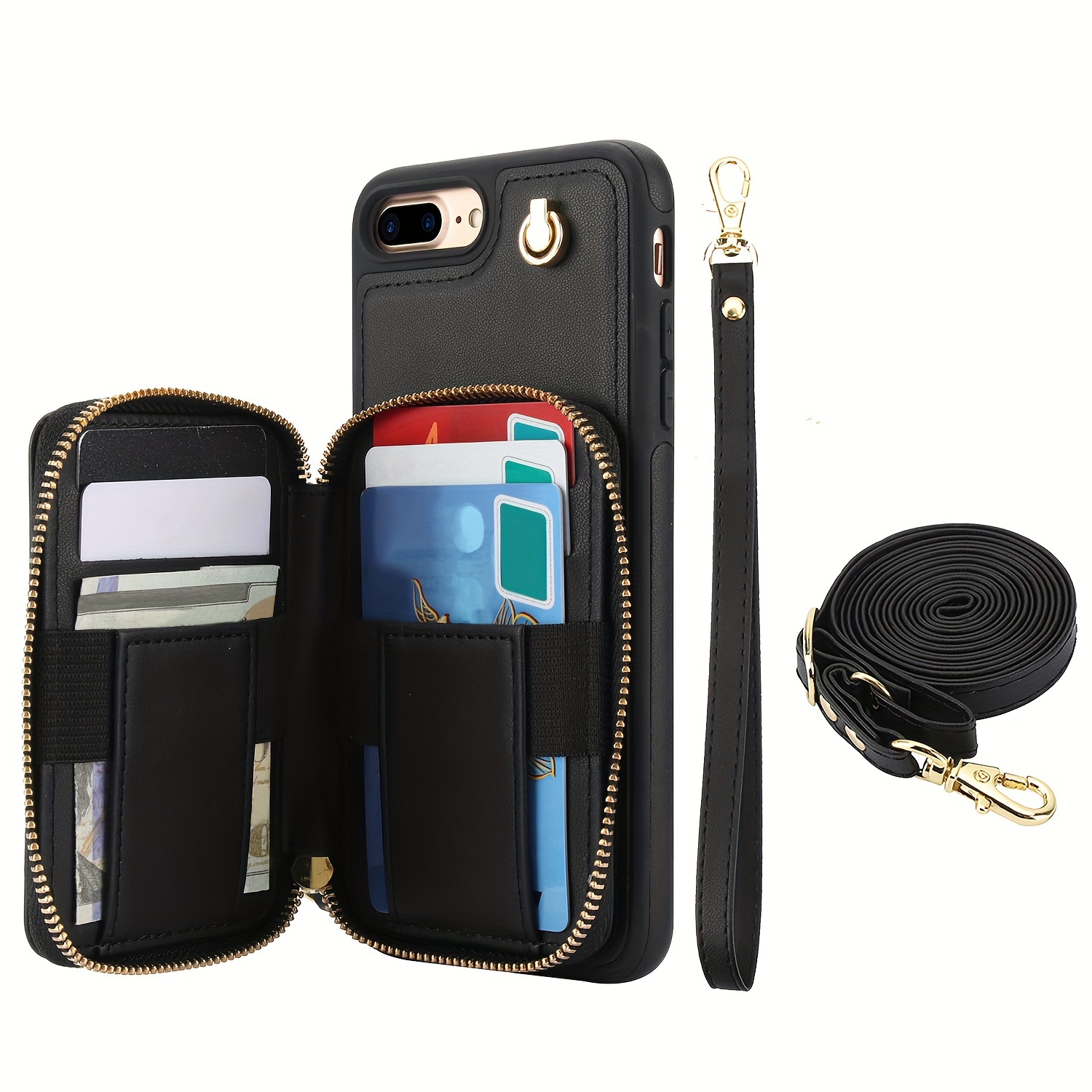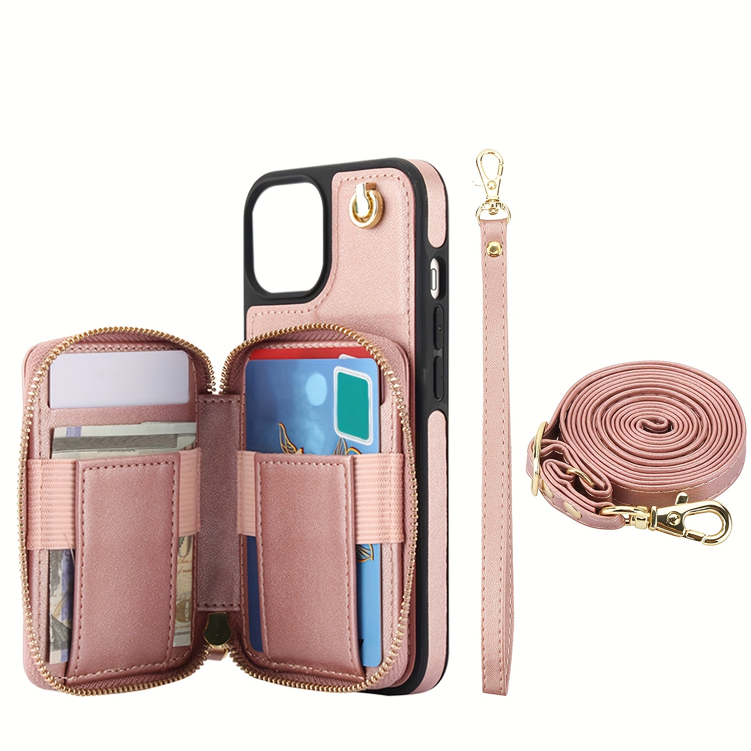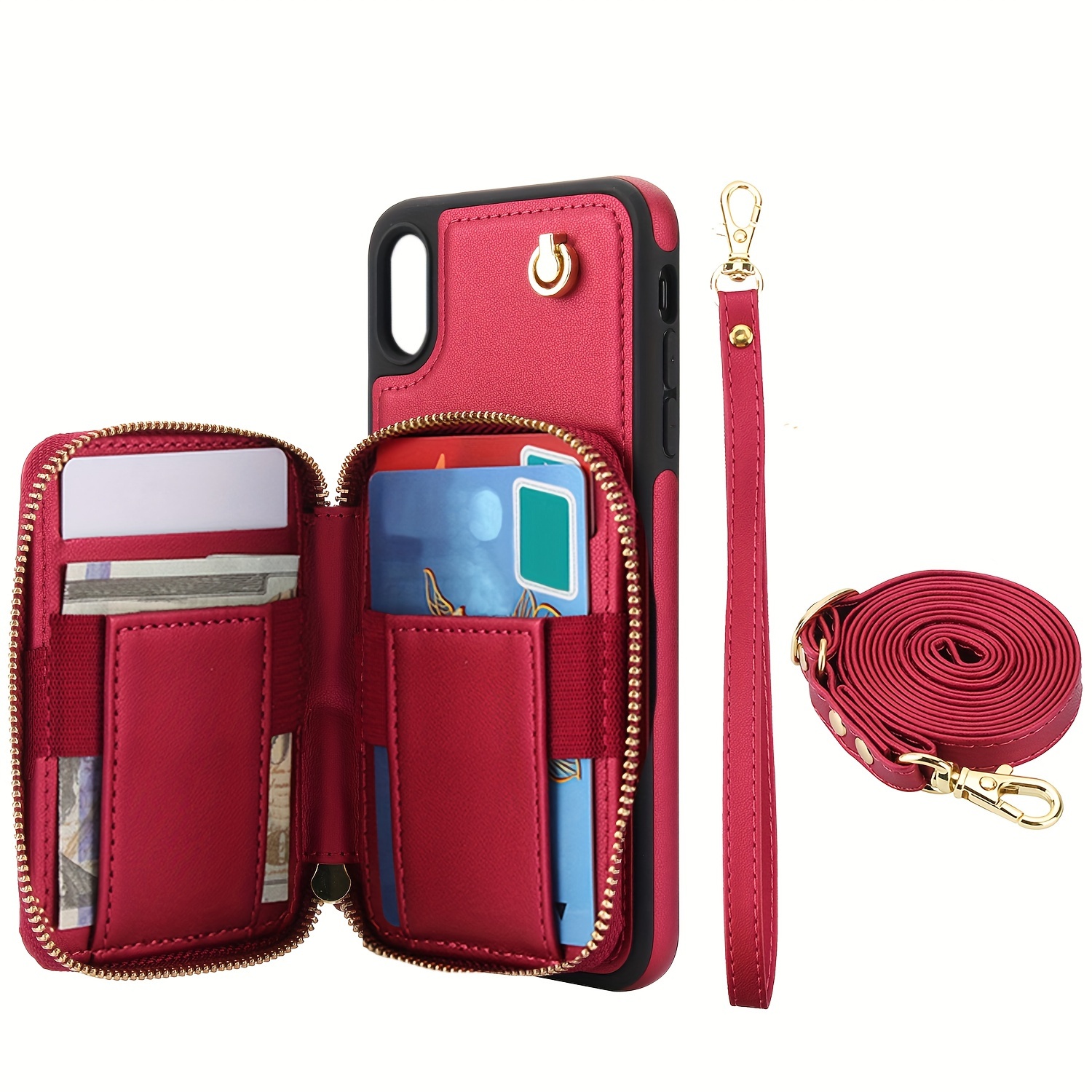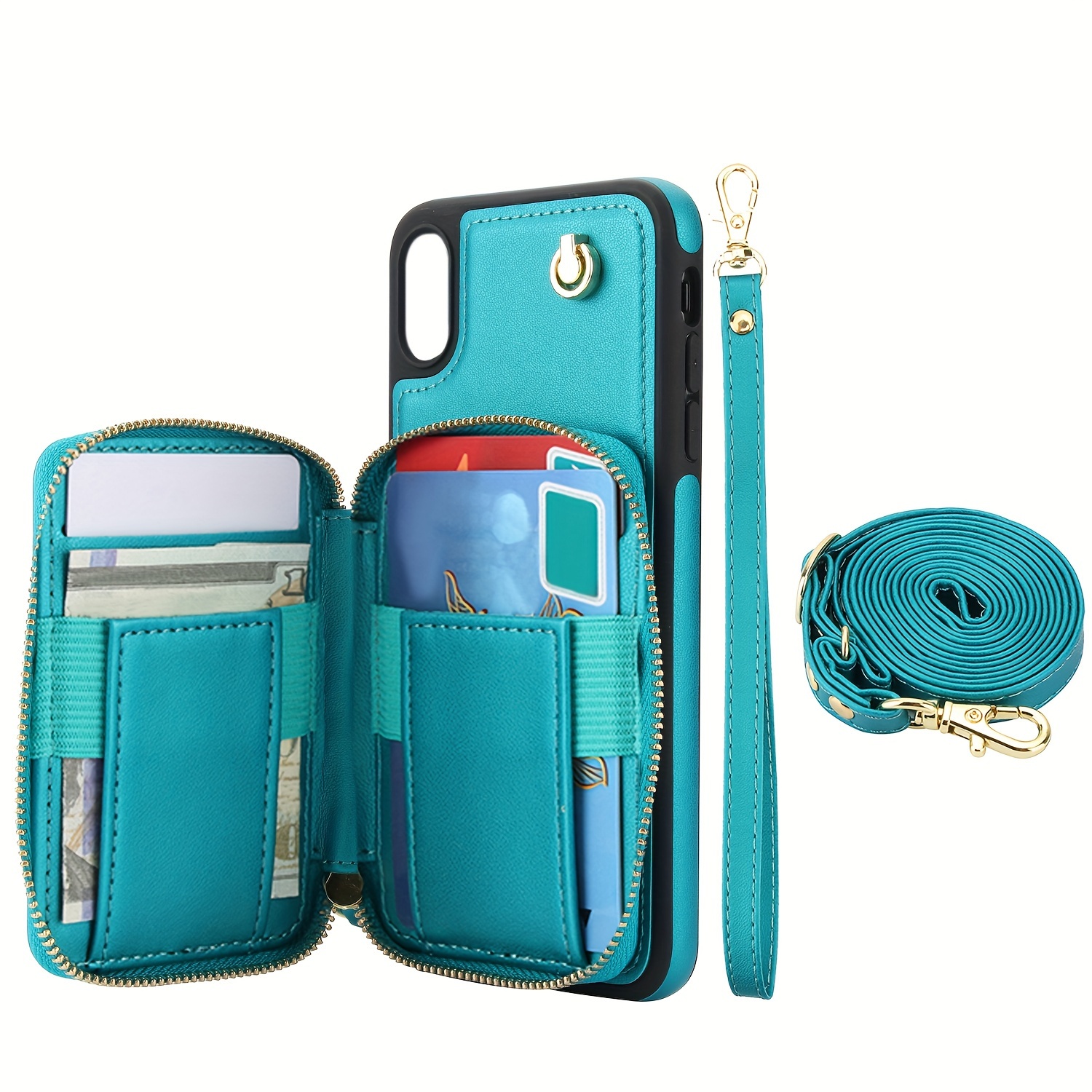 AWQUER Crossbody Faux Leather Case for iPhone Models 16E, 16, 15, 14, 13, 12, 11 Pro, X, XS Max, XR, 8, 7 Plus, SE 5G from 2024, 2022, And 2020, Featuring a Wrist Strap, Zipper Wallet, And Card Slot for Both Men And Women.