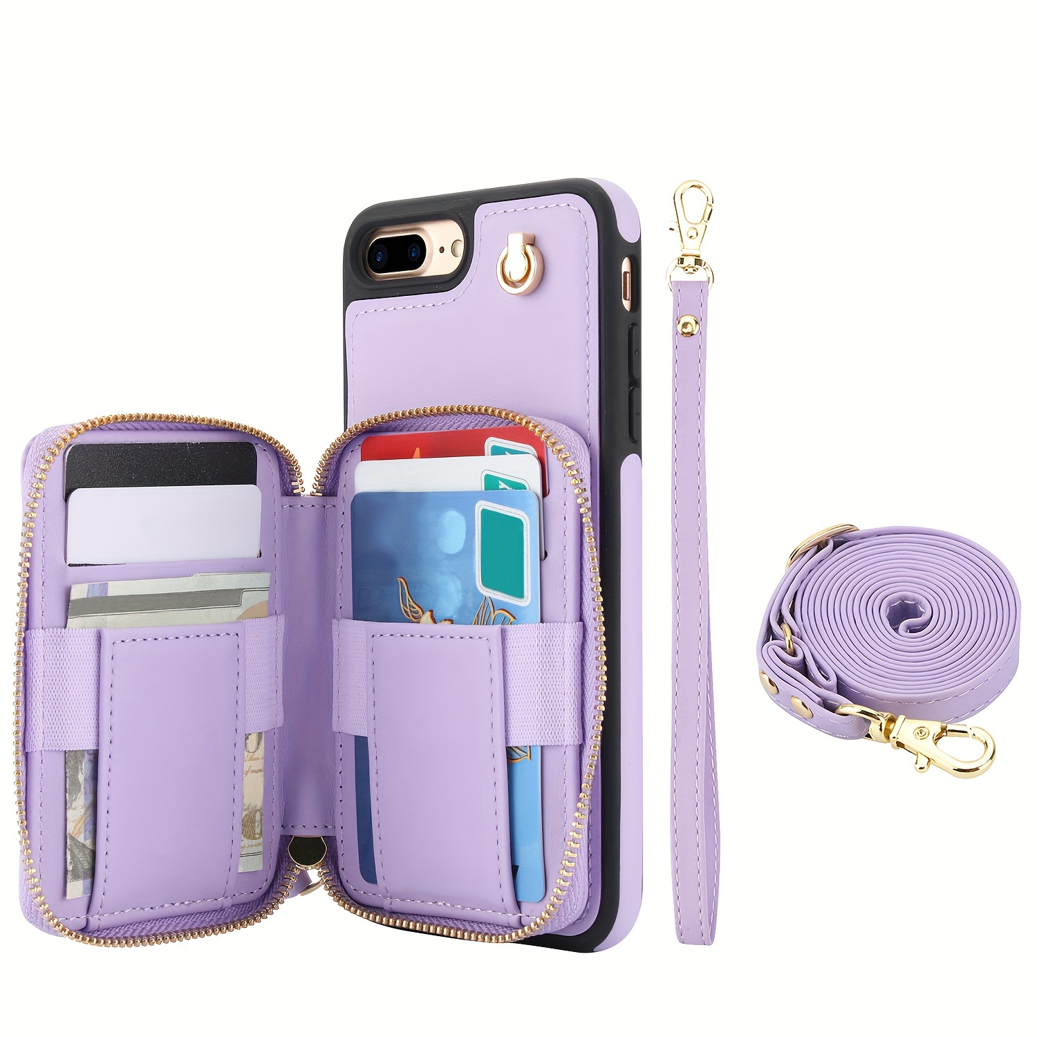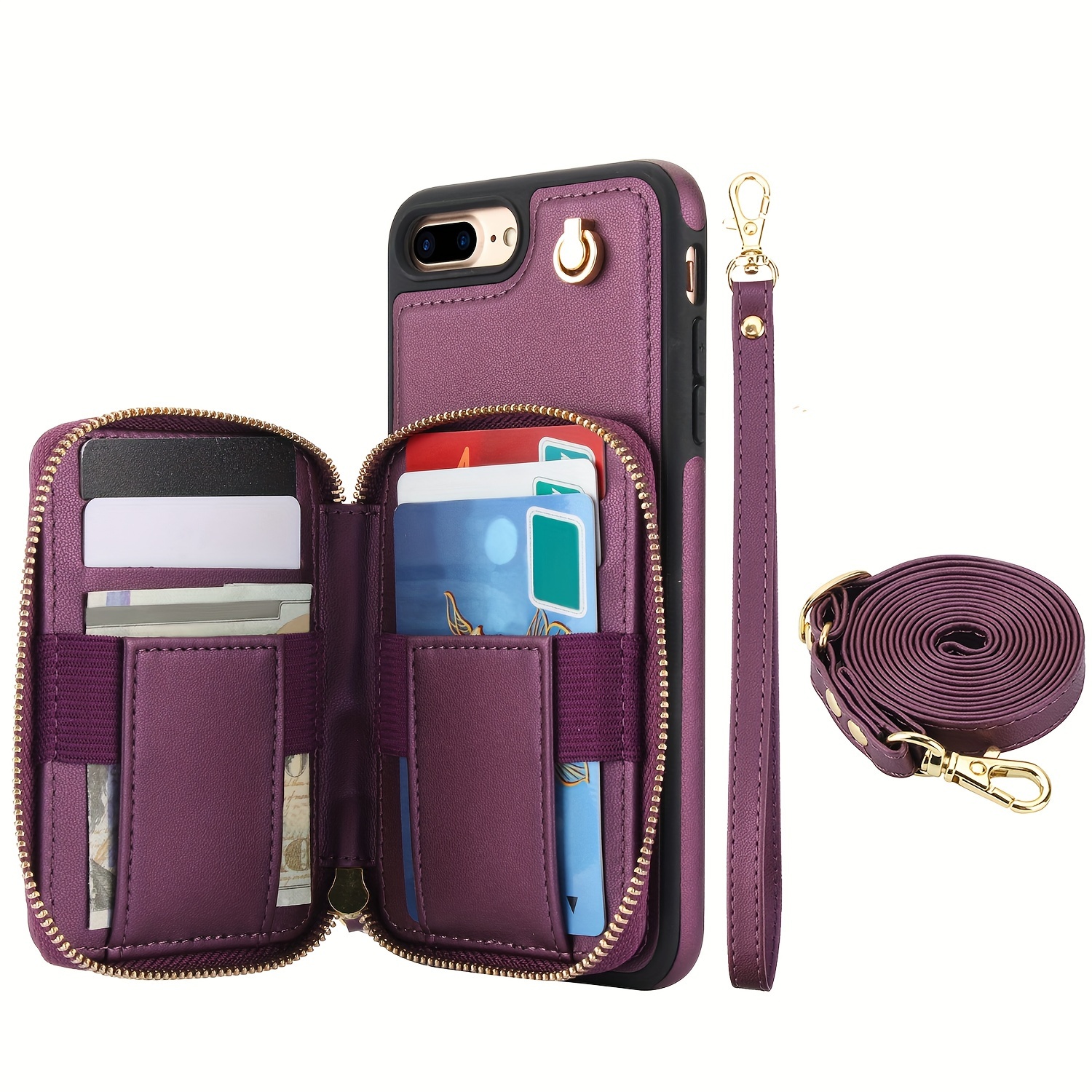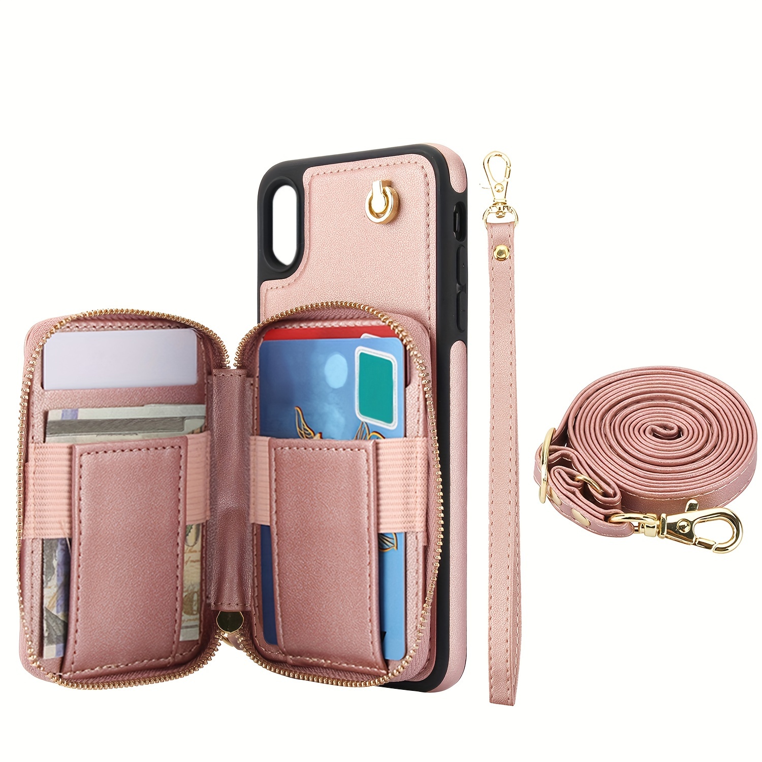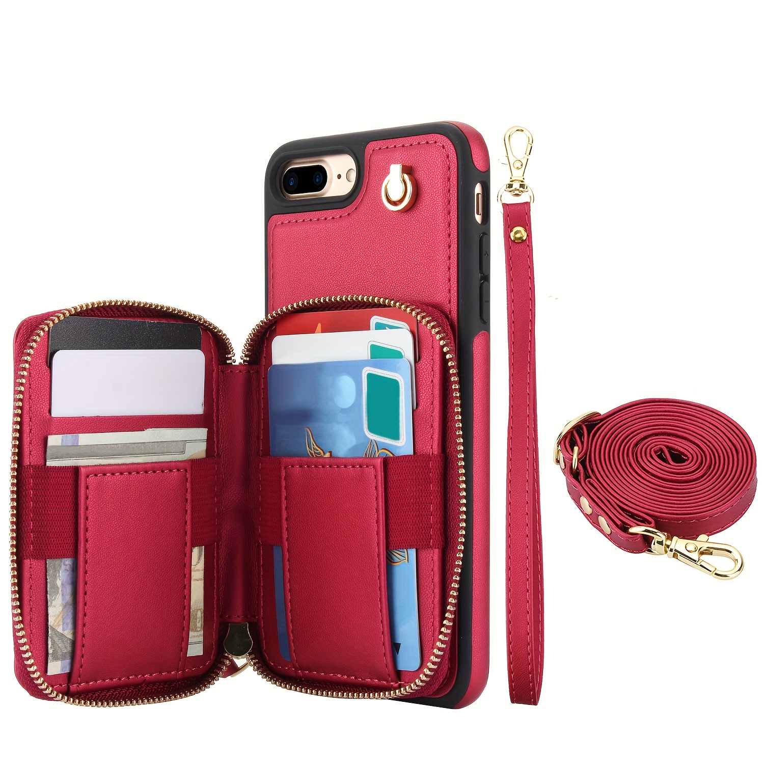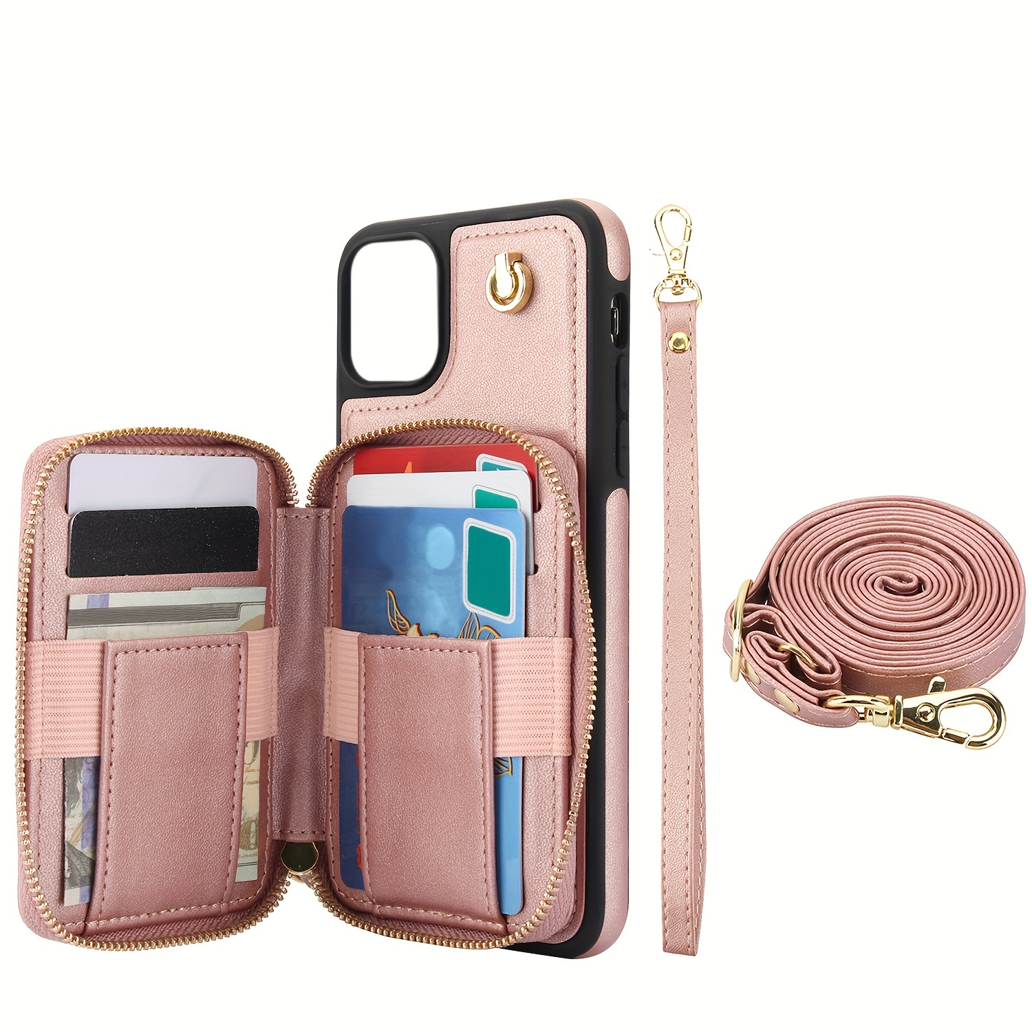 AWQUER Crossbody Faux Leather Case for iPhone Models 16E, 16, 15, 14, 13, 12, 11 Pro, X, XS Max, XR, 8, 7 Plus, SE 5G from 2024, 2022, And 2020, Featuring a Wrist Strap, Zipper Wallet, And Card Slot for Both Men And Women.