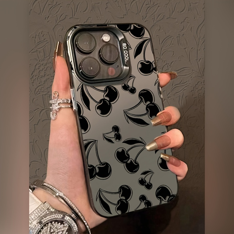 Black Cherry Pattern Phone Case Compatible with iPhone 15/15Plus/15Pro/15ProMax, 14/14Plus/14Pro/14ProMax, 13/13Pro/13ProMax, 12/12Pro/12ProMax, 11/11/11Pro Max/7/8/X/XS- Dirt-Resistant, Fashionable, Trendy