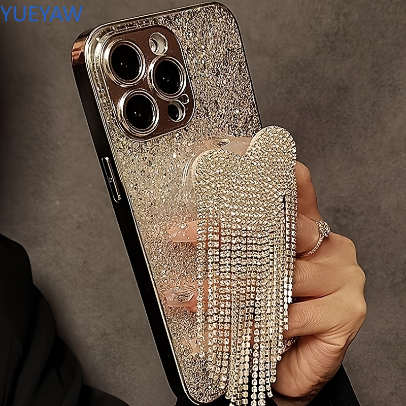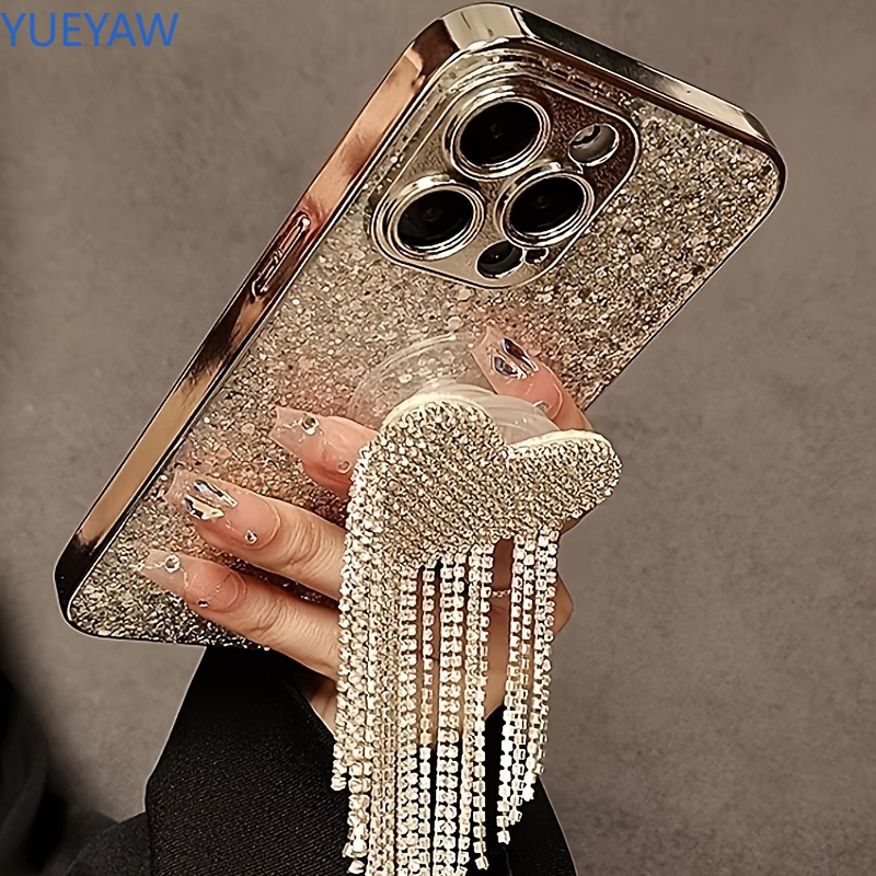 for 15promax Apple iPhone14 high-end niche 13 luxury rhinestone love tassel holder 12 Silvery plated sequin 14promax/15promax/16promax/13promax/11/12promax/13/14/14pro/15pro/15plus cases