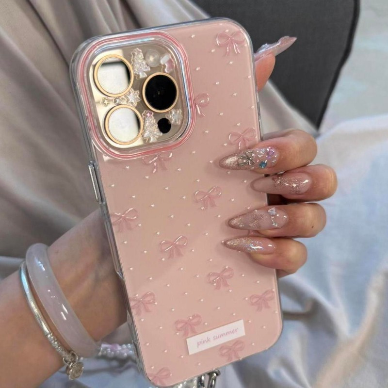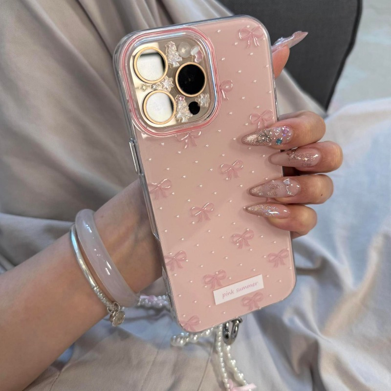 Girl’s Foundation Polka Dot Bowknot New Double Layer Suitable for iPhone 14/15 Case 11 12 12pro 12pm 13 13P 13promax 14 14pro 14promax 14plus 15 15pro 15plus 15pm 16 16pro 16plus 16promax Phone Cover