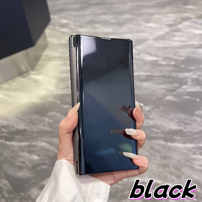 High Quality Luxury Mirror Flip Phone Case for lphone 16 Pro Max 16 Pro 16 Plus 16 15 Pro Max 15 Pro 15 Plus 15 14Pro Max 14Pro 14 Plus 14 13Pro Max 13Pro 13 Black And Golden Featuring A Flip Cover And A Comprehensive Protecion holder Phone Cover