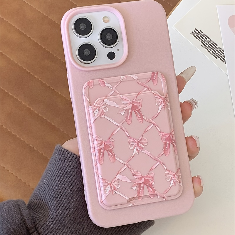 Liquid Large Pore Pink + Card Holder Pink Phone Case for Iphone 16 Pro Max, Anti-Drop, Minimalist Pink Heart Design for Models 11/13/12, Frosted