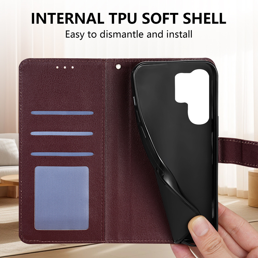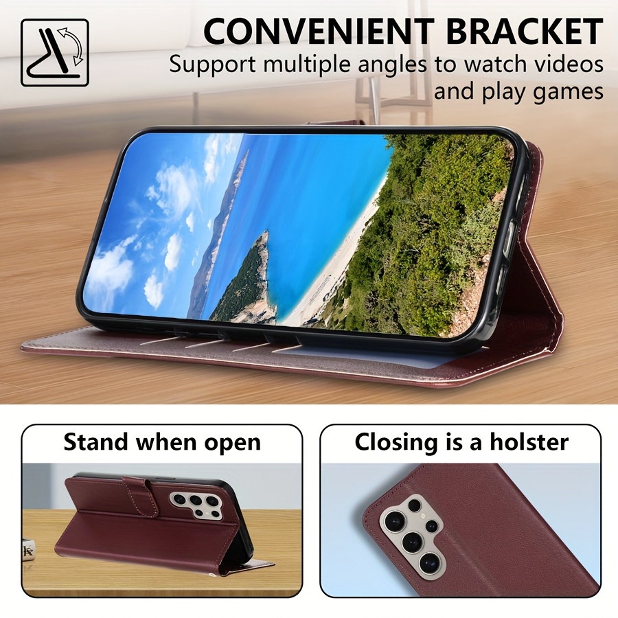 Magnetic Flip Case Made of Synthetic Faux Leather for Samsung Galaxy Models, Featuring a Card Slot And Kickstand, Designed to Protect Against