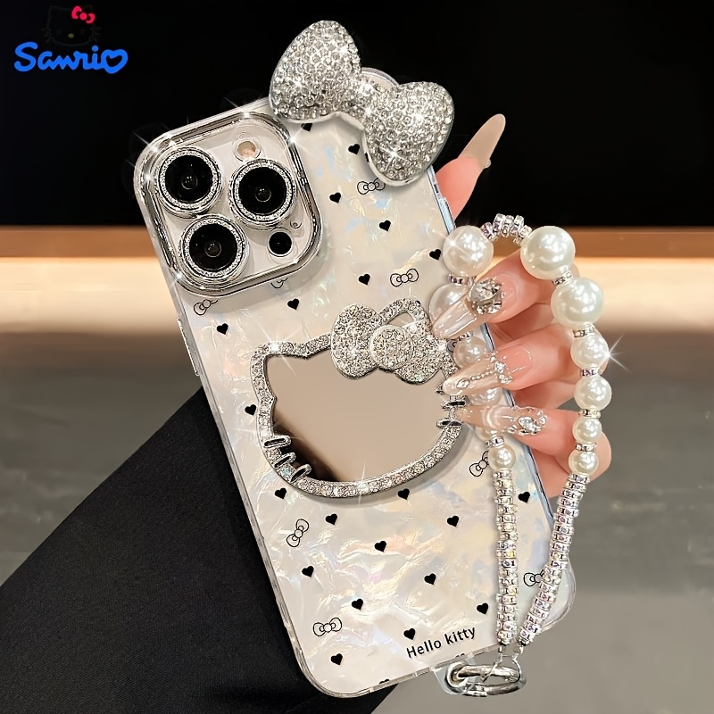 New Love KT Cat Holder Precision Shell Pattern Suitable for iPhone 14/15 Cases, 11, 12, 12 Pro, 12 PM, 13, 13 Pro Max, 14, 14 Pro, 14 Plus, 15, 15 Pro, 15 Plus, 16, 16 Pro, 16 Plus Phone Case