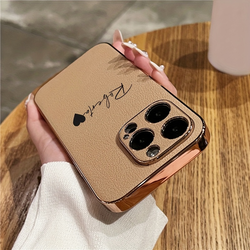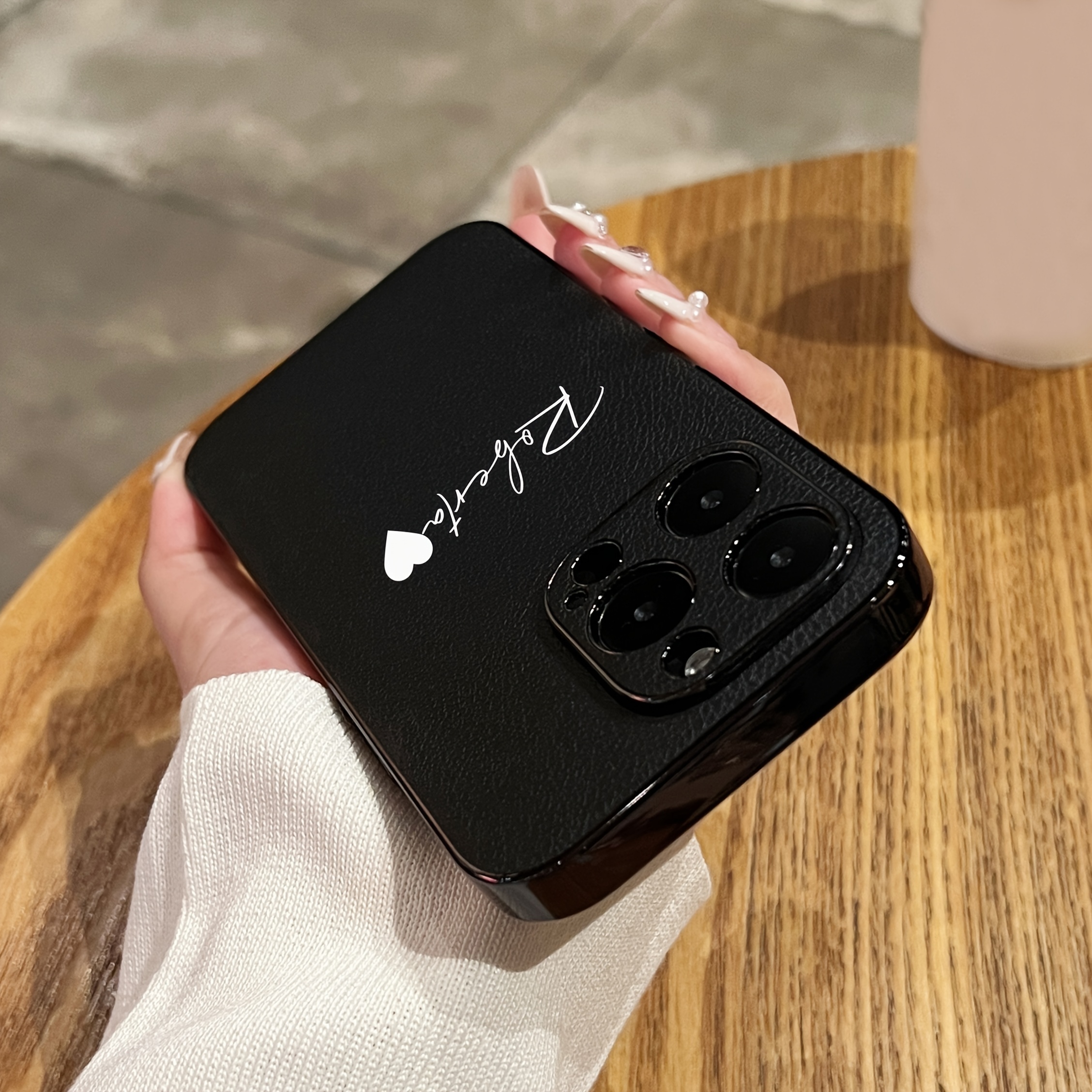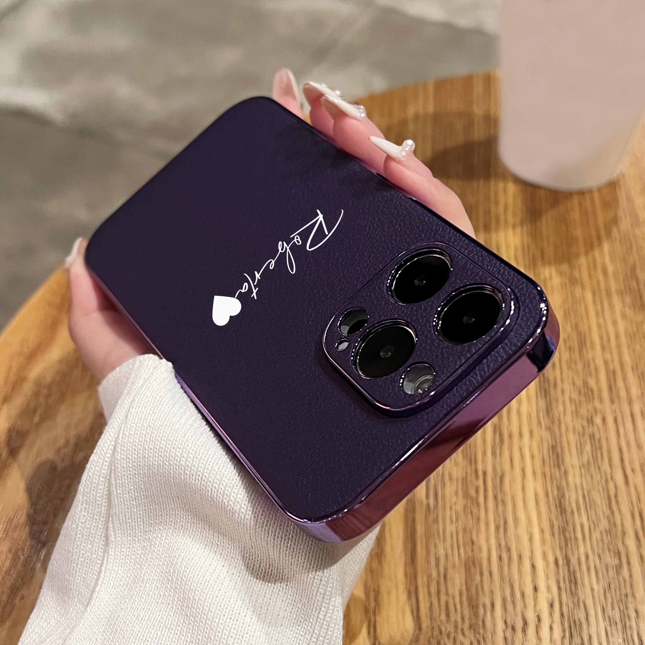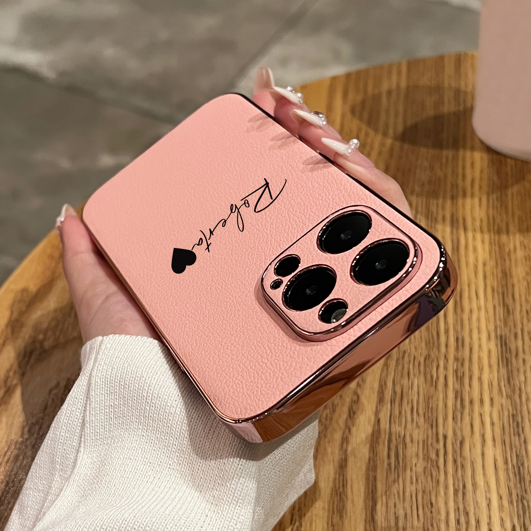 Personalized Customized DIY Name Phone Case Compatible with iPhone 16 15 14 13 12 11 Pro Max Luxury Litchi Faux Leather Plating Bumper Cover 16 15 14 13 12 11 Pro Max