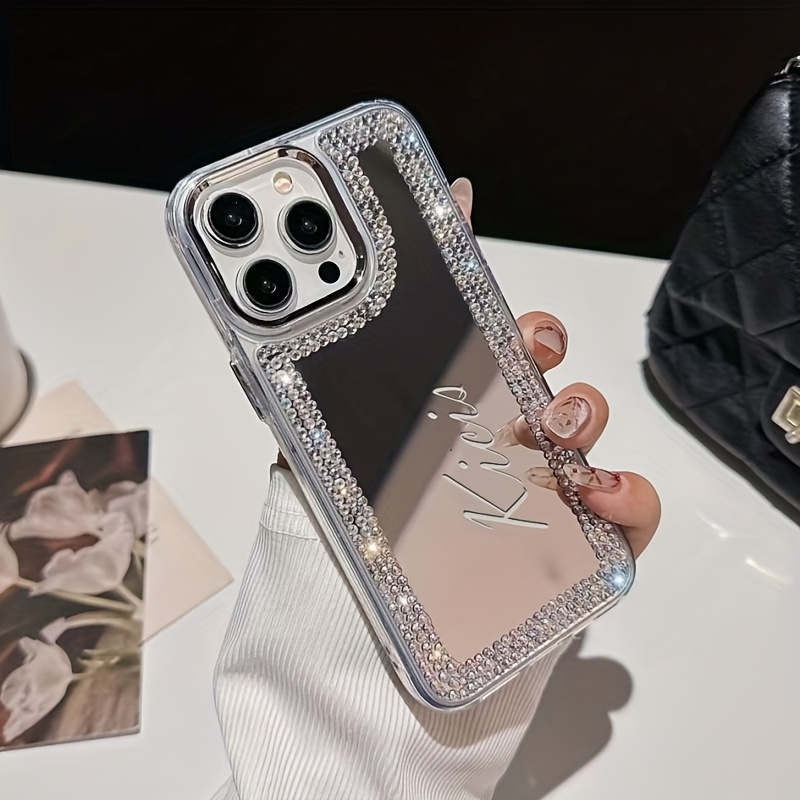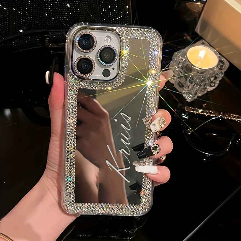 Personalized Luxury Custom Your Name Glitter Rhinestone Make UP Mirror Phone Case For IPhone 16 15 14 13 12 11 Pro Max 16 Plus Shockproof Protective Back Cover