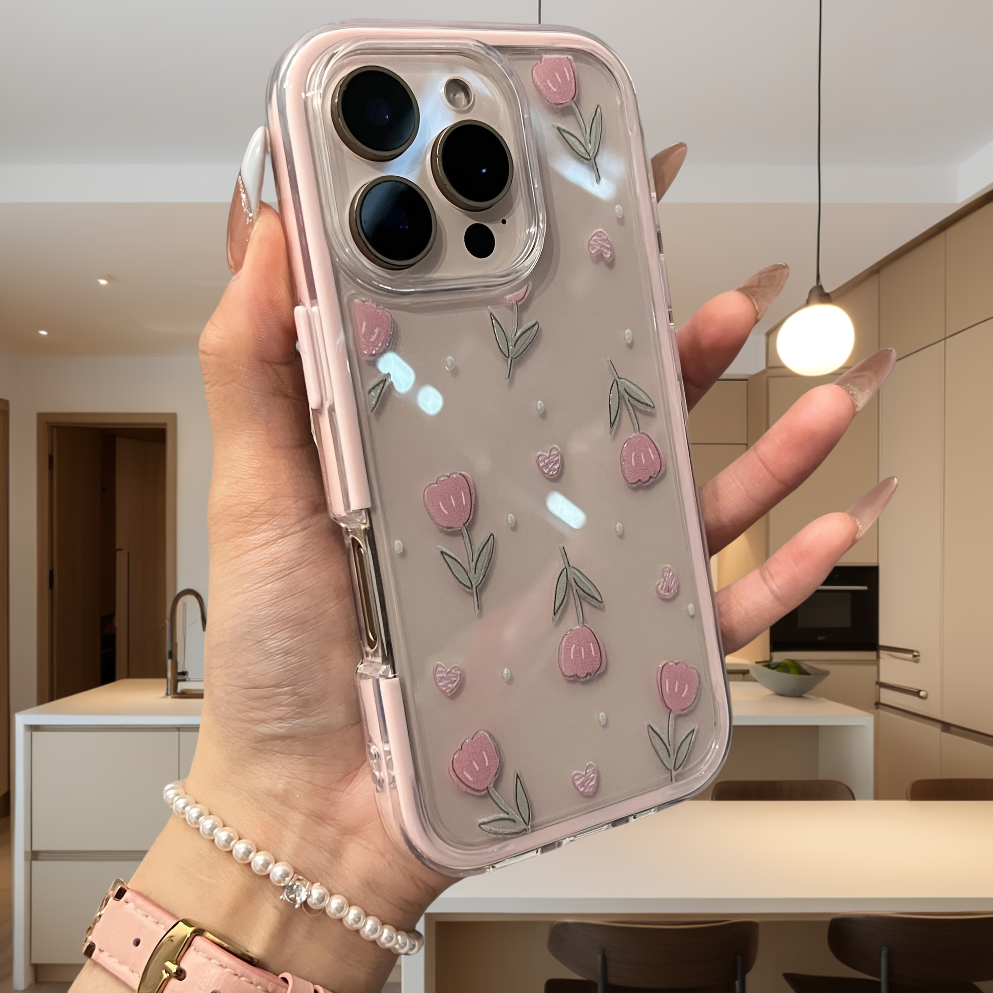 Pink Tulip Colorful Transparent Phone Case, Minimalist Design, Suitable for 16/16 Plus/16 Pro/16 Pro Max/15/15 Plus/15 Pro/15 Pro Max/14/14 Plus/14 Pro/14 Pro Max, 13/13 Pro/13 Pro Max, 12/12 Pro/12 Pro Max, 11/11 Pro Max