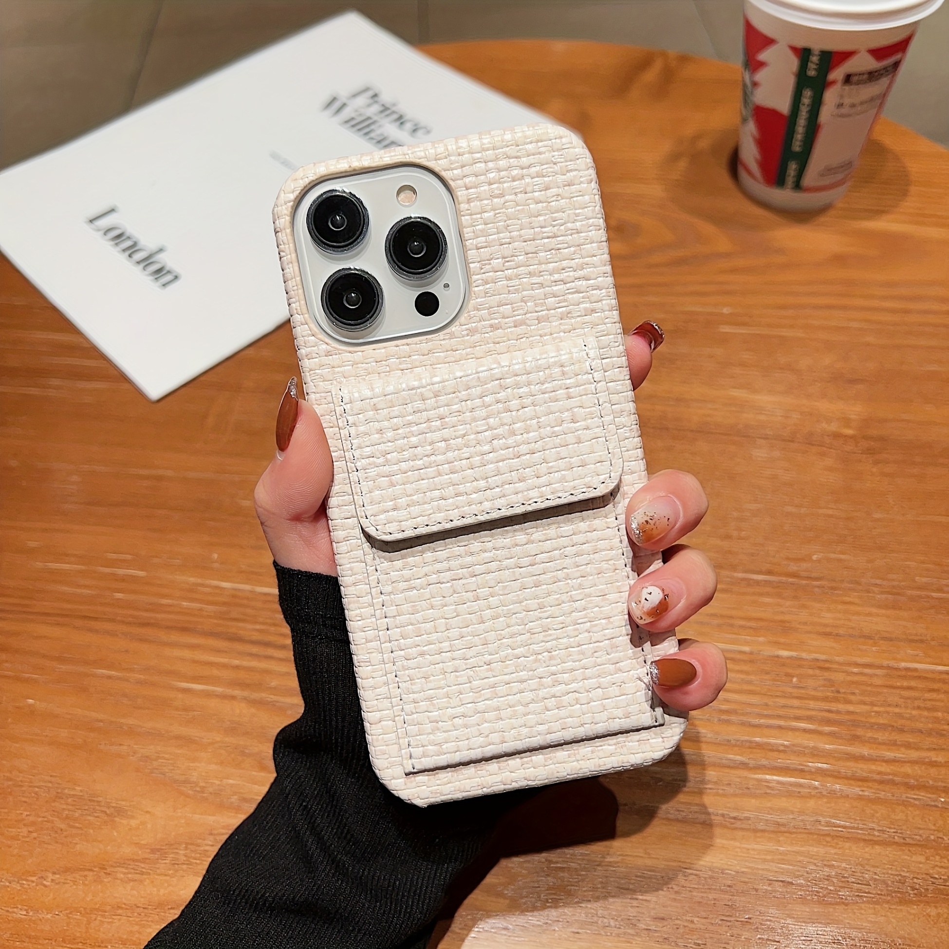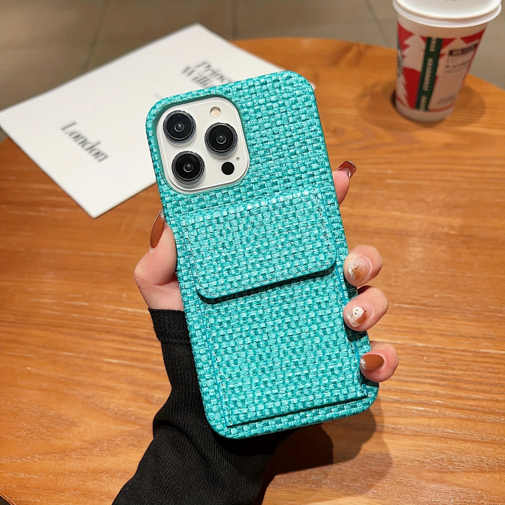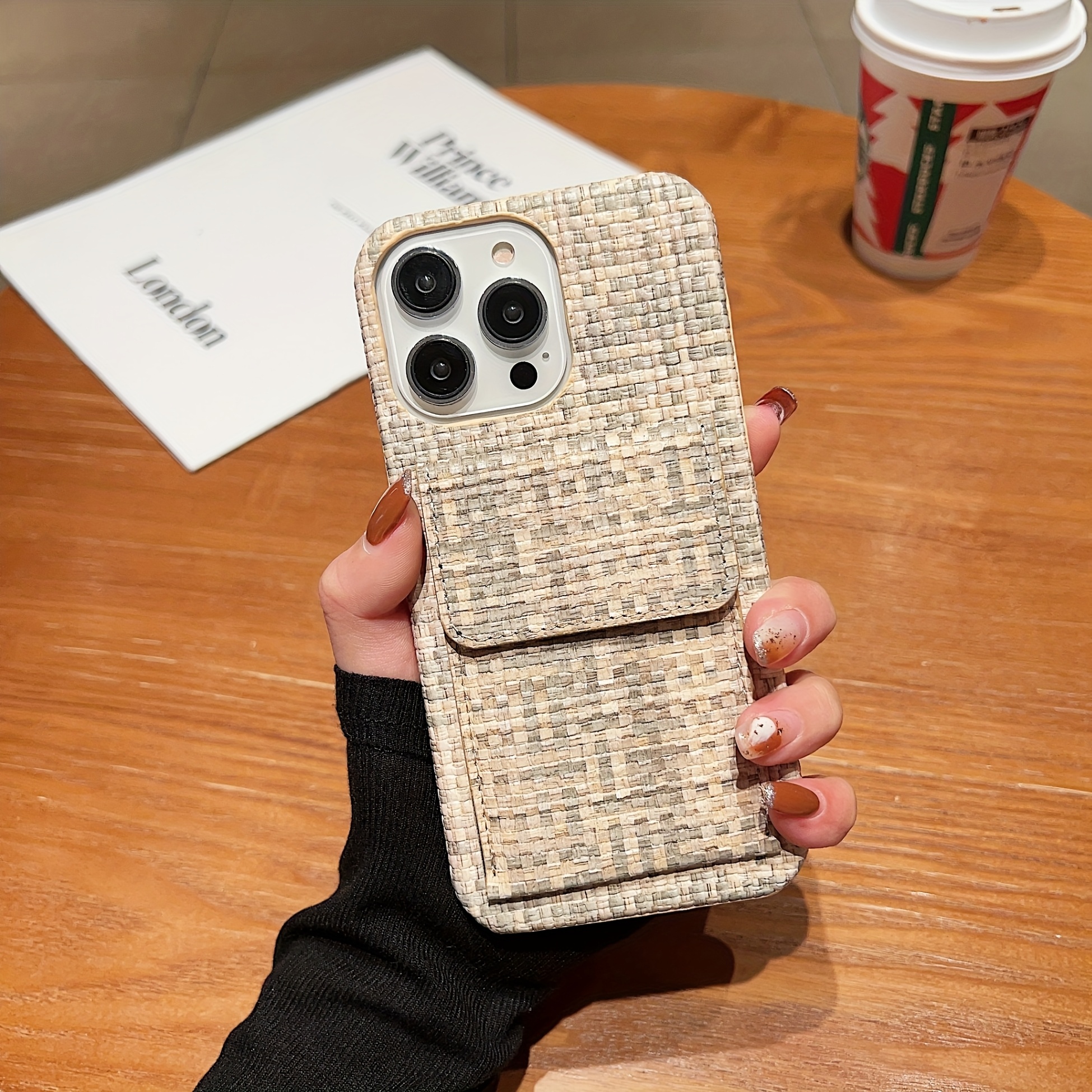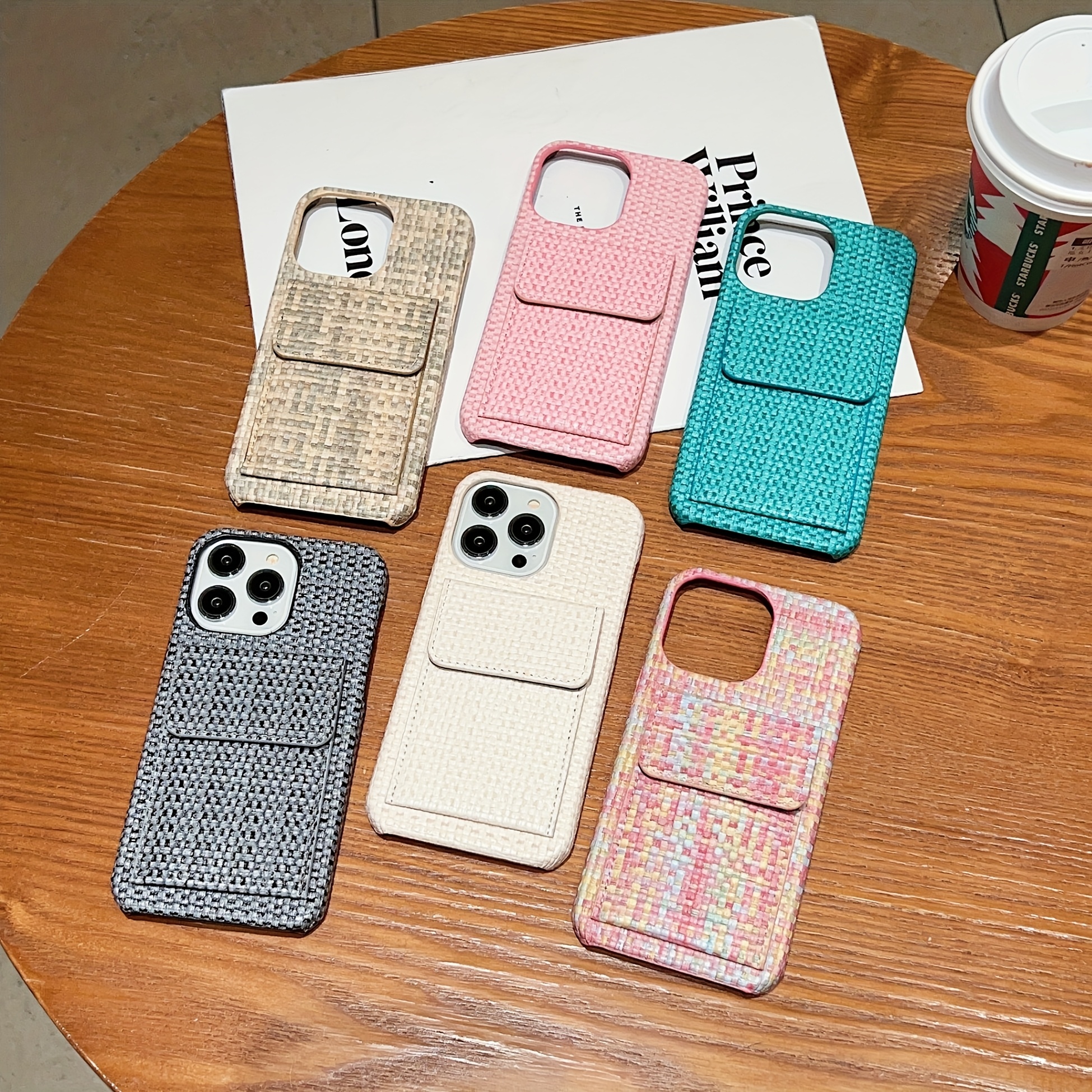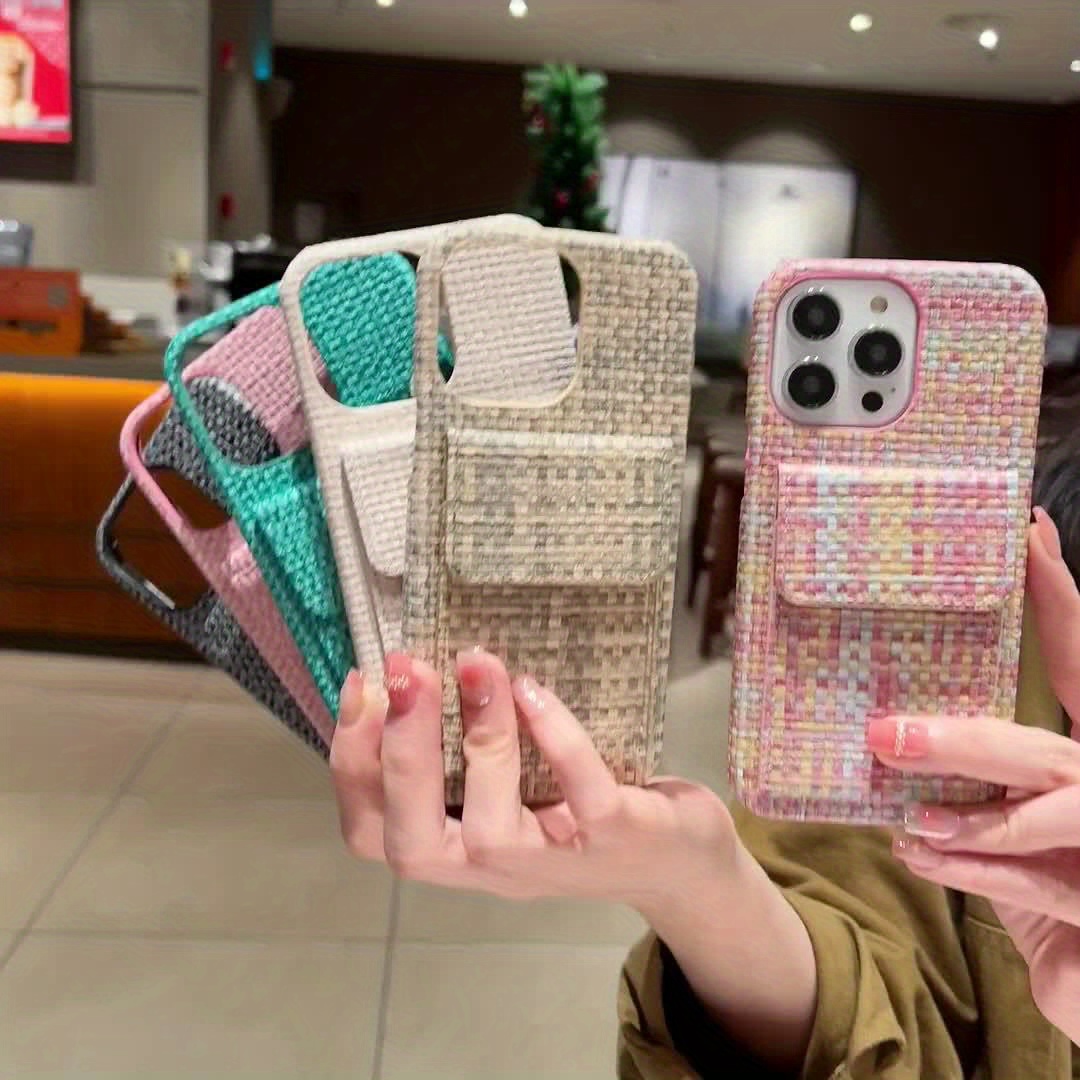 Premium Card Holders Woven Material New Bags Mobile Phone Cases Protective Cases Simple Series For IPhone 16/For IPhone 15Promax/for IPhone16/14 Plus/For IPhone13 Pro Max 12 11 XS, Fashion Style Card Holder Mobile Phone Case Woven Plaid Simple Pattern Anti-drop And Anti-scratch Full Body Protection Mobile Phone Case Suitable As A Holiday Gift For Family, Boyfriend, Girlfriend, Boys, Girls