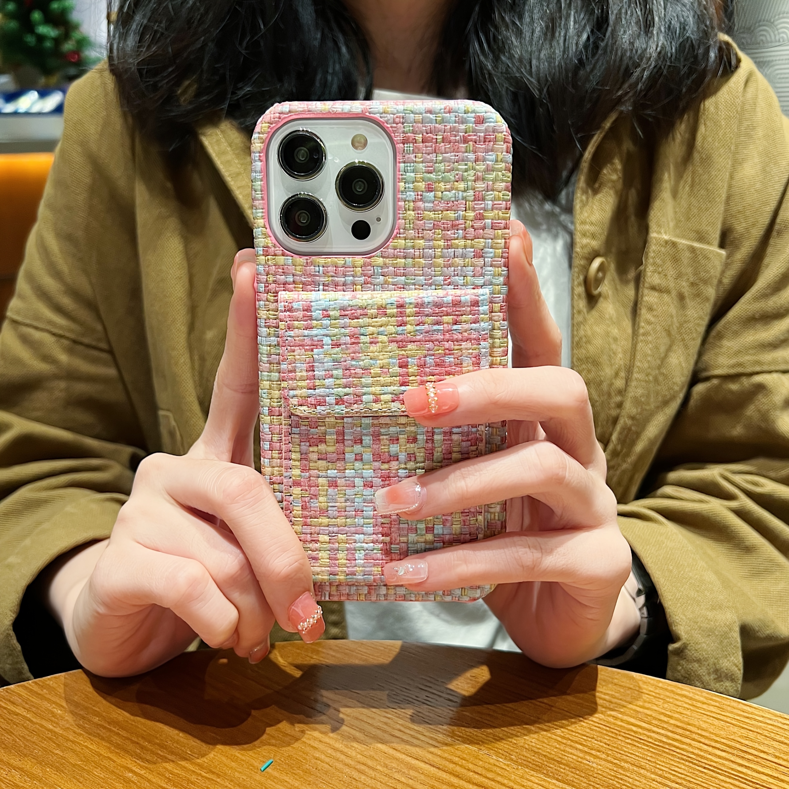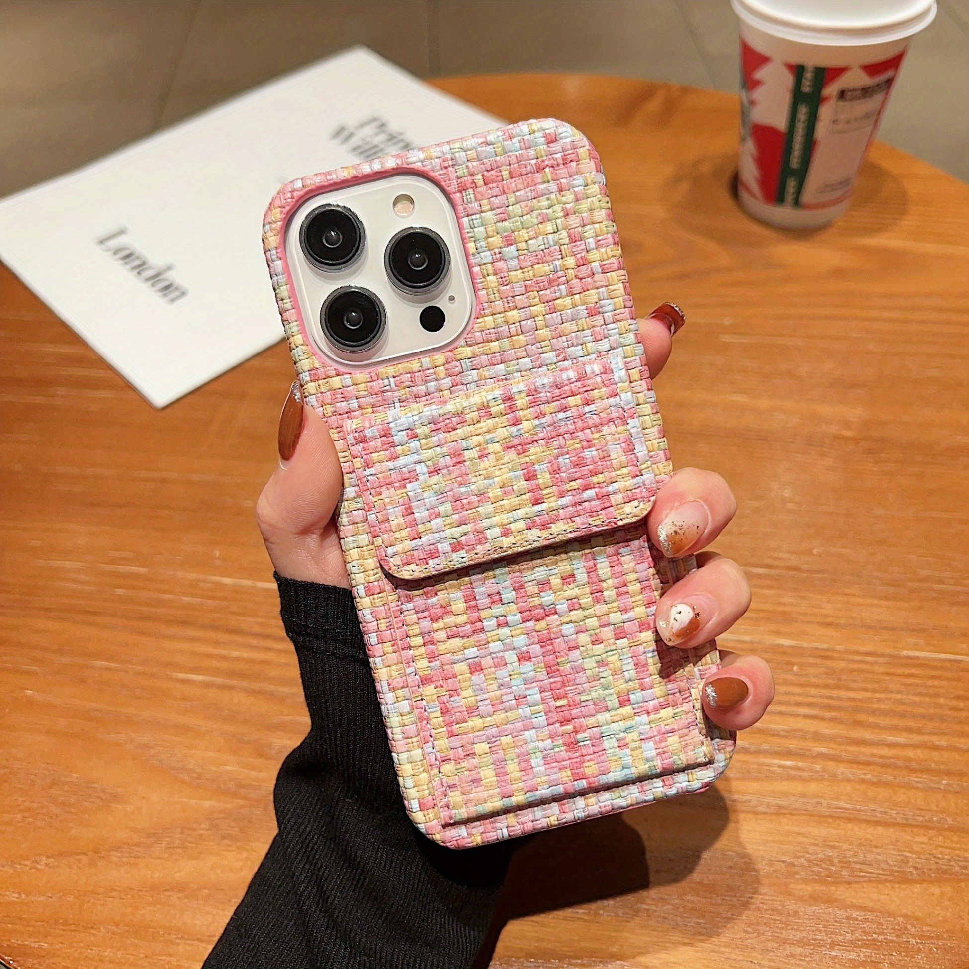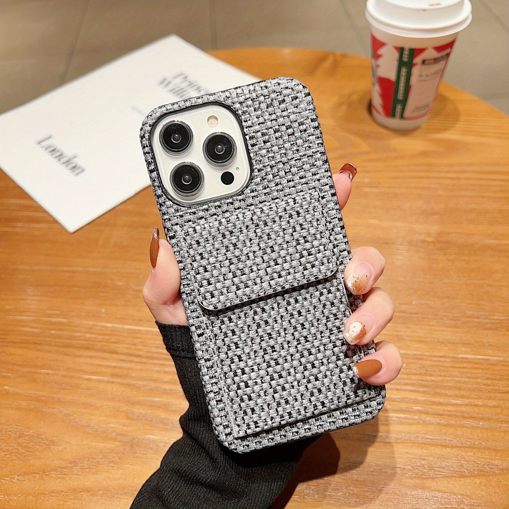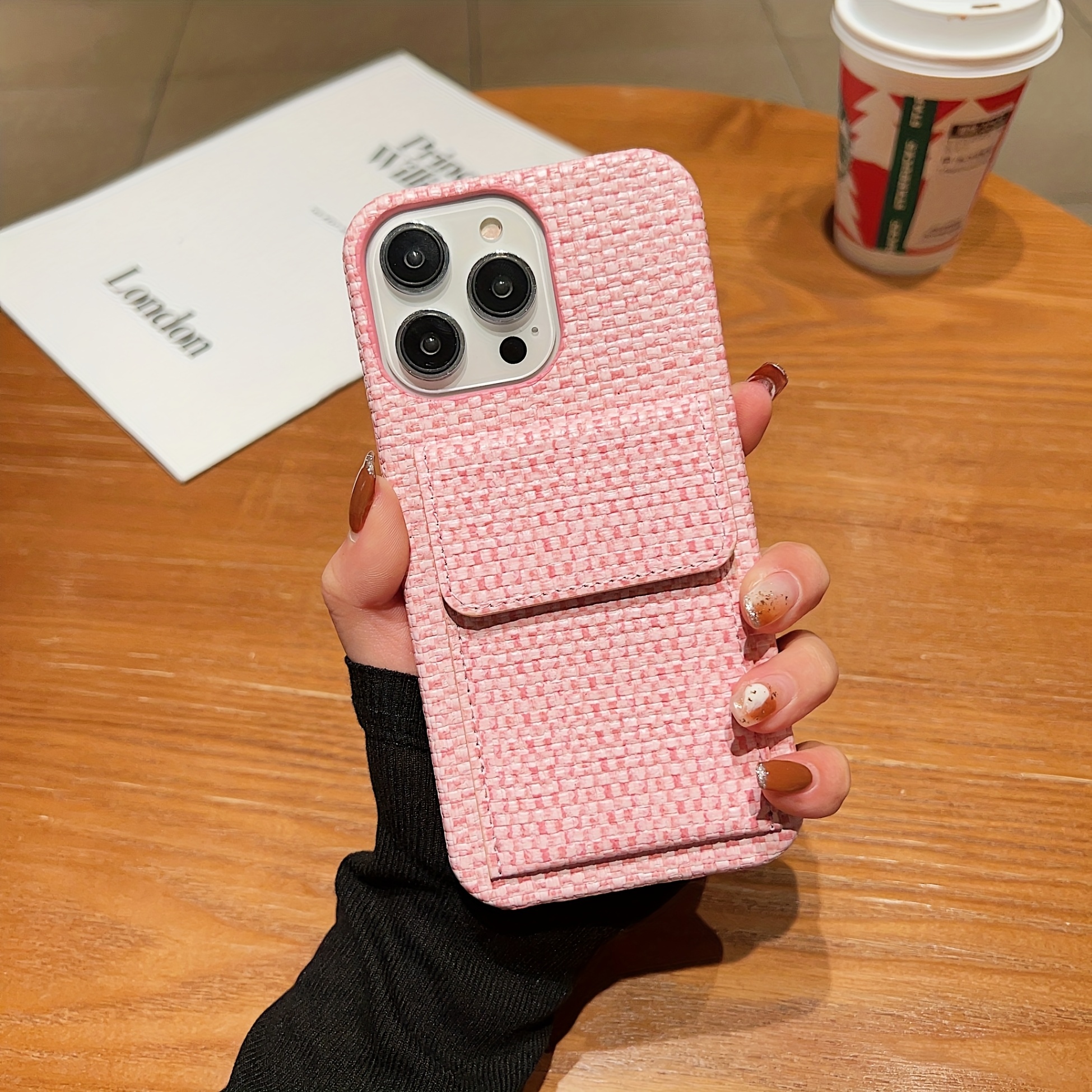 Premium Card Holders Woven Material New Bags Mobile Phone Cases Protective Cases Simple Series For IPhone 16/For IPhone 15Promax/for IPhone16/14 Plus/For IPhone13 Pro Max 12 11 XS, Fashion Style Card Holder Mobile Phone Case Woven Plaid Simple Pattern Anti-drop And Anti-scratch Full Body Protection Mobile Phone Case Suitable As A Holiday Gift For Family, Boyfriend, Girlfriend, Boys, Girls
